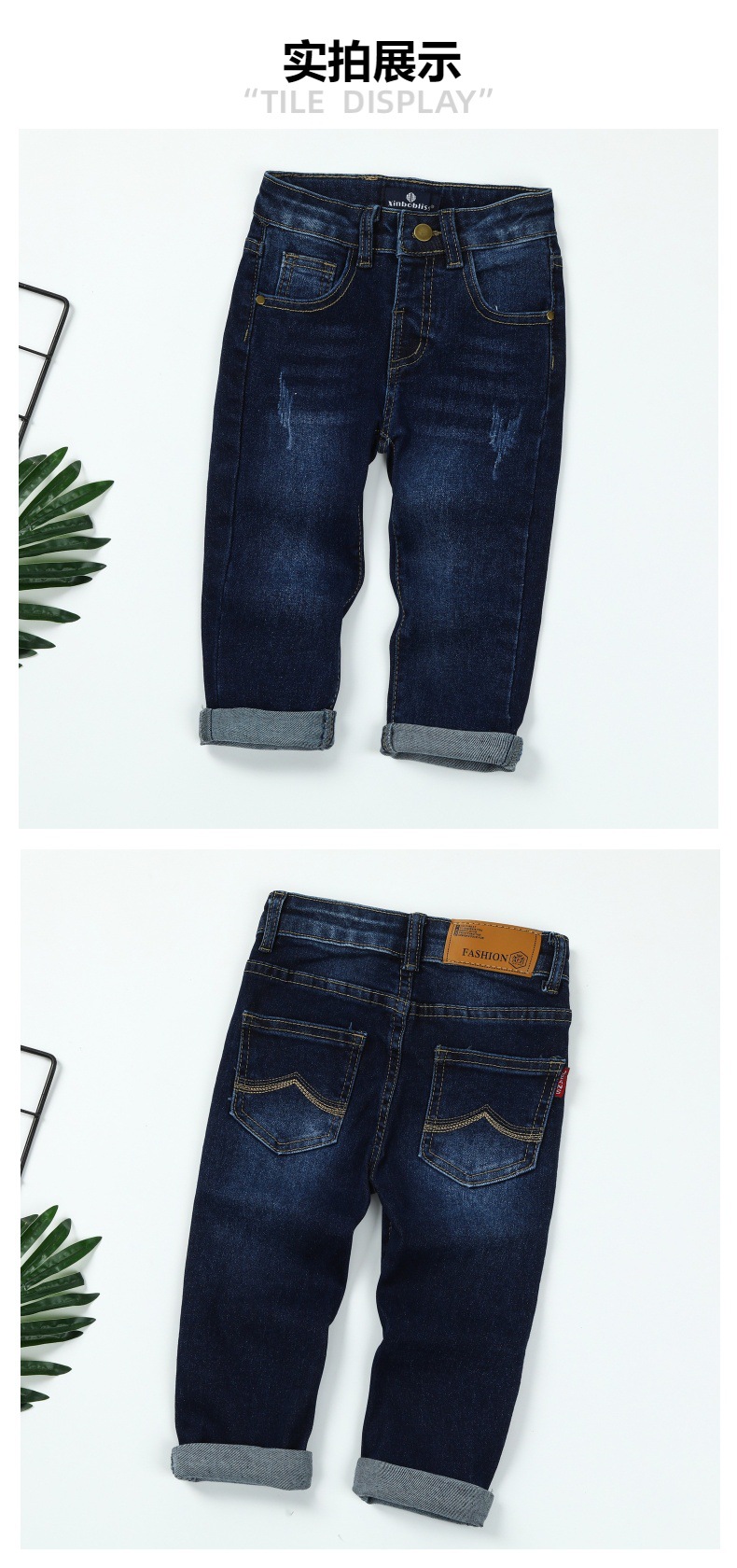대외 무역 새로운 아기 및 어린이 바지 어린이 봄과 가을 탄성 데님 바지 어린이 간단한 조커 바지
