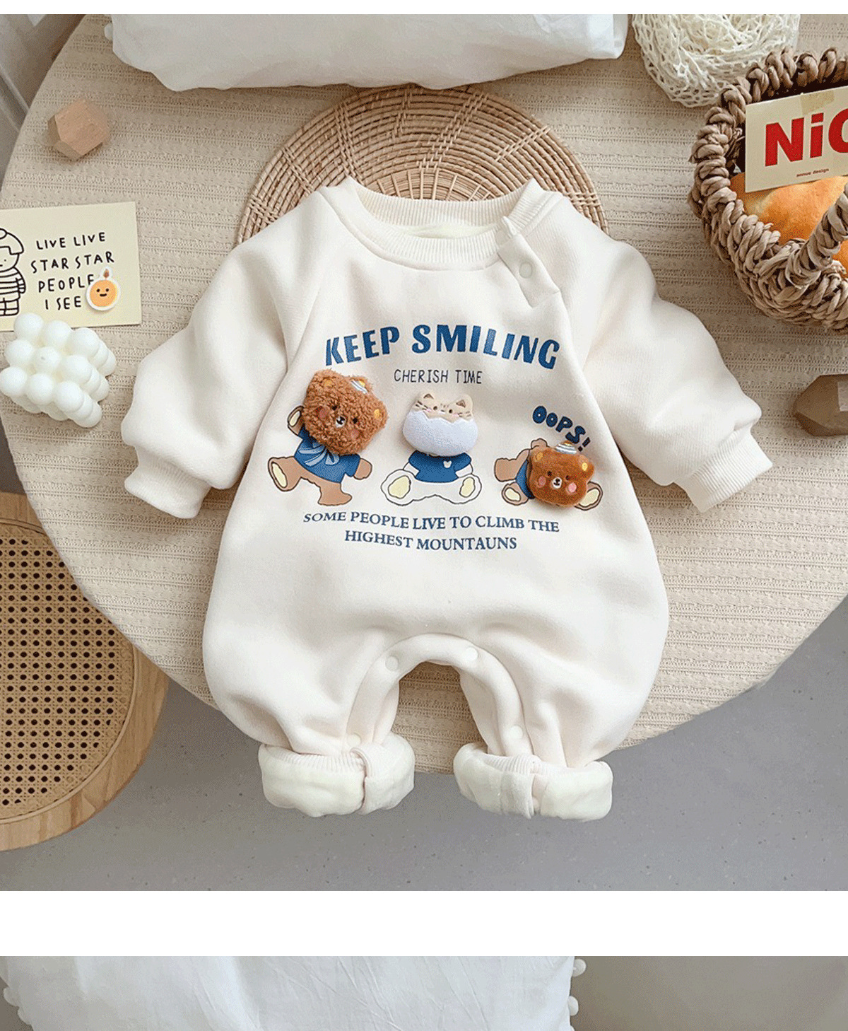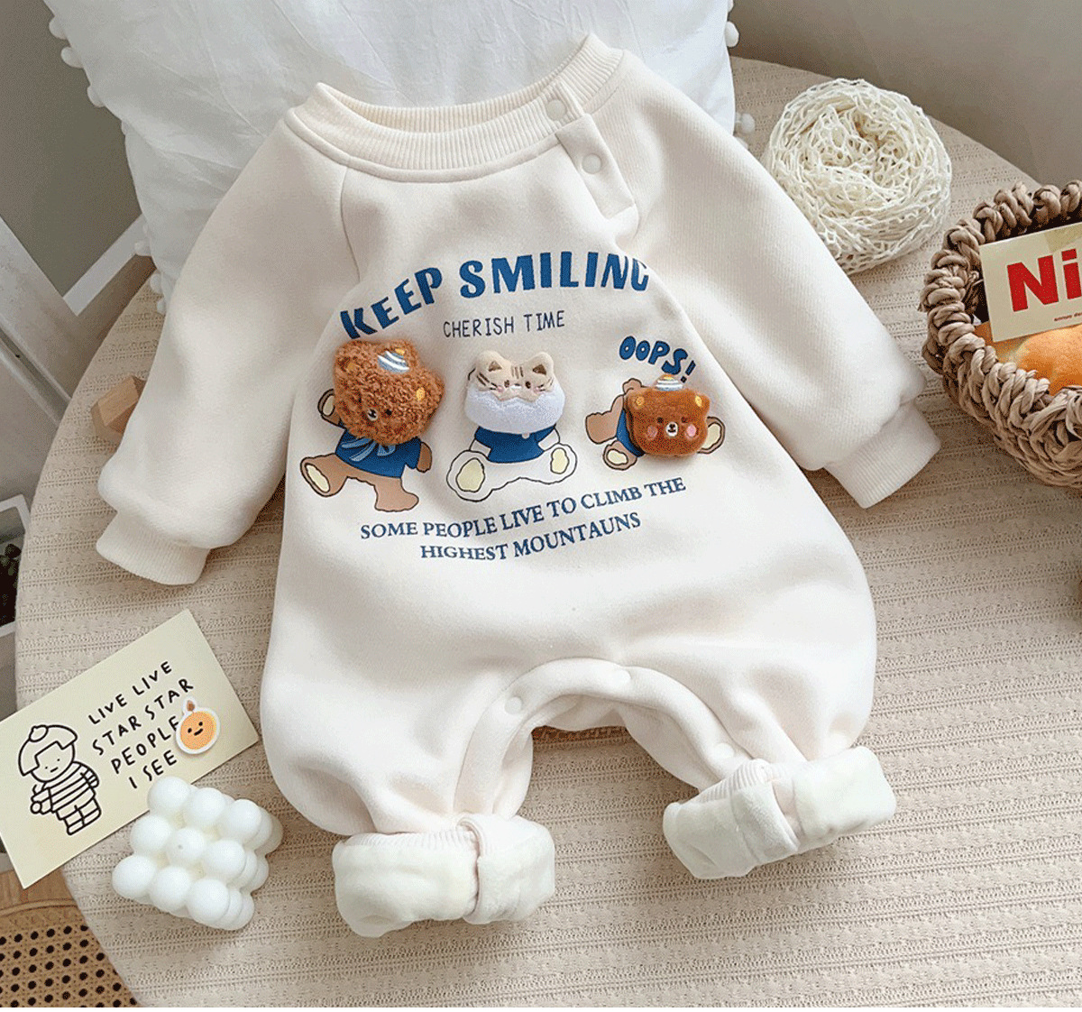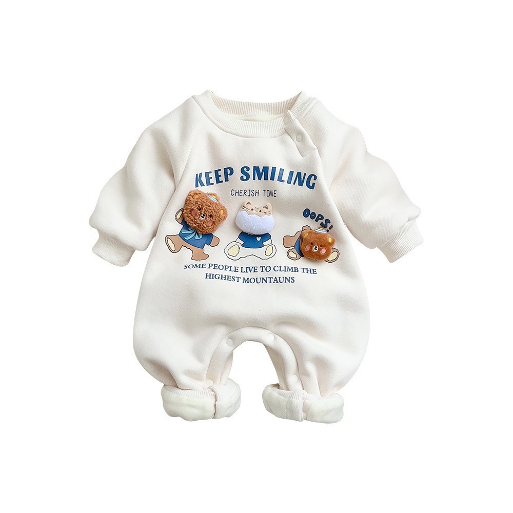 새로운 아기 옷 늦은 가을과 초겨울 등반 세트 만화 곰 기모 따뜻한 한 조각 옷 아기 두꺼운 하카 옷스토어 가기