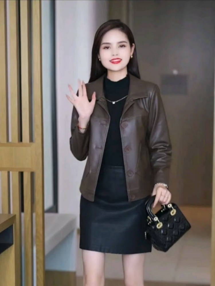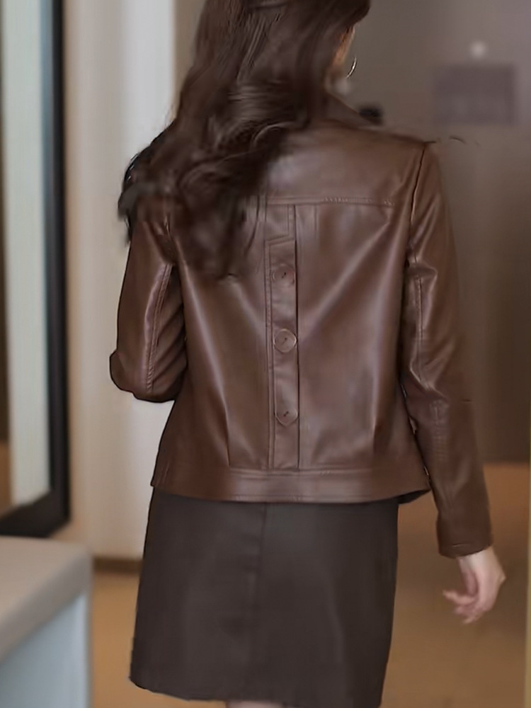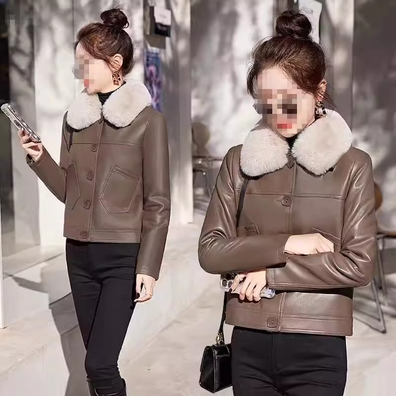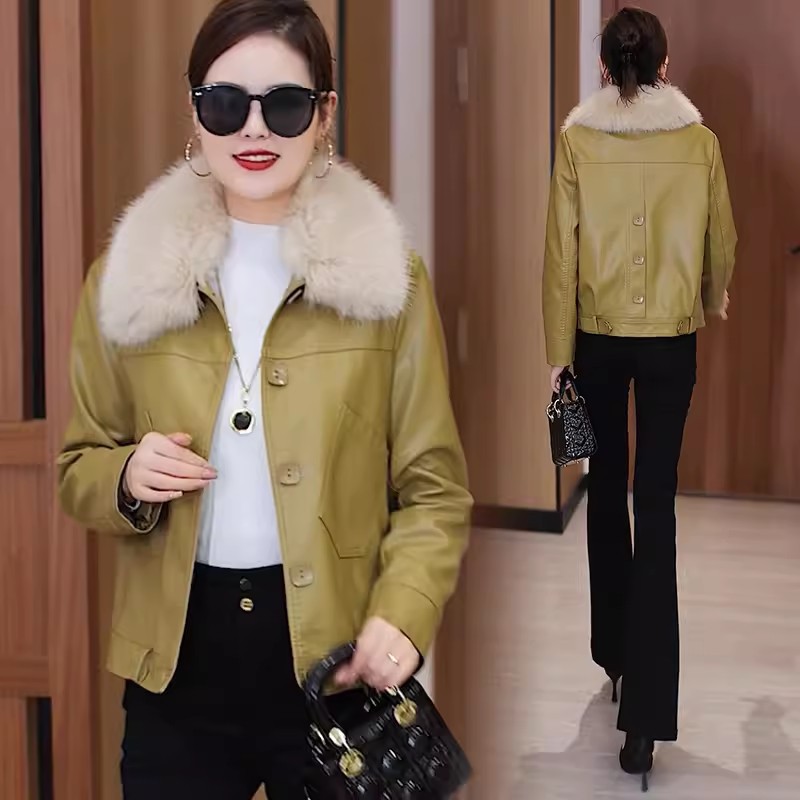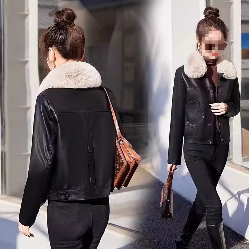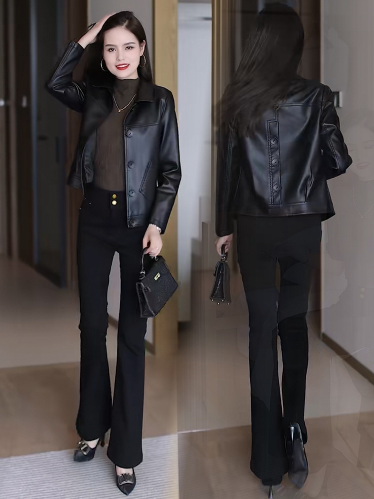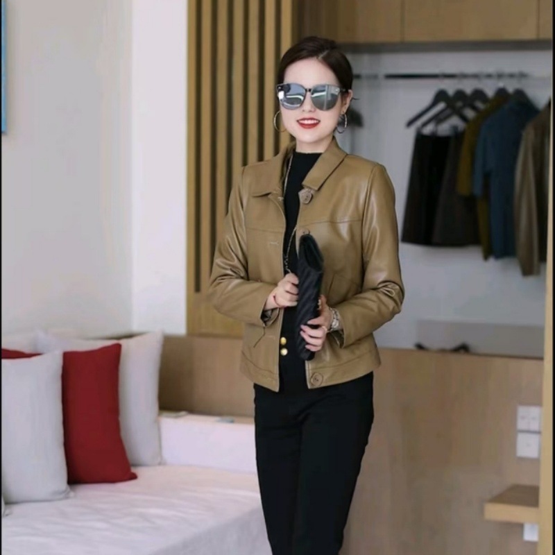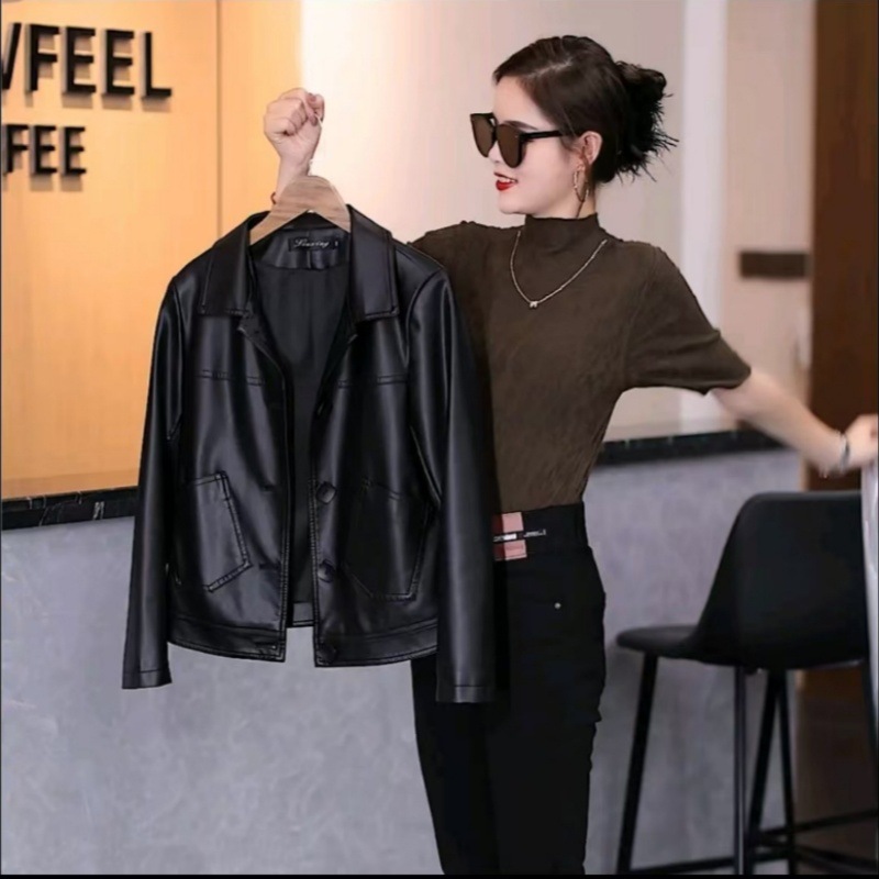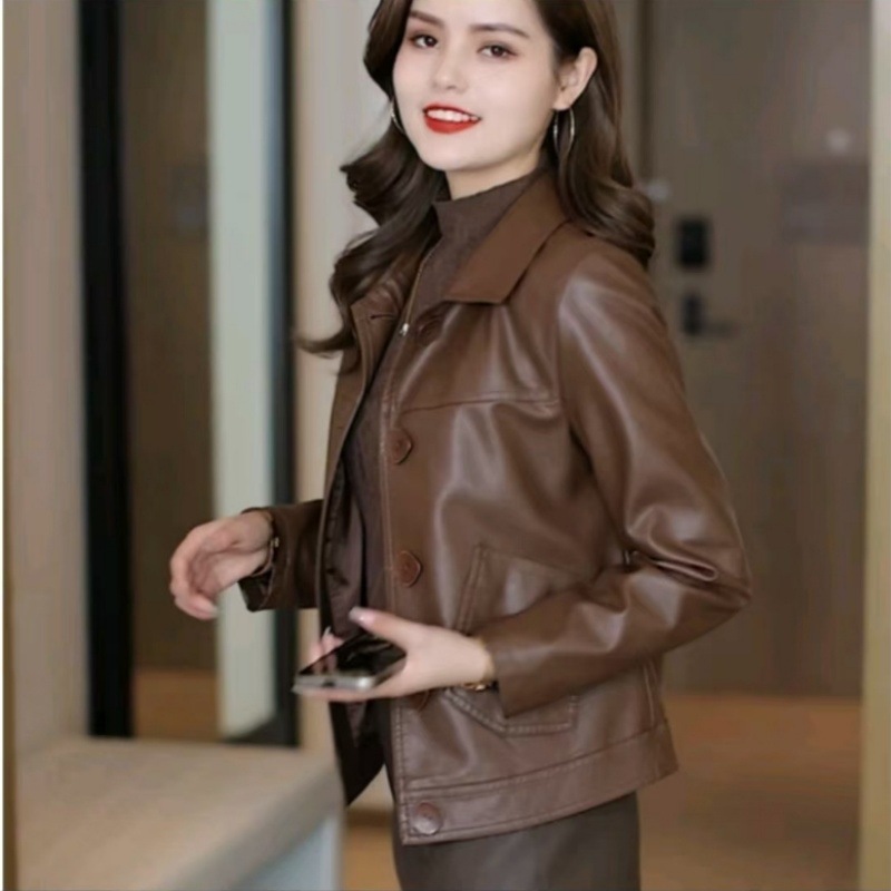 2025 가을 겨울 신상 벨벳 가죽 재킷 여성용 숏 코트 작은 키에도 잘 어울리는 다용도 스타일리시 가죽 재킷 상의