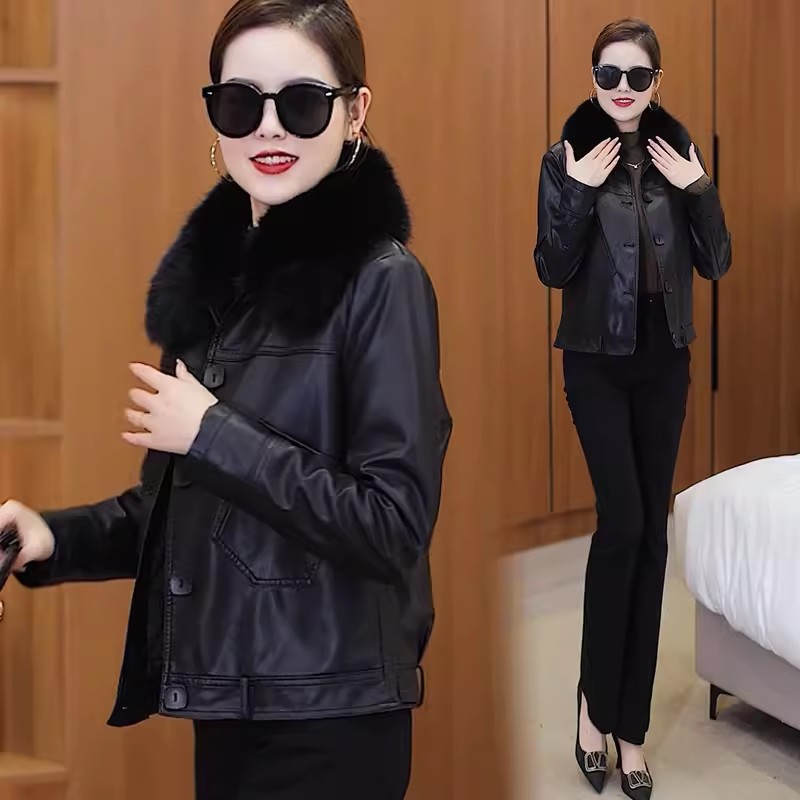 2025 가을 겨울 신상 벨벳 가죽 재킷 여성용 숏 코트 작은 키에도 잘 어울리는 다용도 스타일리시 가죽 재킷 상의스토어 가기
