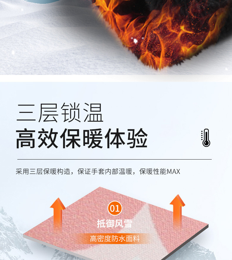 스키 장갑 여성용 겨울 사이클링 기모 두꺼운 방수 터치 스크린 냉간 사이클링 오토바이 남성용 전기 자동차 따뜻한 장갑