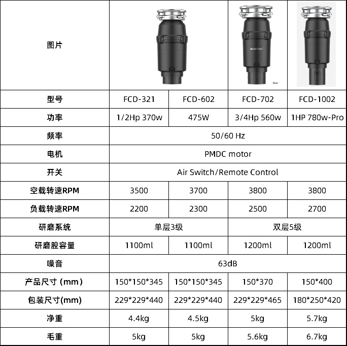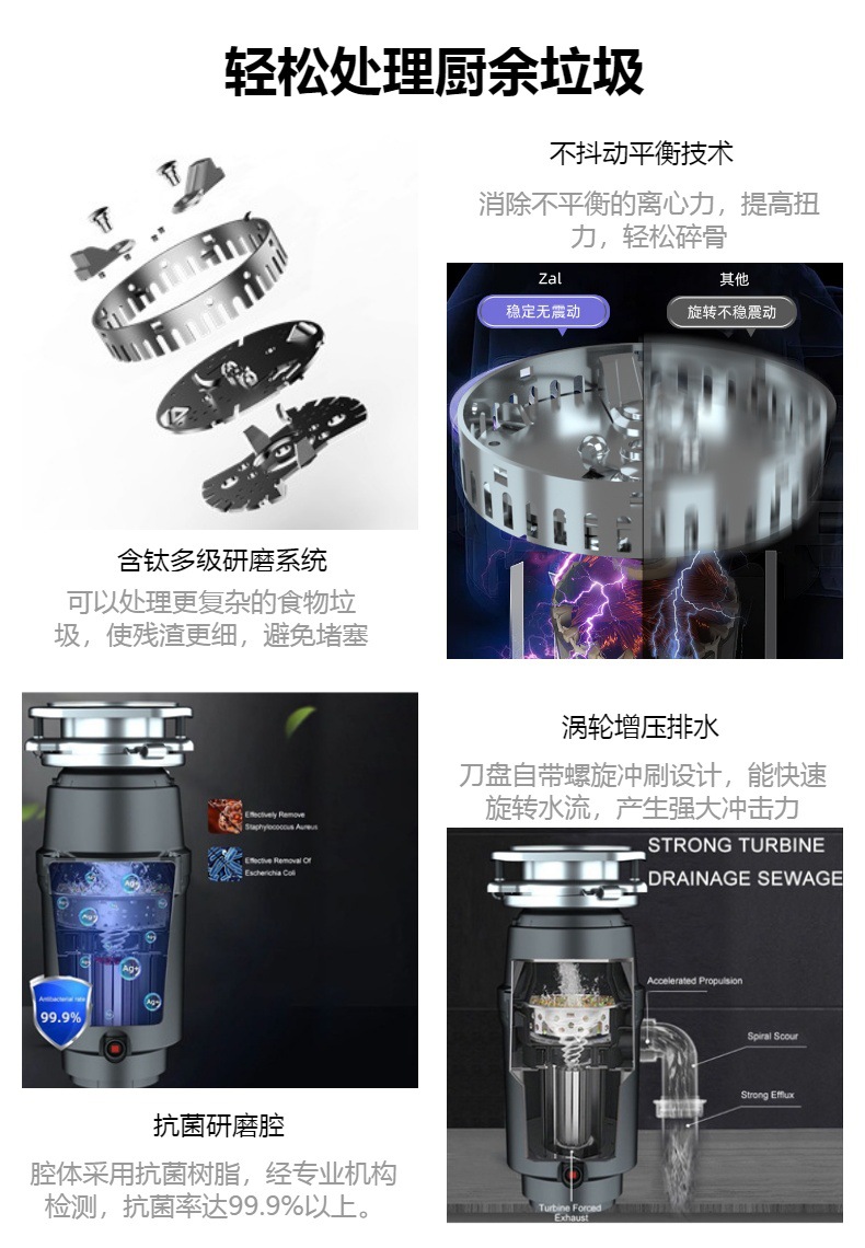 자체 특허 고출력 780W 주방 음식물 쓰레기 처리기 이중층 5단계 분쇄 주방 쓰레기 분쇄기