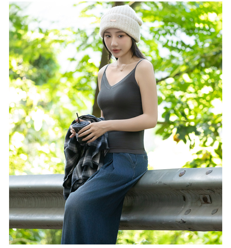 모달 캐시미어 알몸 암모니아 샌딩 멀 베리 실크 여성 열 조끼 속옷 아름다운 등 통합 컵 슬링스토어 가기