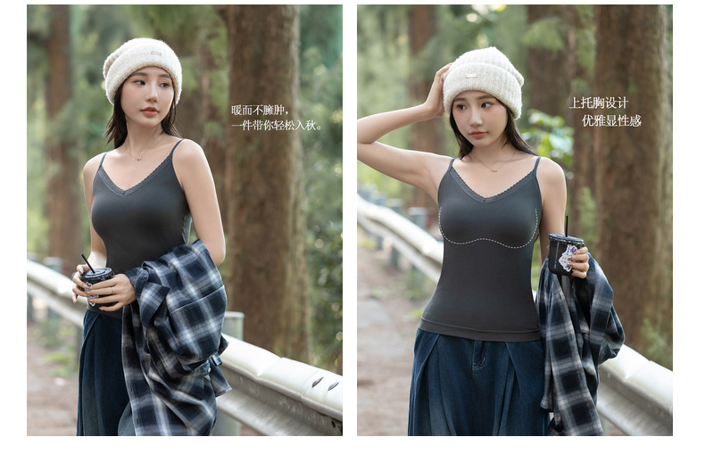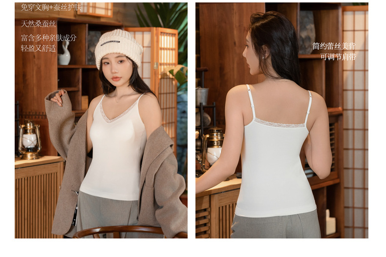 모달 캐시미어 알몸 암모니아 샌딩 멀 베리 실크 여성 열 조끼 속옷 아름다운 등 통합 컵 슬링