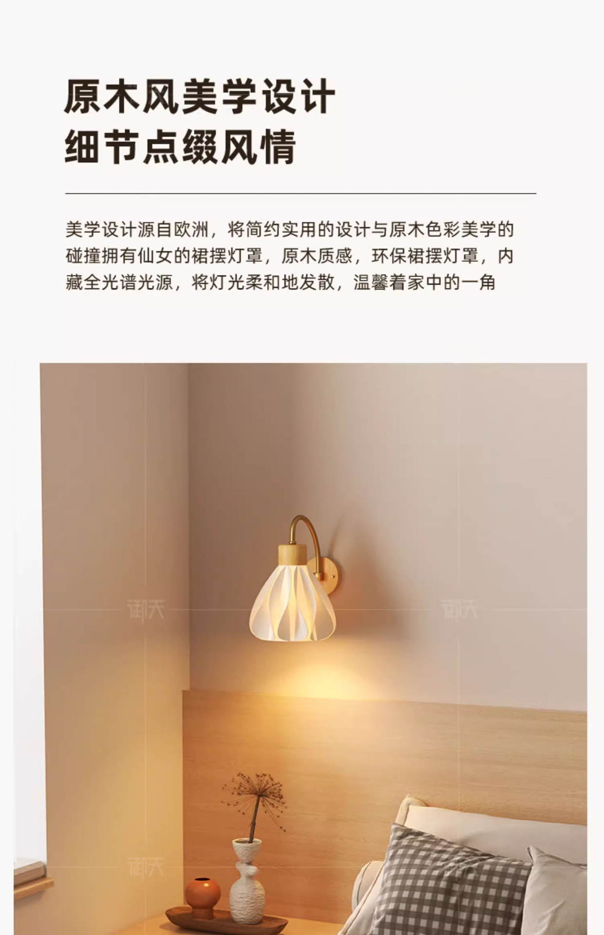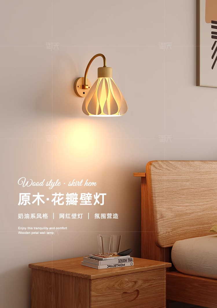 크림 로그 바람 치마 꽃잎 벽 램프 침실 침대 옆 램프 눈 보호 거실 배경 벽 예술 장식 분위기 램프