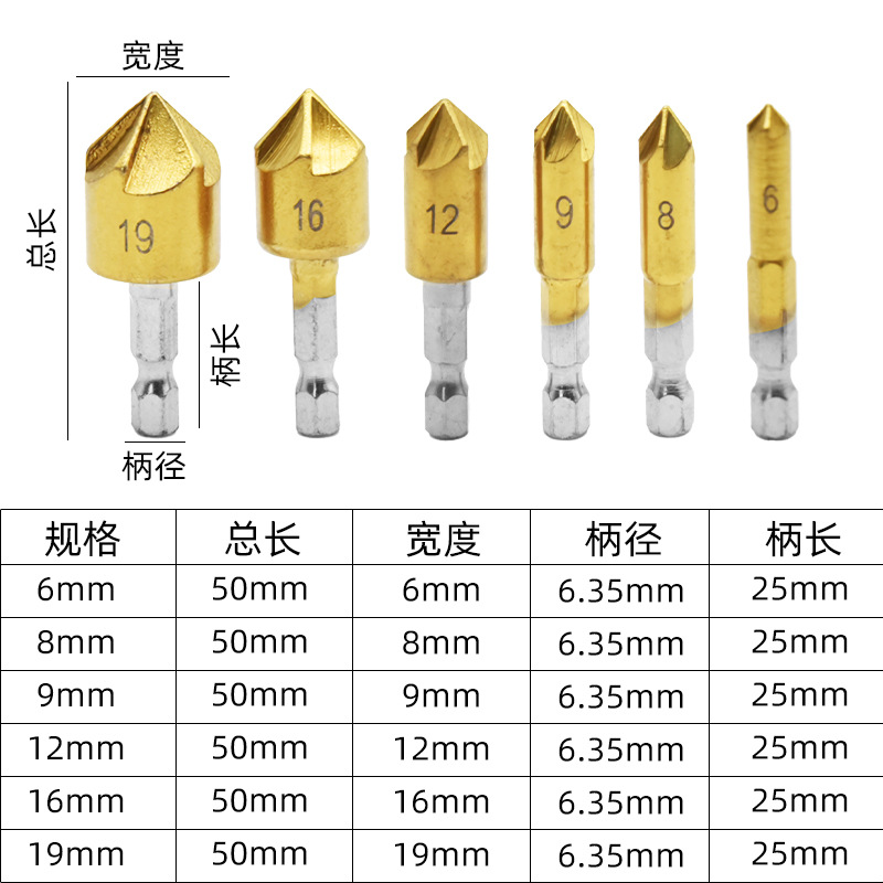 5 블레이드 모따기 나이프 모따기 장치 90 도 육각형 생크 리머 테이퍼 스크류 카운터 싱크 도구