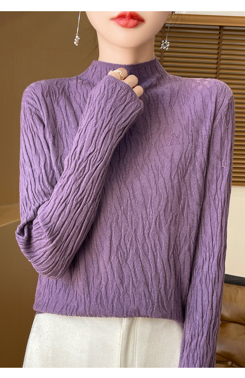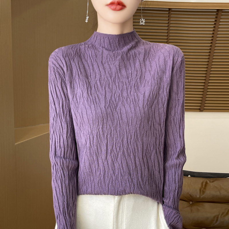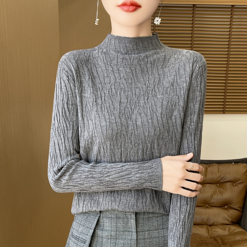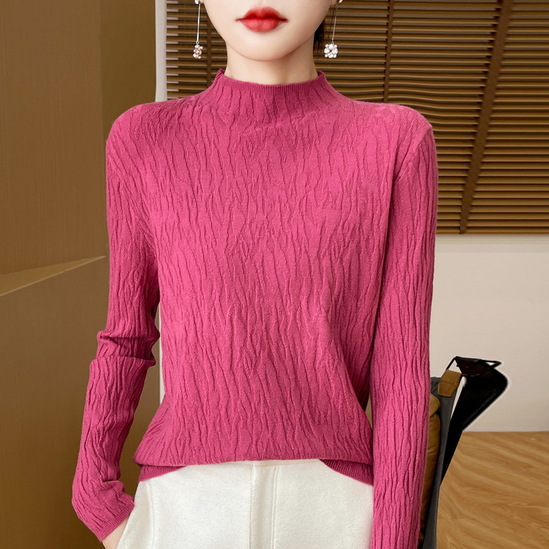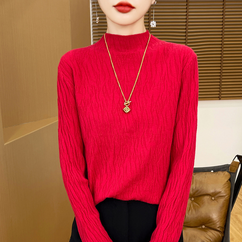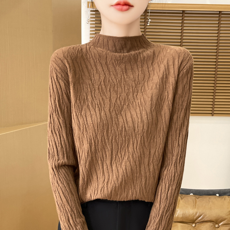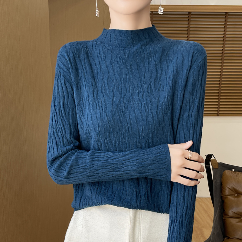 24 가을과 겨울 새로운 풀오버 스웨터 여성 앤디 벨벳 세미 하이 칼라 니트 베이스 셔츠 여성 슬림 한국 국경 공장 도매
