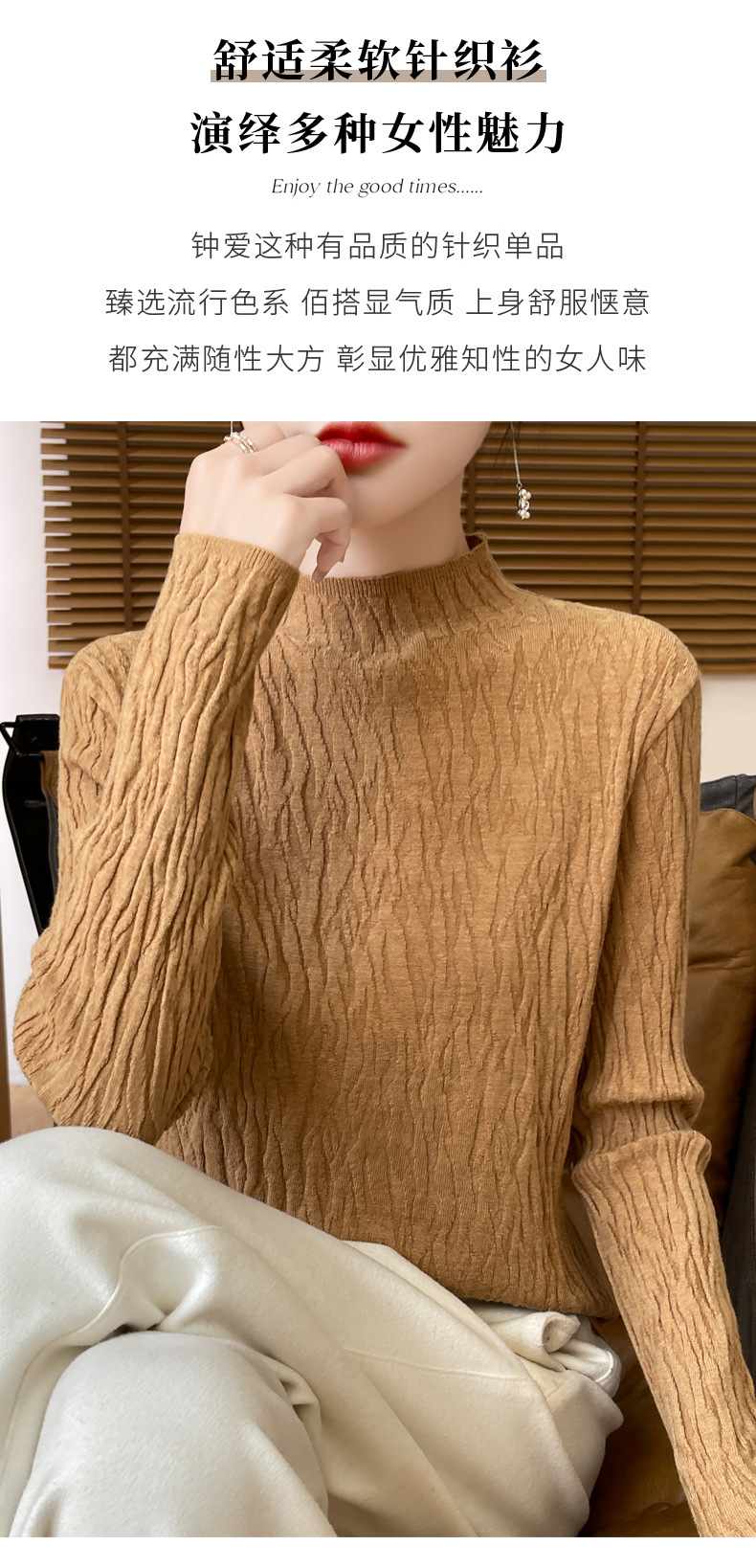 24 가을과 겨울 새로운 풀오버 스웨터 여성 앤디 벨벳 세미 하이 칼라 니트 베이스 셔츠 여성 슬림 한국 국경 공장 도매스토어 가기