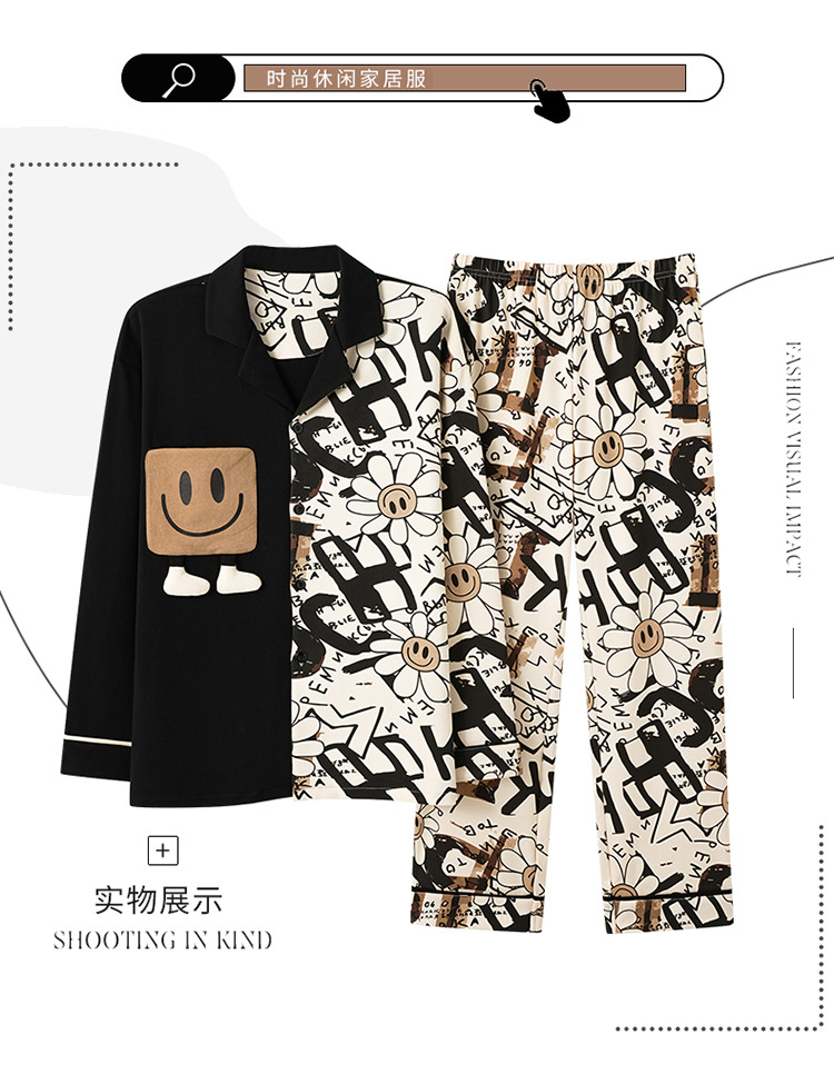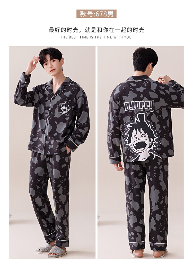 순면 잠옷 남자의 봄과 가을 2024 새로운 가을 긴 소매 바지 남자 플러스 사이즈 바깥 옷을 입고 세트스토어 가기
