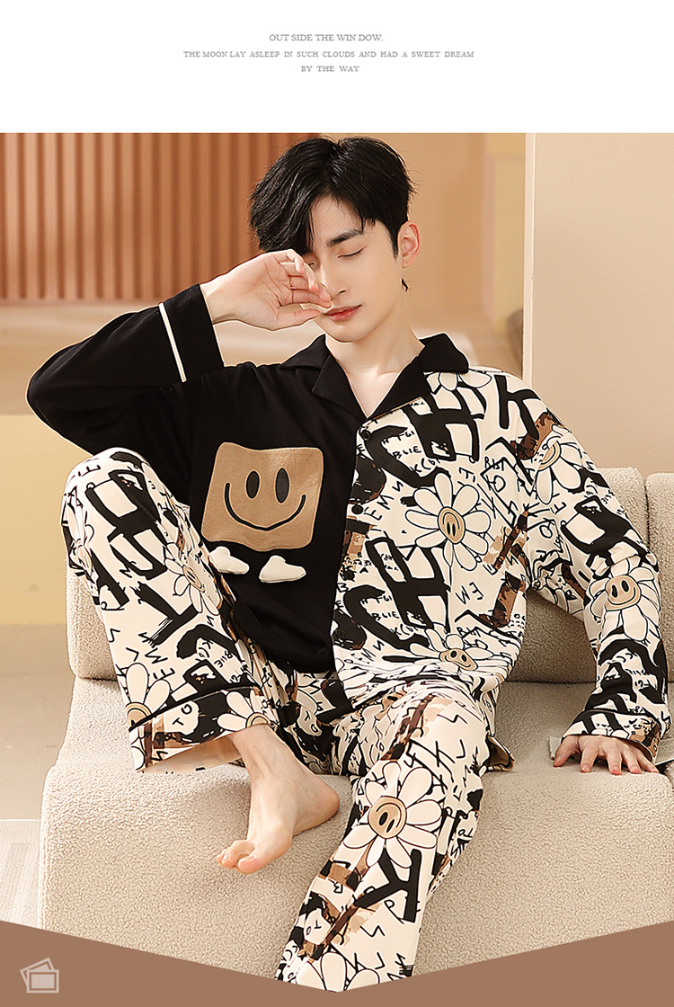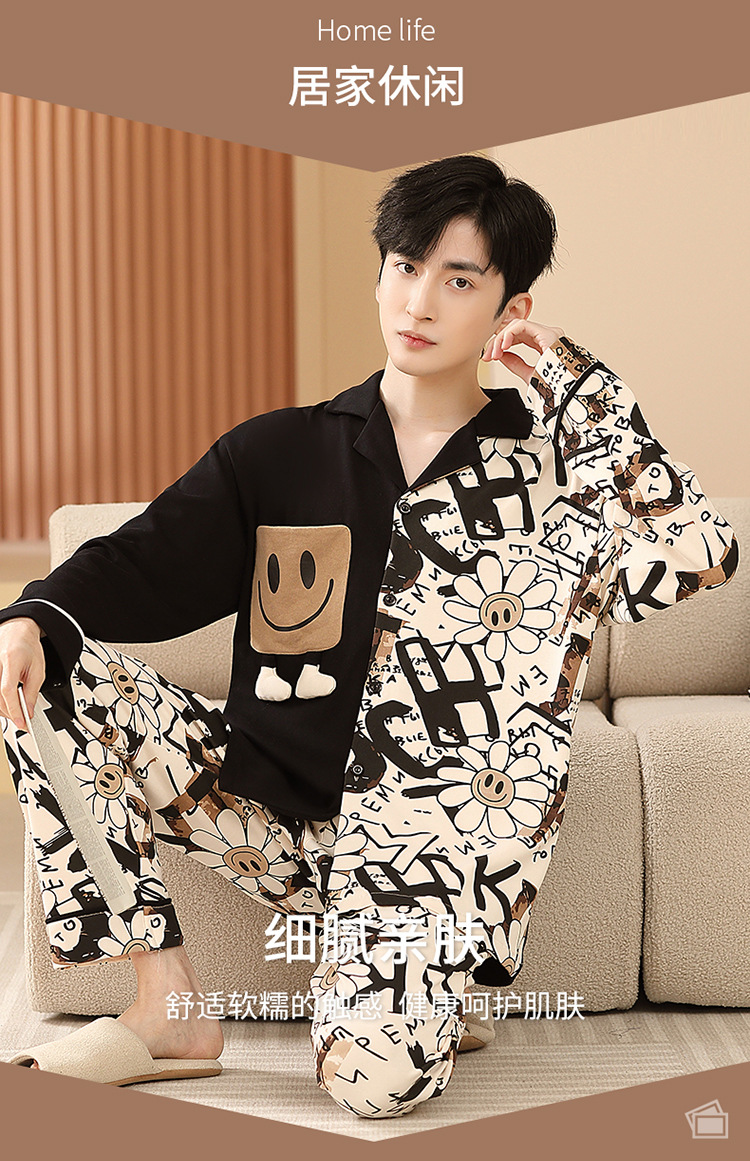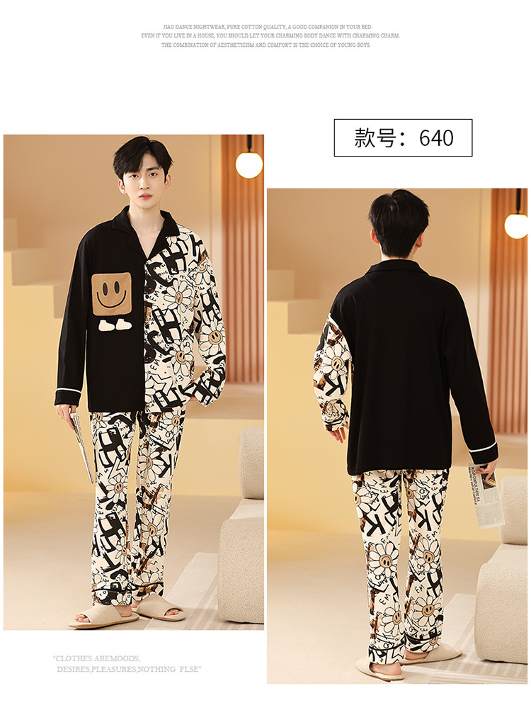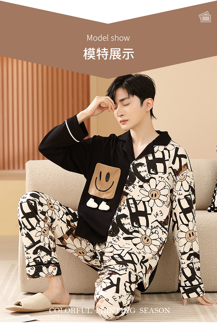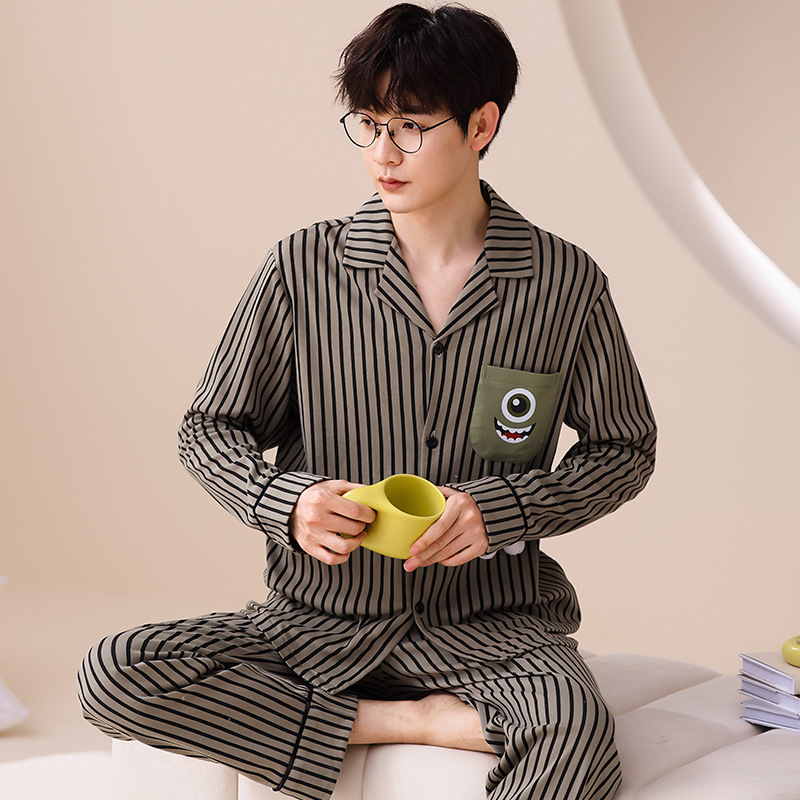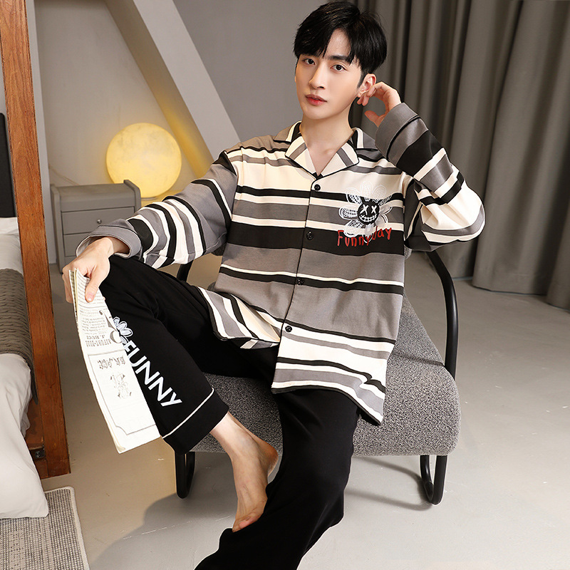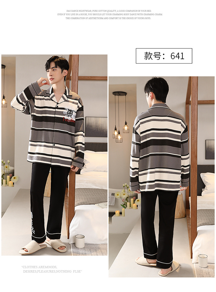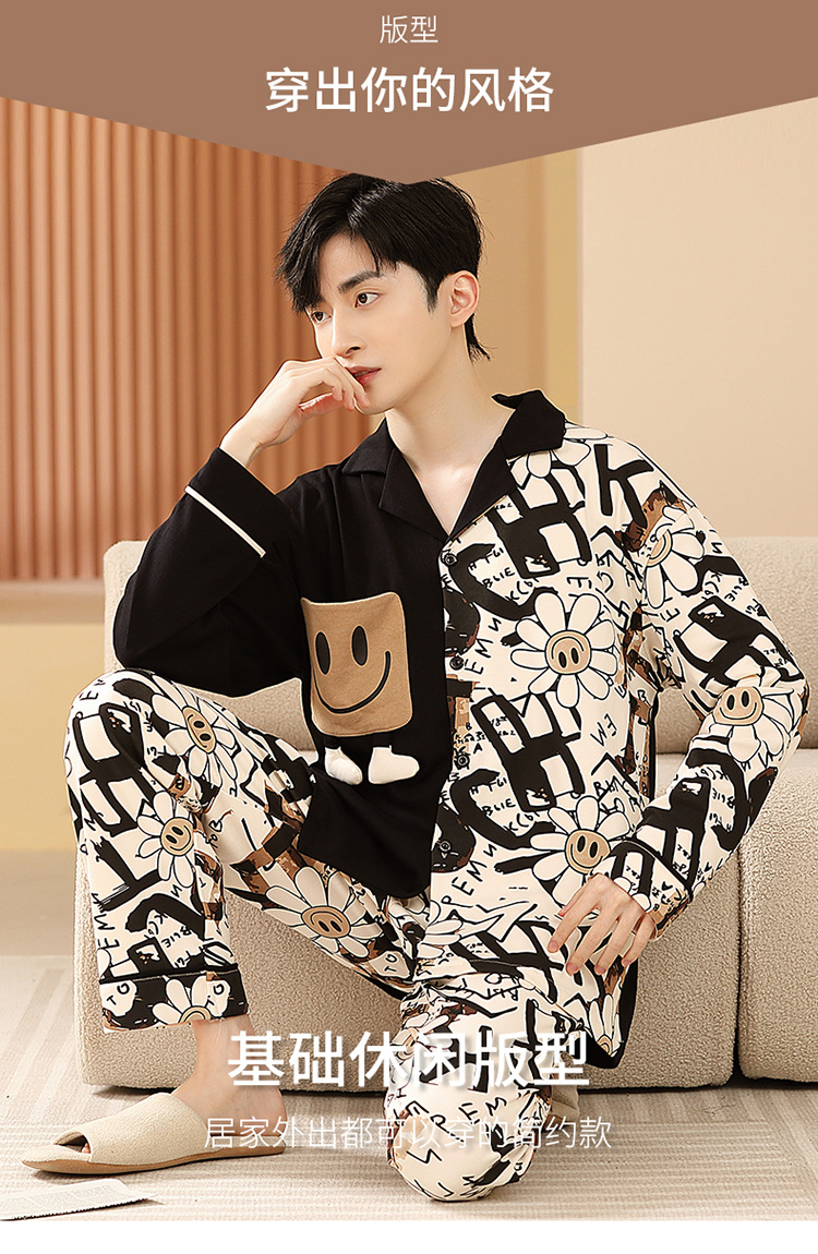 순면 잠옷 남자의 봄과 가을 2024 새로운 가을 긴 소매 바지 남자 플러스 사이즈 바깥 옷을 입고 세트