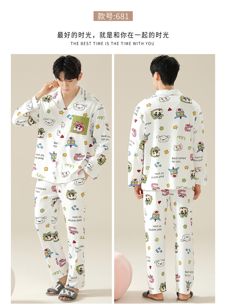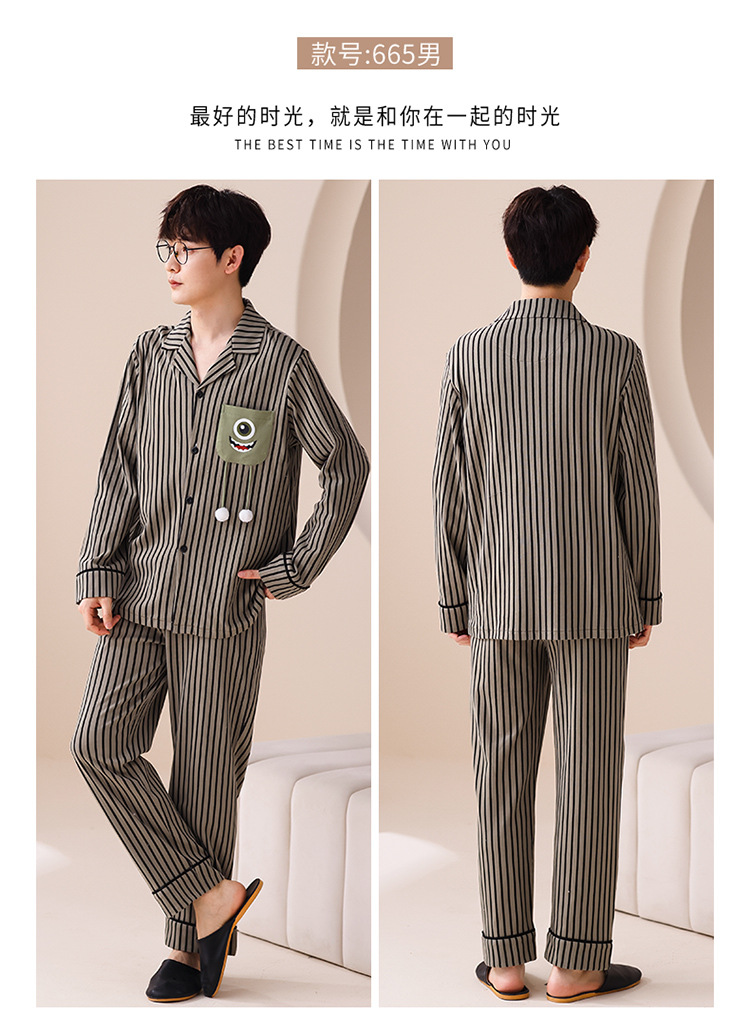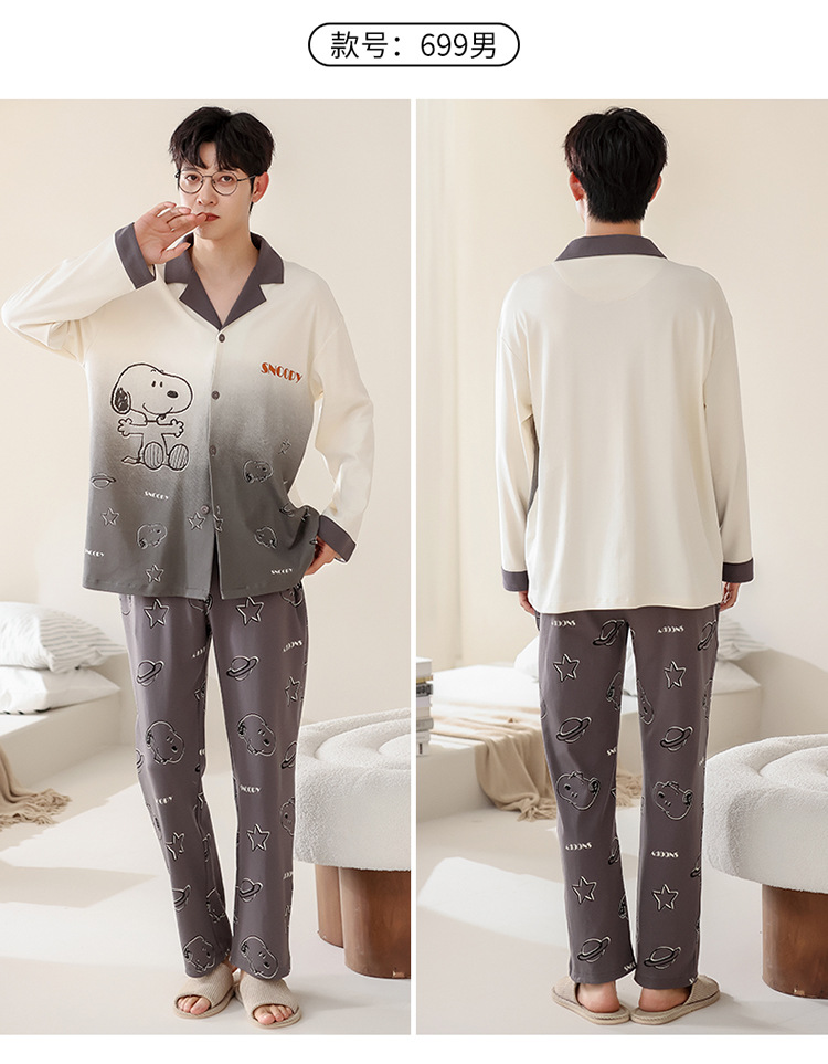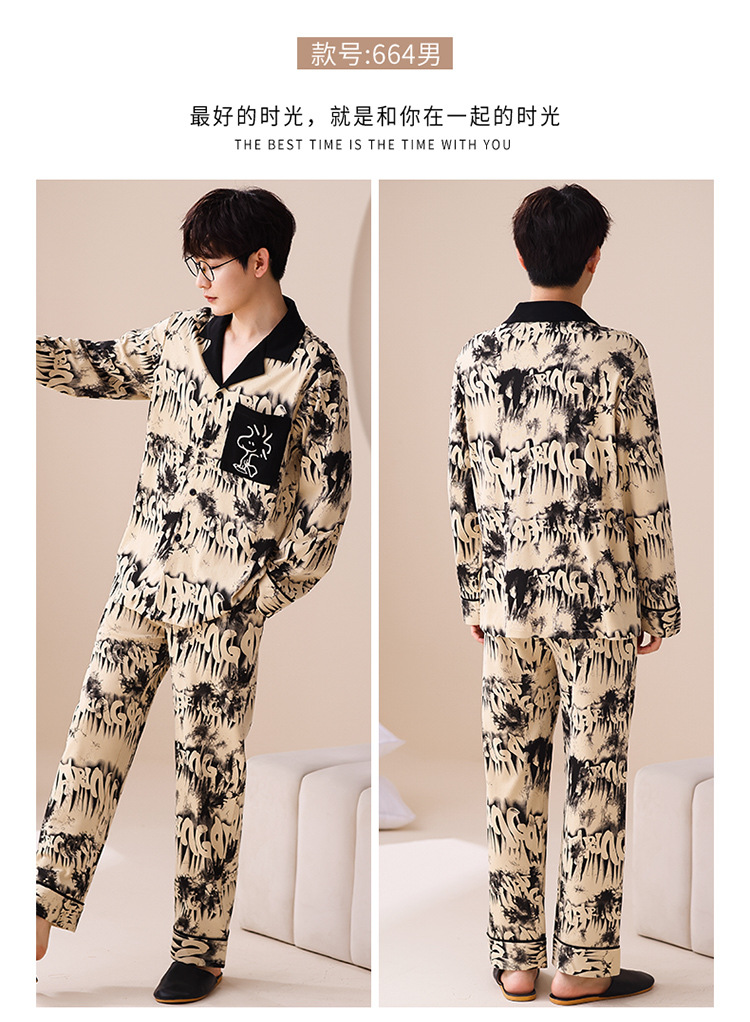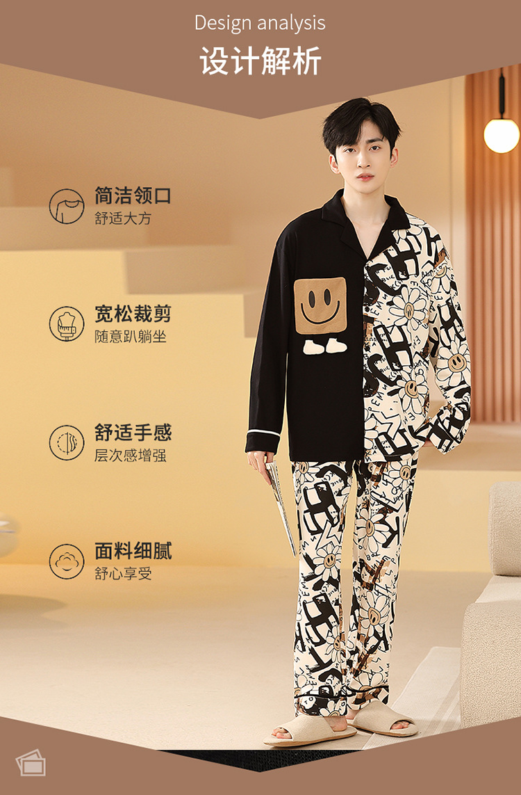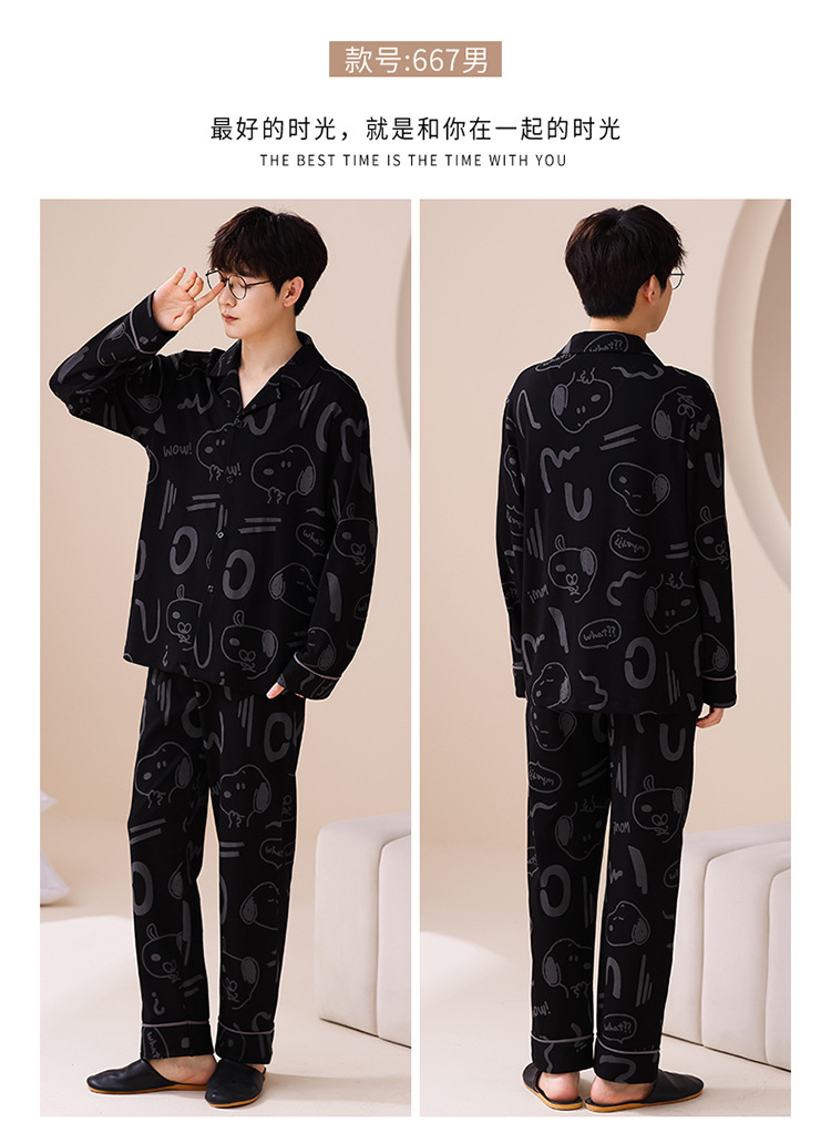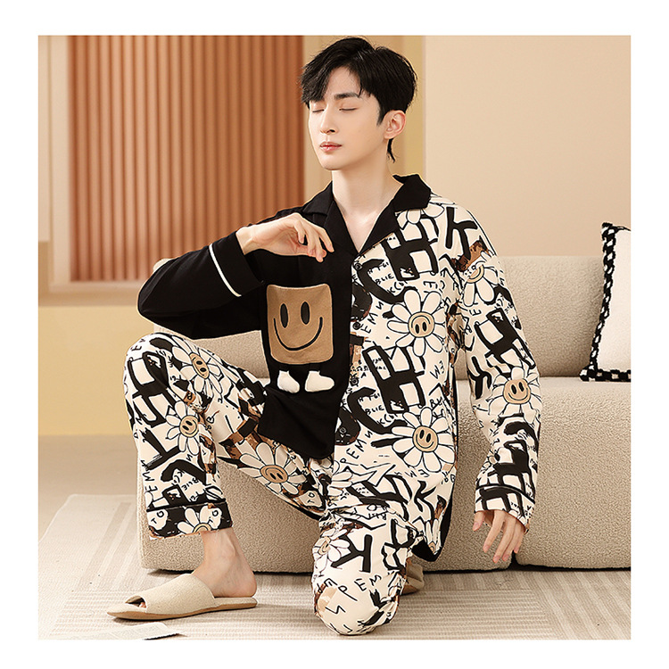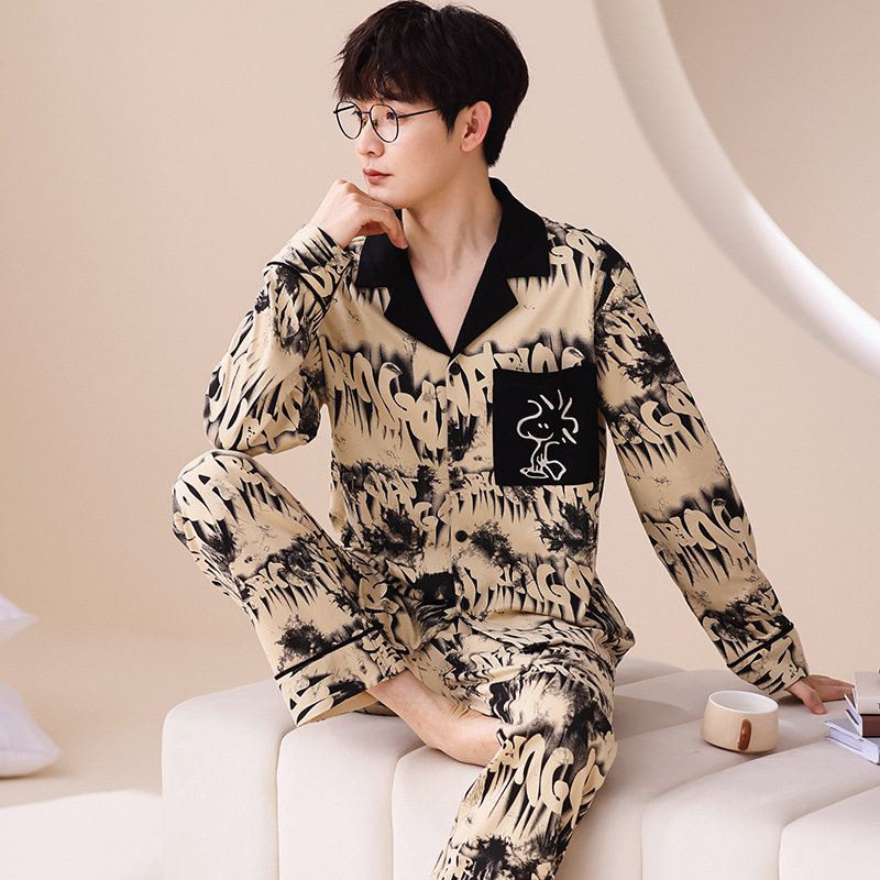 순면 잠옷 남자의 봄과 가을 2024 새로운 가을 긴 소매 바지 남자 플러스 사이즈 바깥 옷을 입고 세트