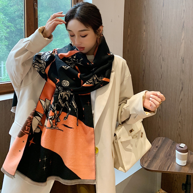 겨울 두꺼운 목도리 여성 다기능 사무실 낮잠 담요 캐시미어 자카드 술 따뜻한 스카프스토어 가기