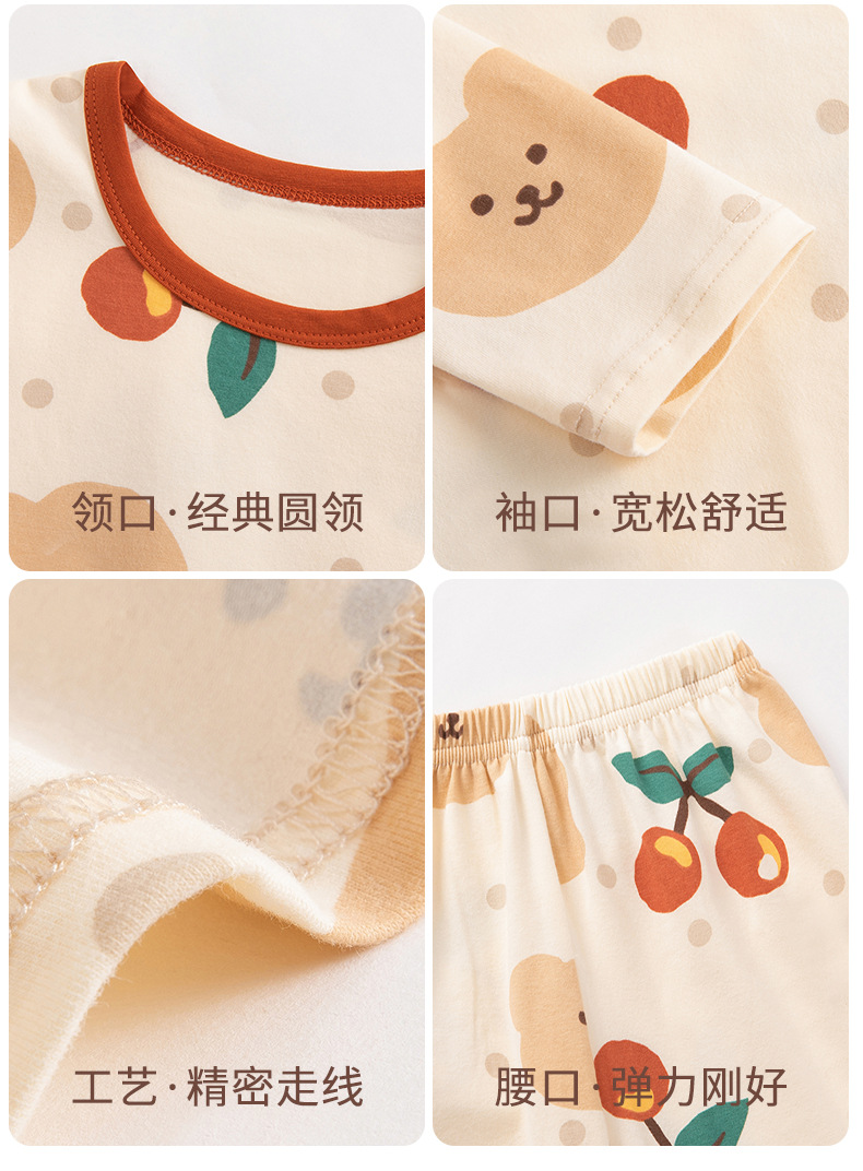 • 라운드넥 봄, 가을 스타일 - 살구 체리베어