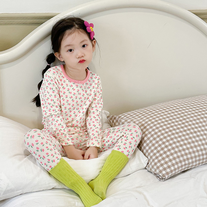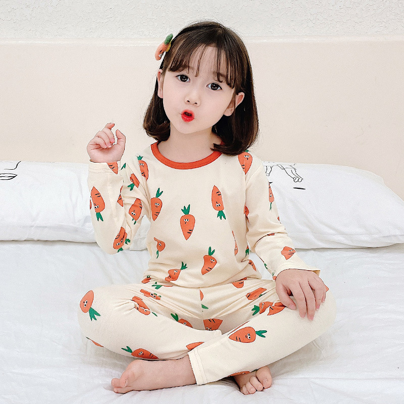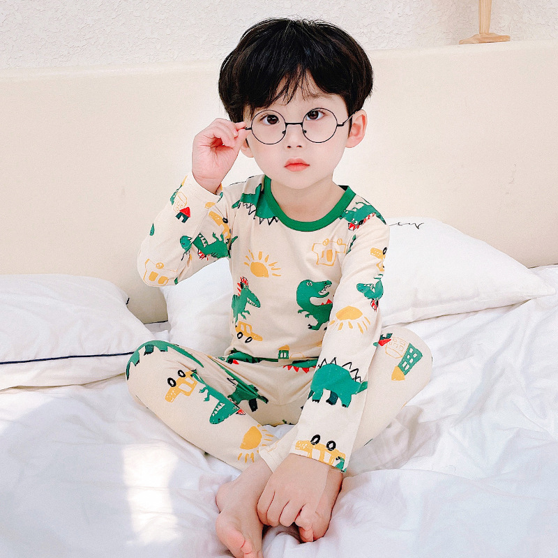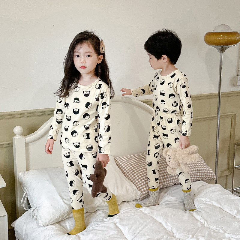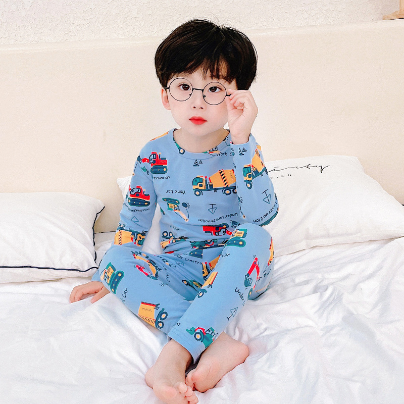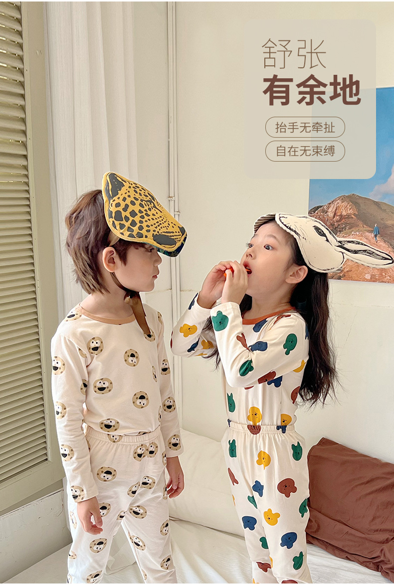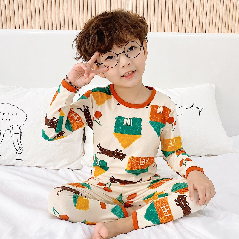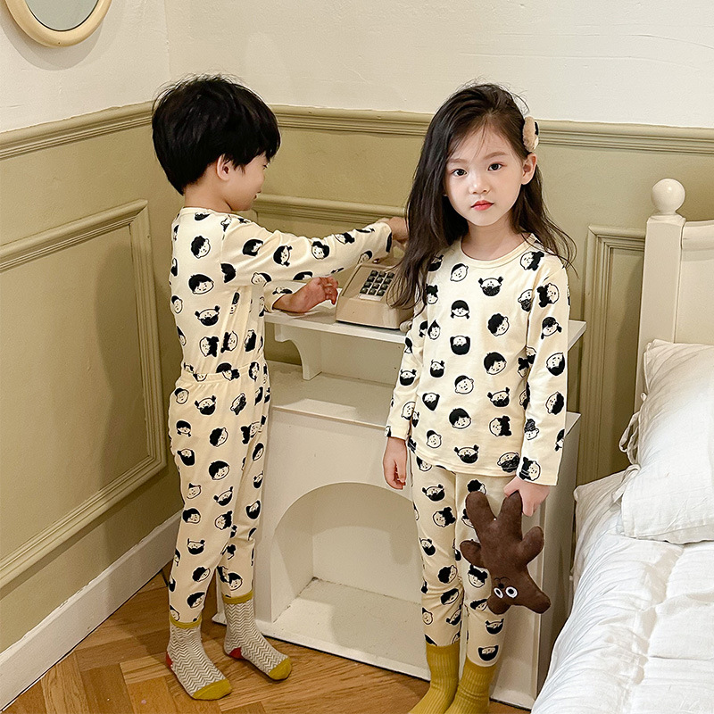 홈 의류 봄과 가을 어린이 라이크라 코튼 파자마 소년 및 소녀 에어컨 의류 세트 아기의 전체 꽃 만화 긴 소매