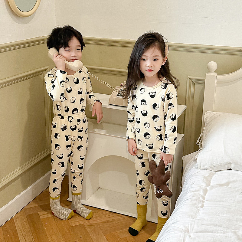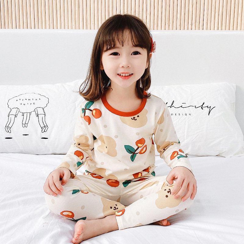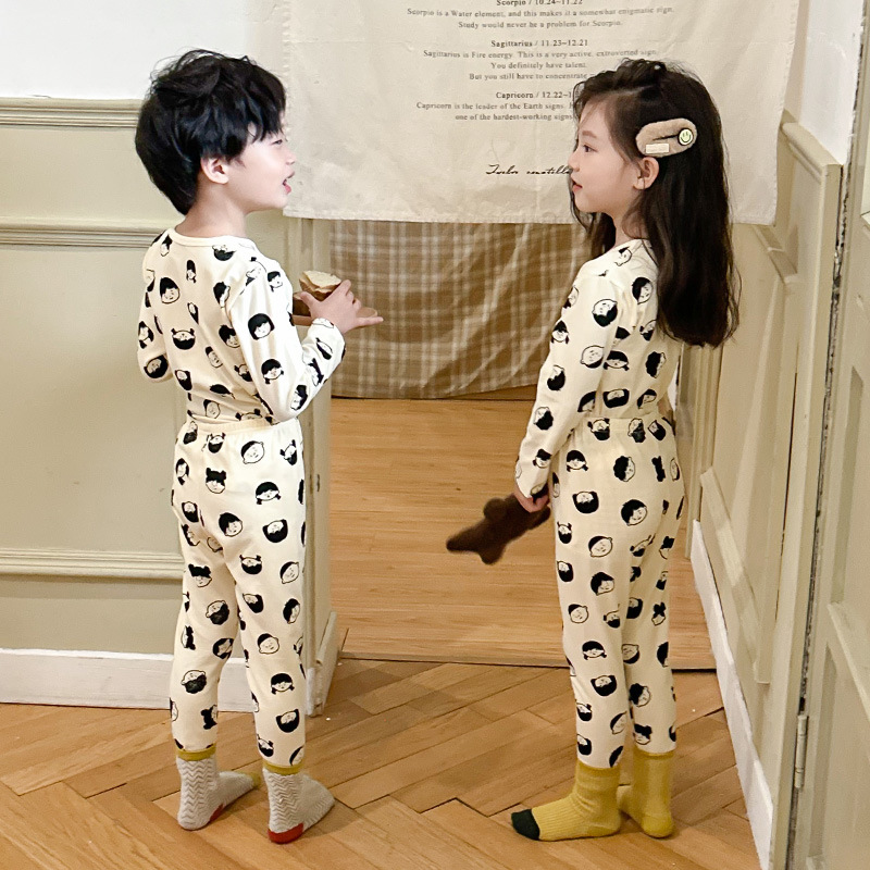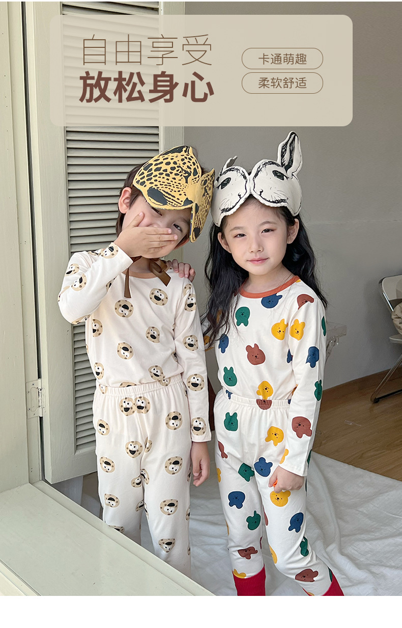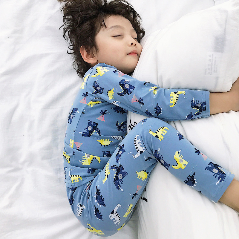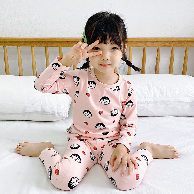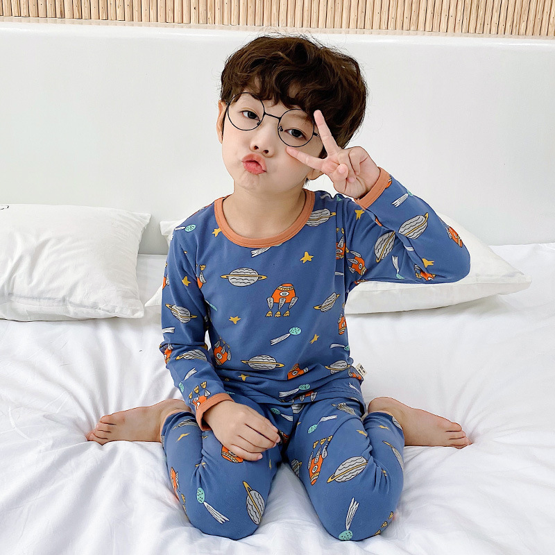 홈 의류 봄과 가을 어린이 라이크라 코튼 파자마 소년 및 소녀 에어컨 의류 세트 아기의 전체 꽃 만화 긴 소매