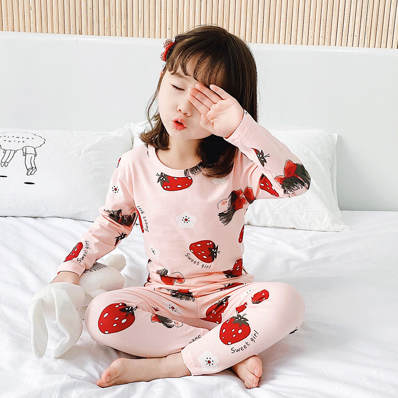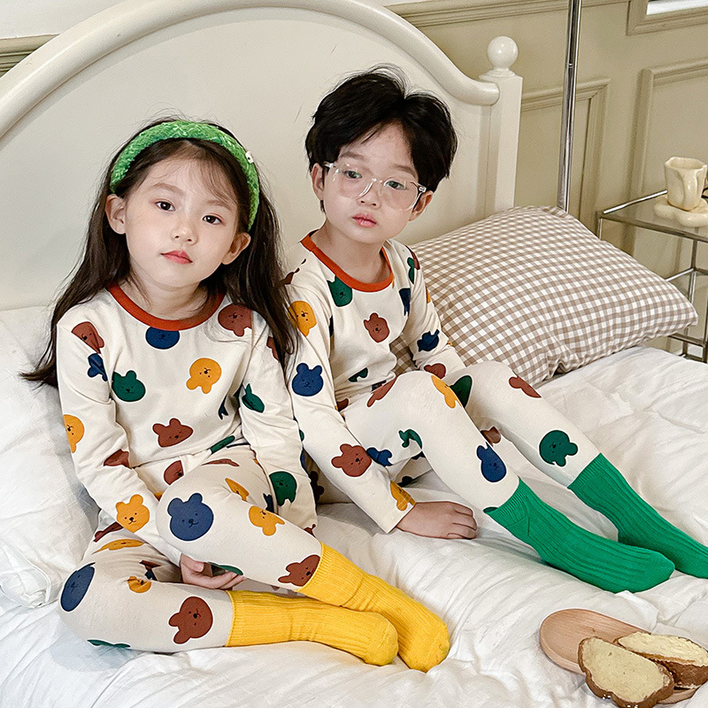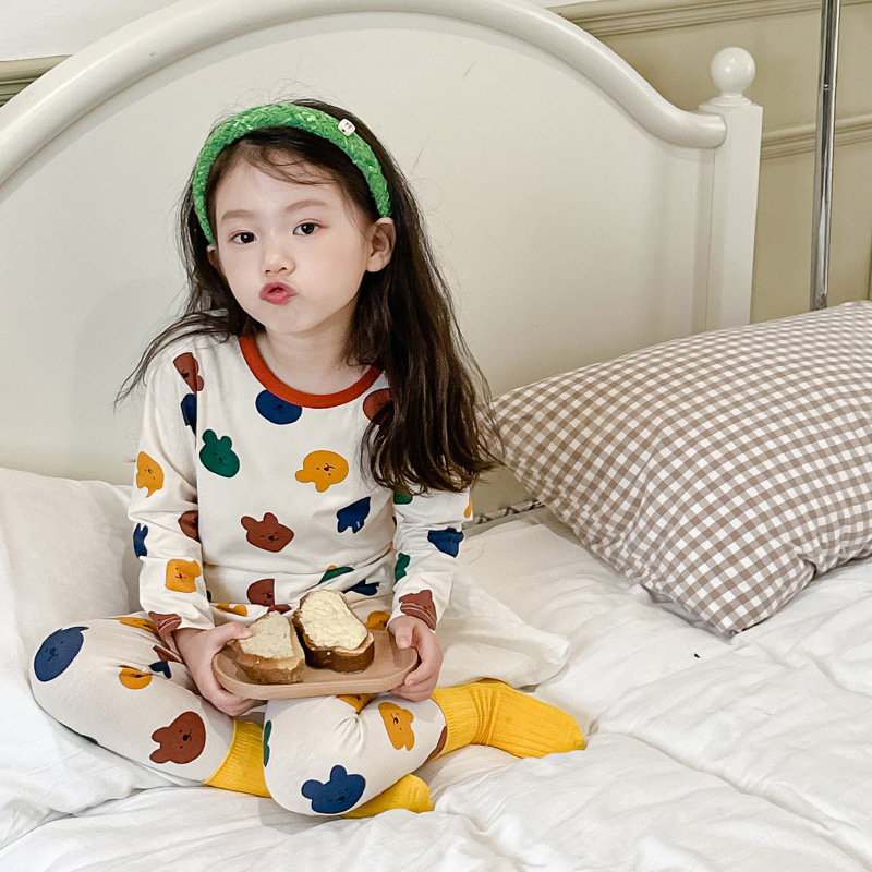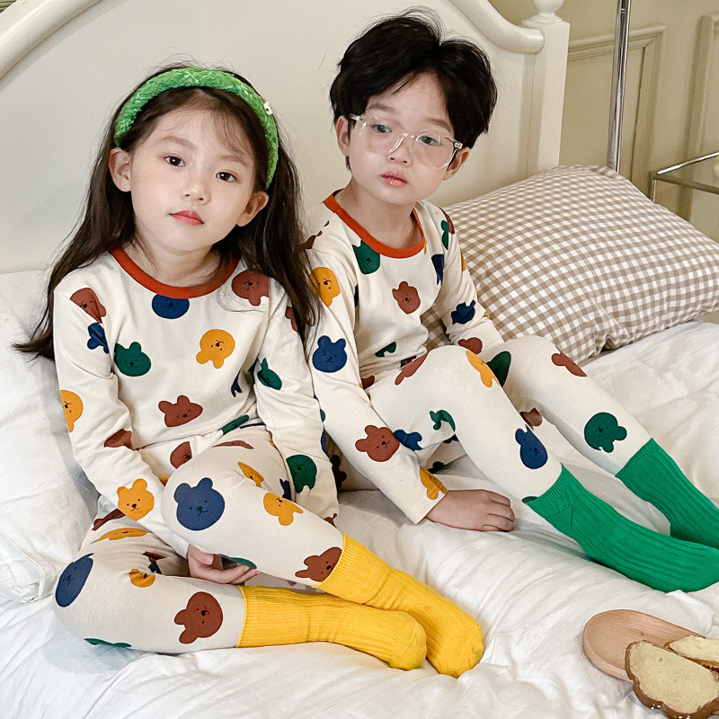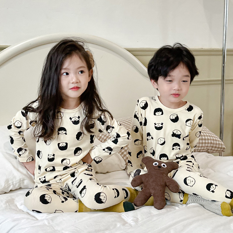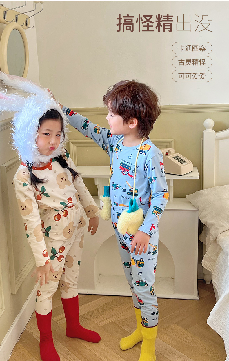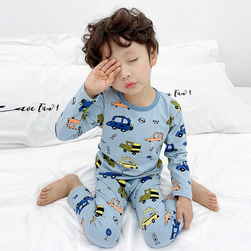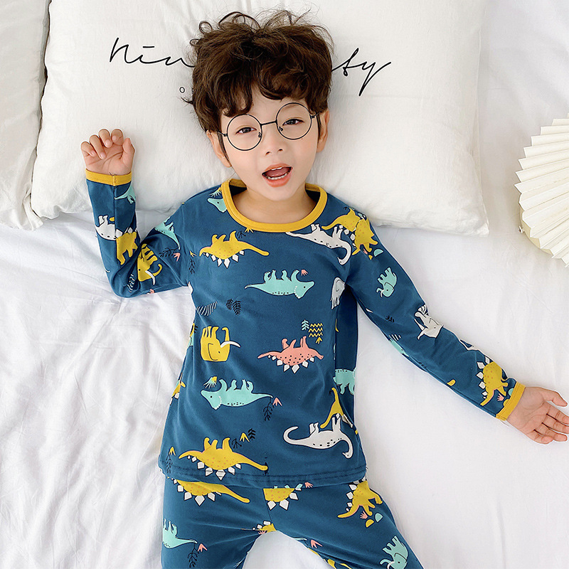 홈 의류 봄과 가을 어린이 라이크라 코튼 파자마 소년 및 소녀 에어컨 의류 세트 아기의 전체 꽃 만화 긴 소매