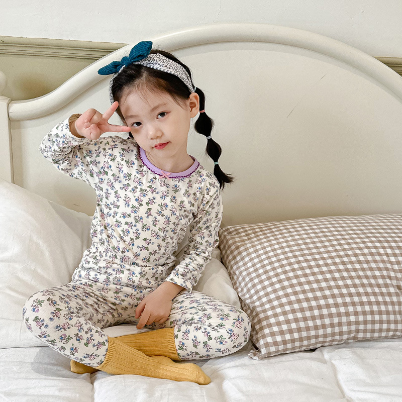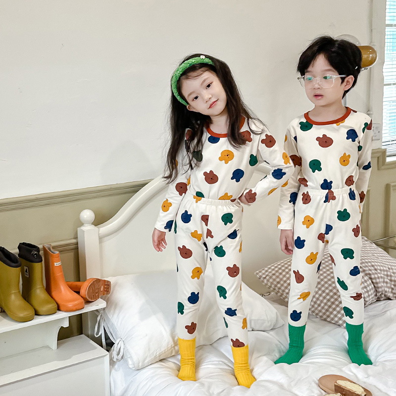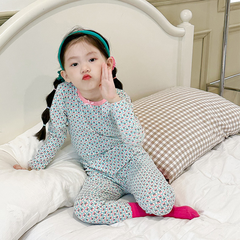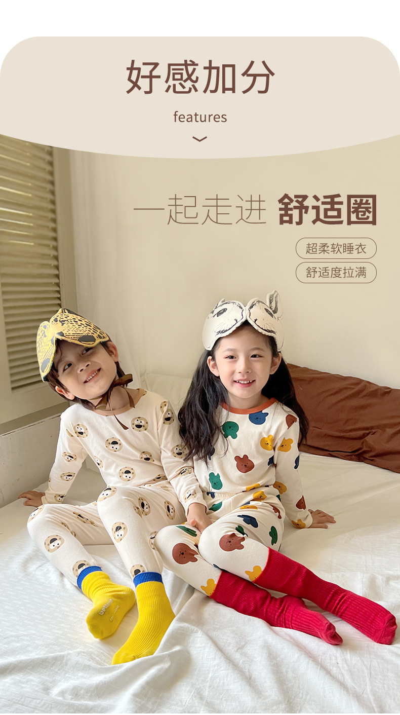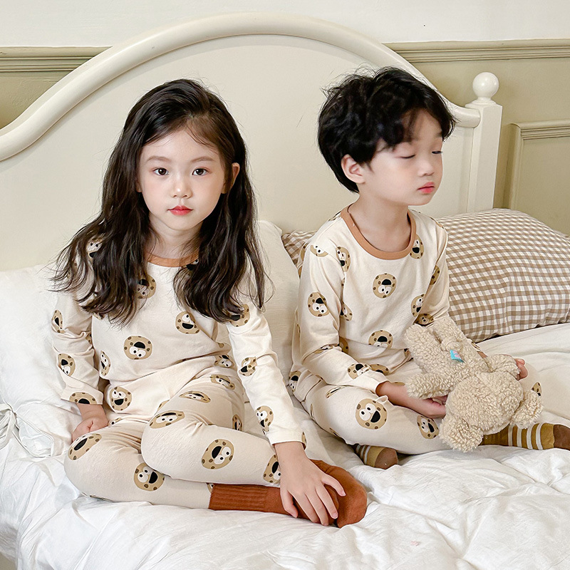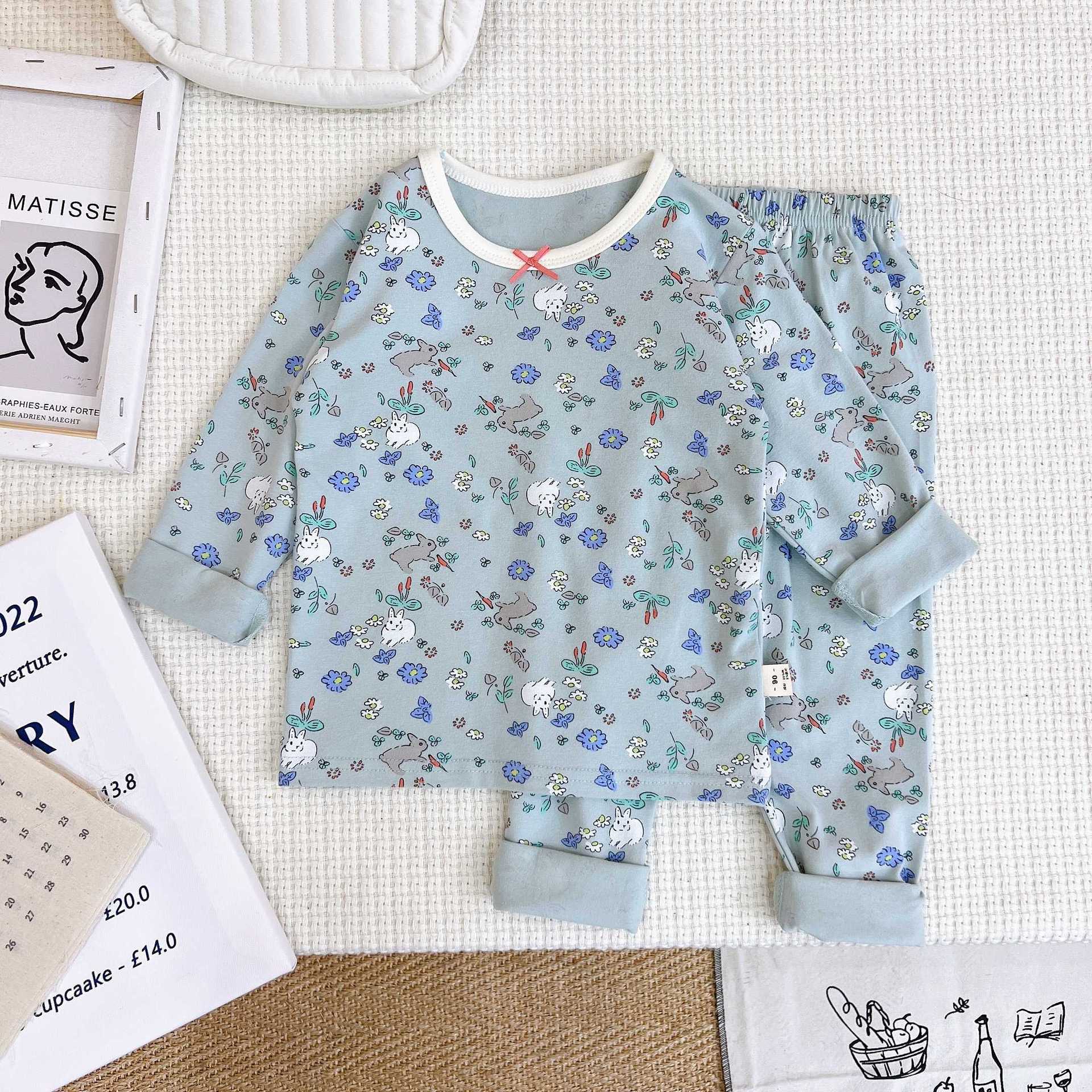 홈 의류 봄과 가을 어린이 라이크라 코튼 파자마 소년 및 소녀 에어컨 의류 세트 아기의 전체 꽃 만화 긴 소매