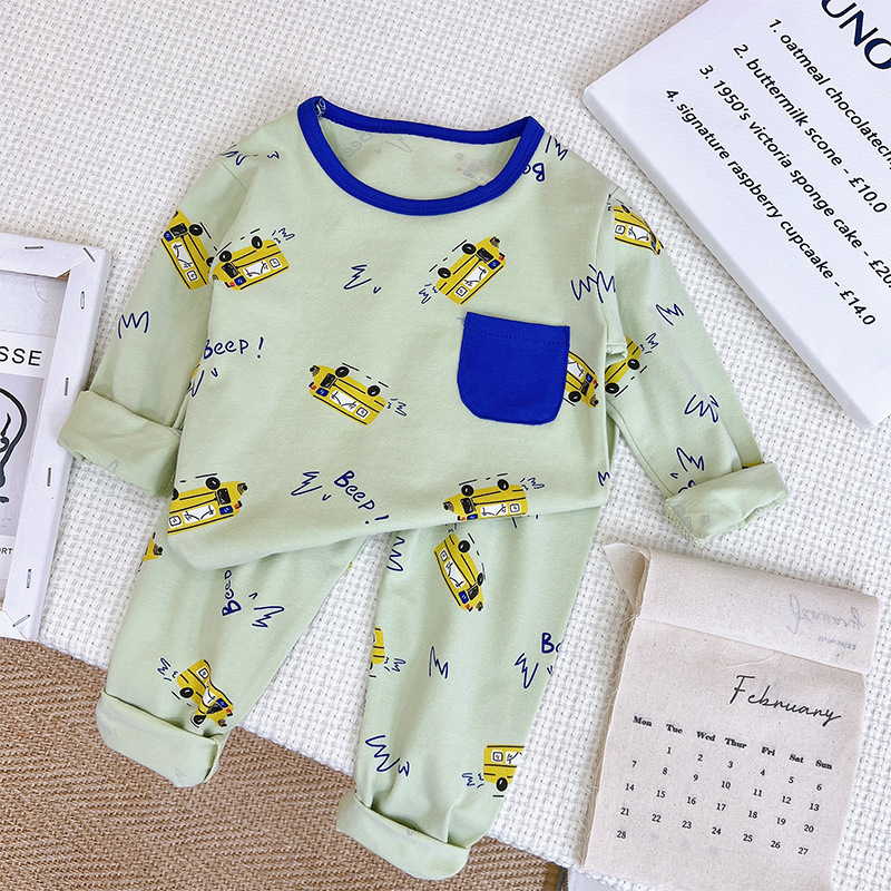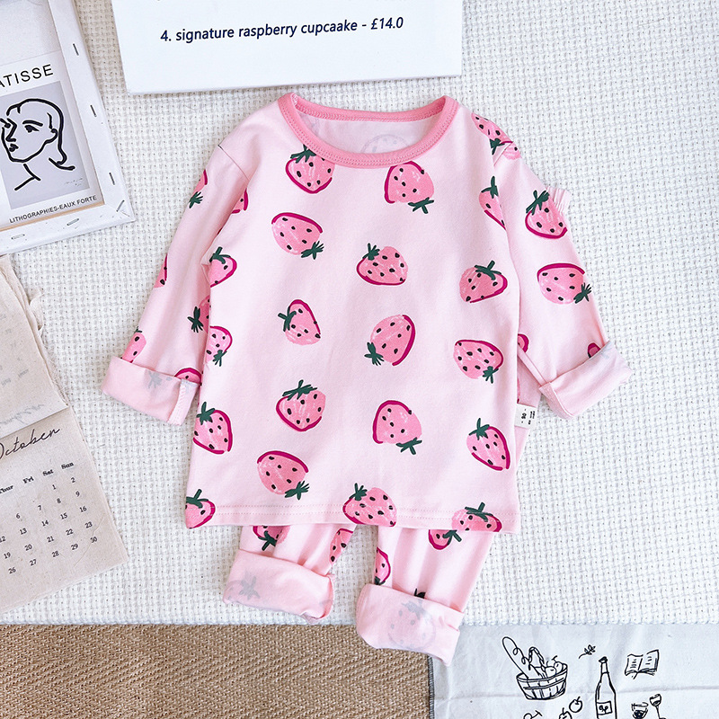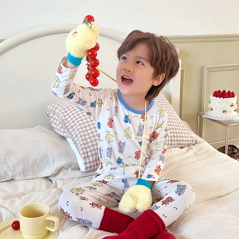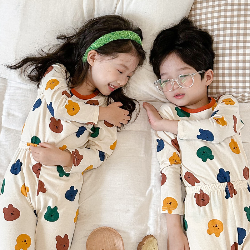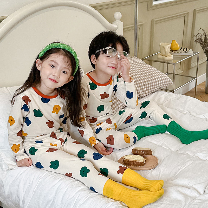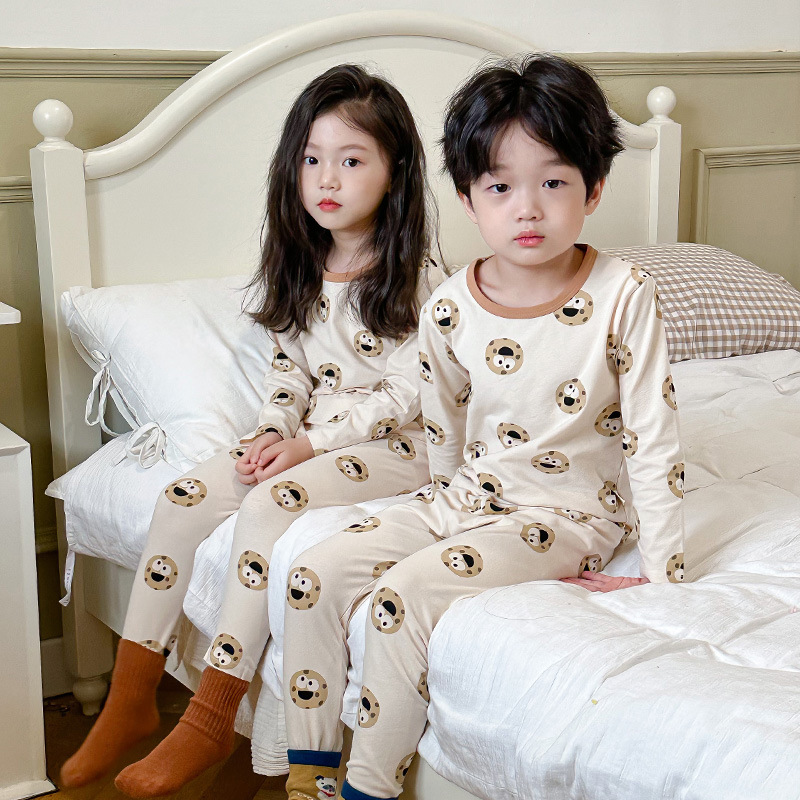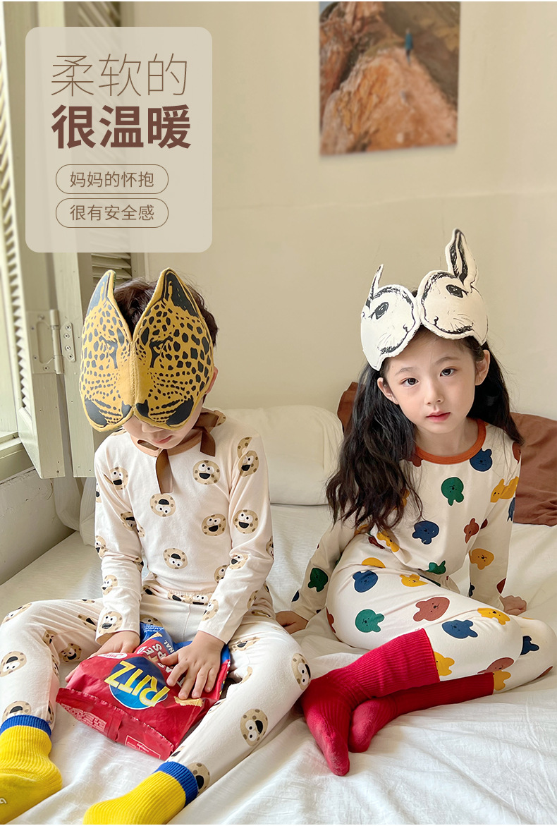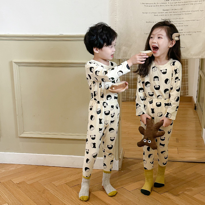 홈 의류 봄과 가을 어린이 라이크라 코튼 파자마 소년 및 소녀 에어컨 의류 세트 아기의 전체 꽃 만화 긴 소매
