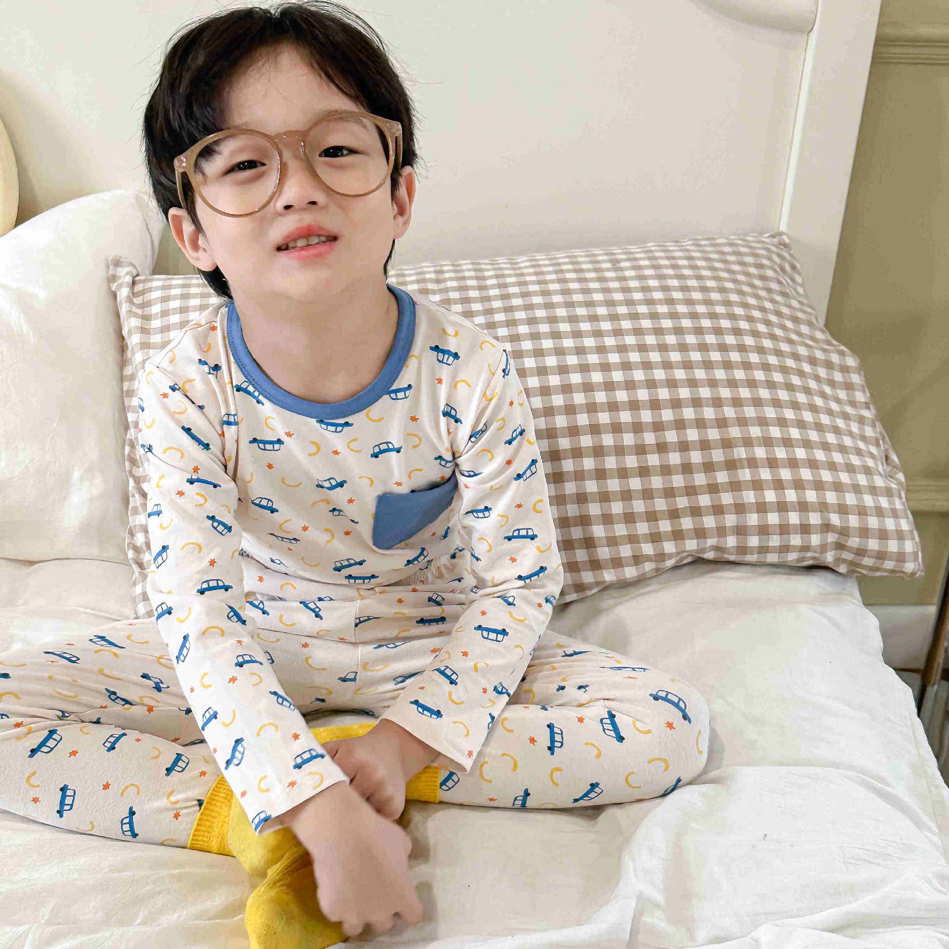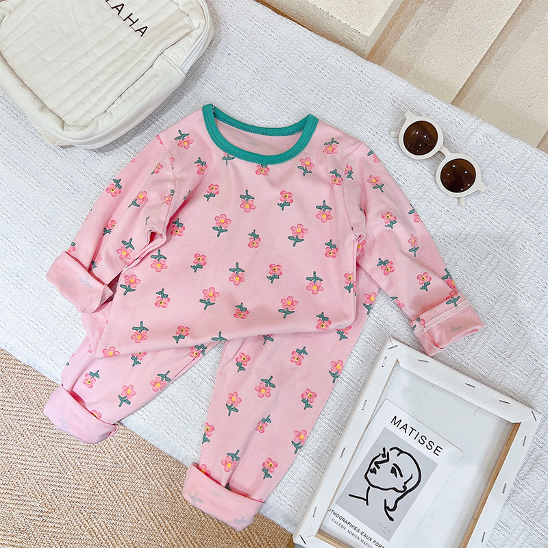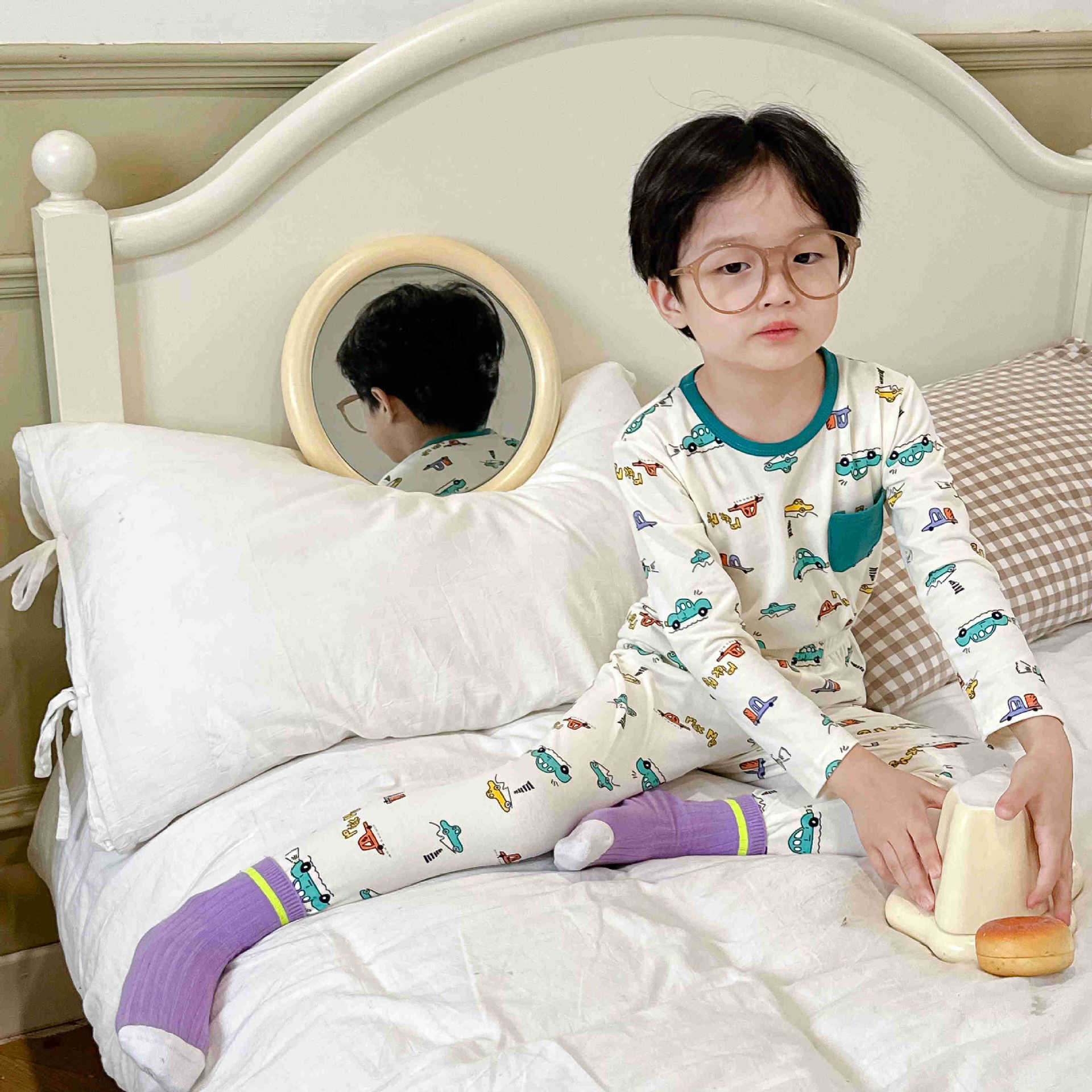홈 의류 봄과 가을 어린이 라이크라 코튼 파자마 소년 및 소녀 에어컨 의류 세트 아기의 전체 꽃 만화 긴 소매스토어 가기