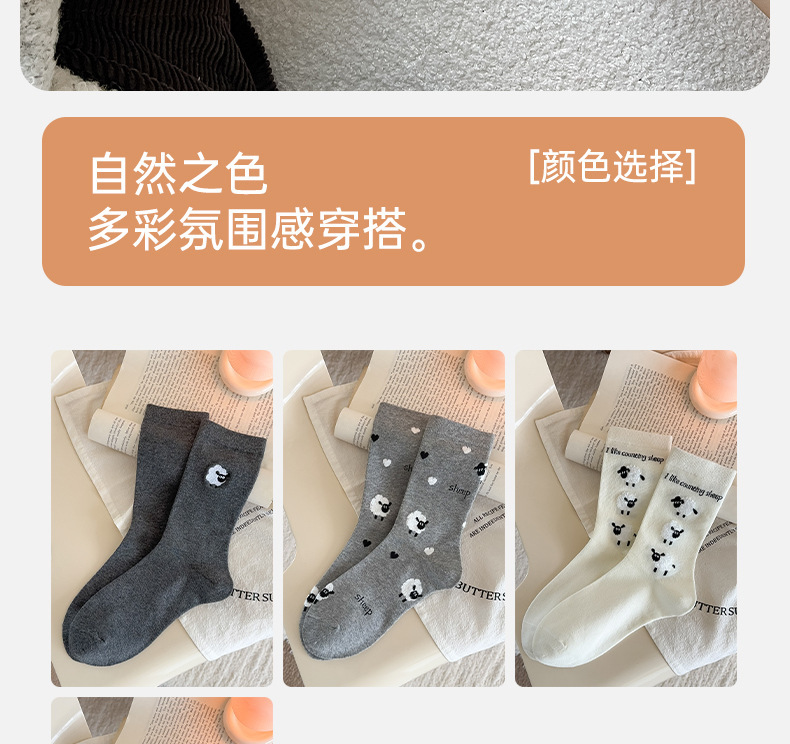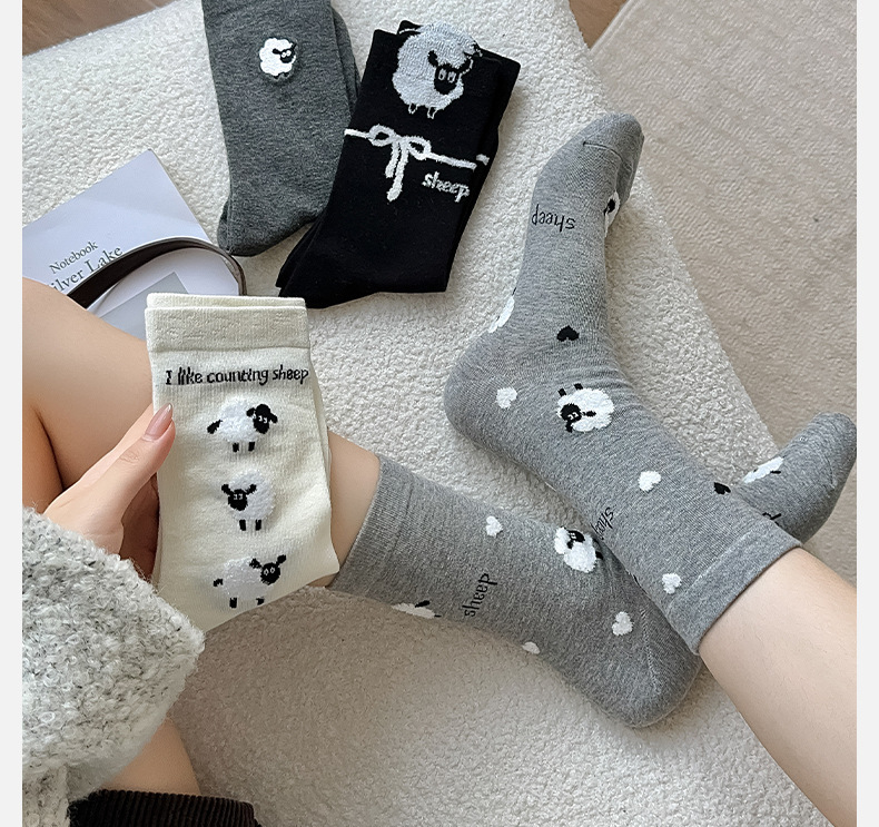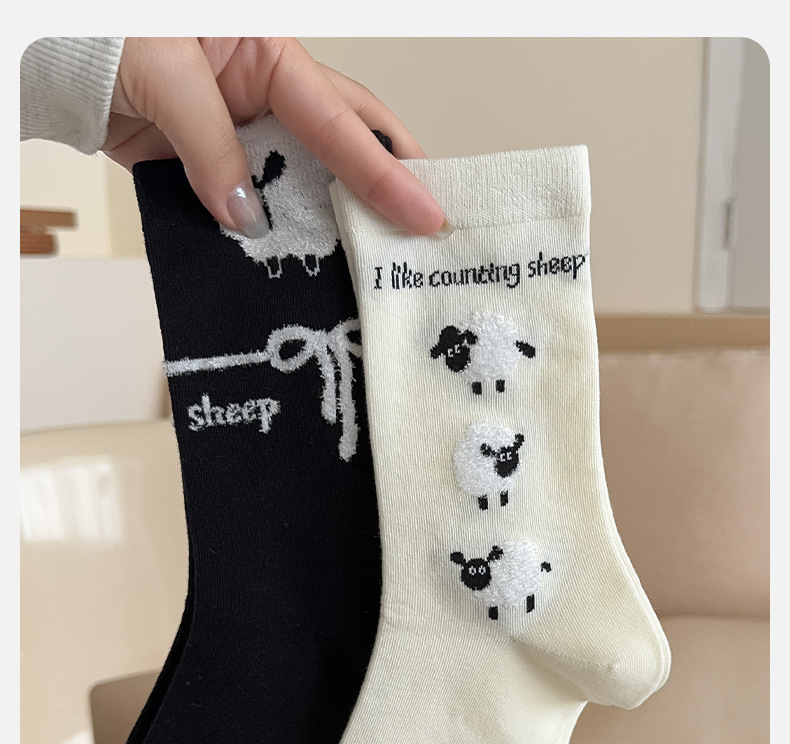 가을과 겨울 양말 달콤한 만화 따뜻한 면화 3 차원 양 간단한 착용 여성용 양말 면화스토어 가기