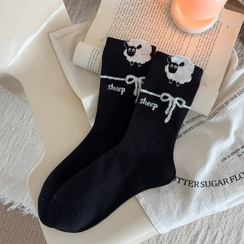 가을과 겨울 양말 달콤한 만화 따뜻한 면화 3 차원 양 간단한 착용 여성용 양말 면화