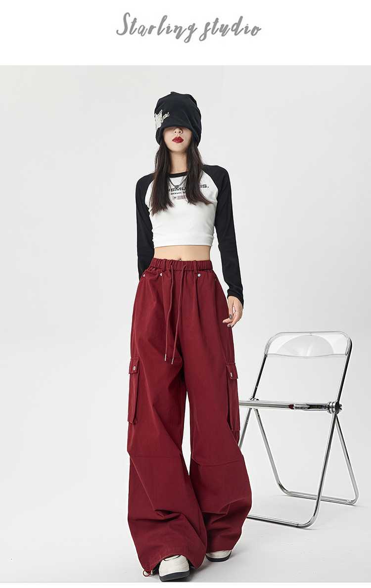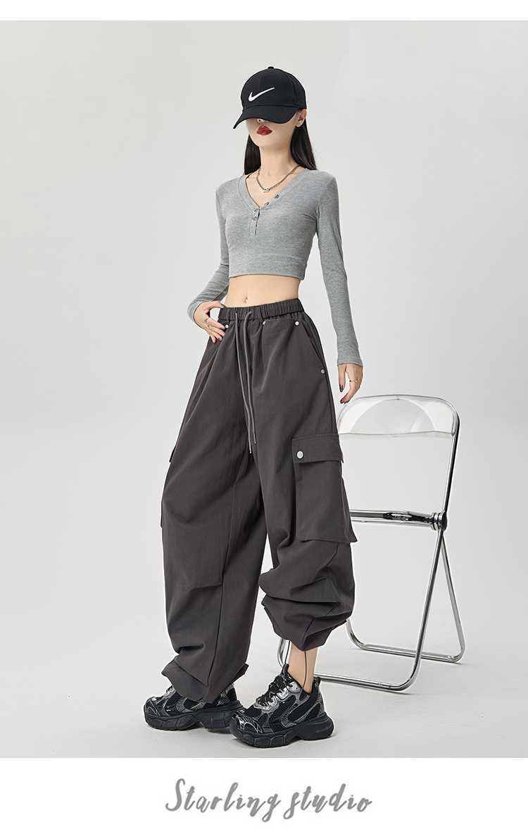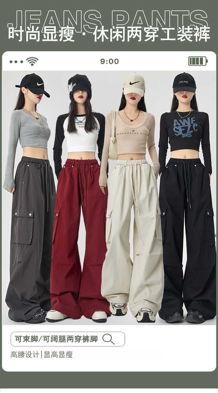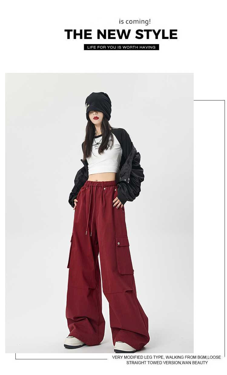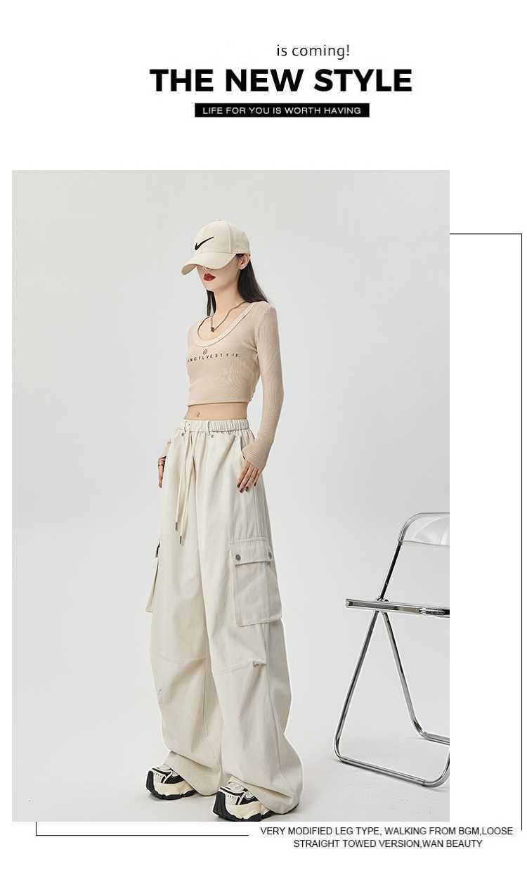 아메리칸 스타일 클라이밍 오버볼 여성용 새로운 느슨한 캐주얼 와이드 레그 팬츠 야외 워시 코튼 기능성 스타일 스포츠 바지스토어 가기