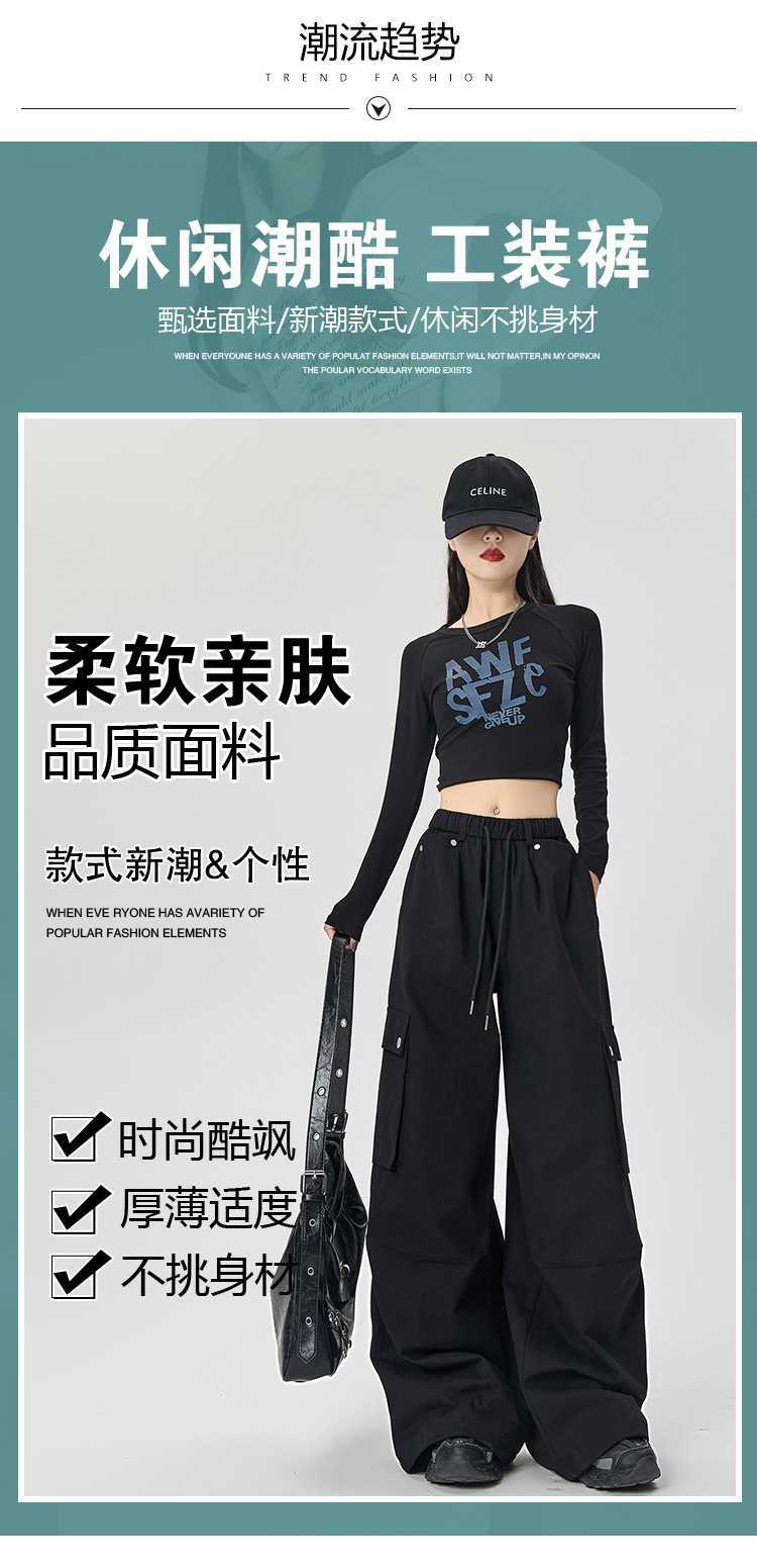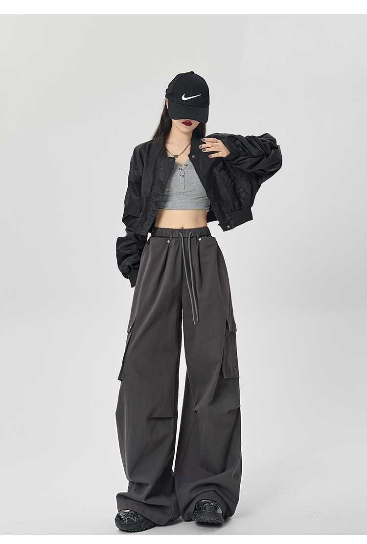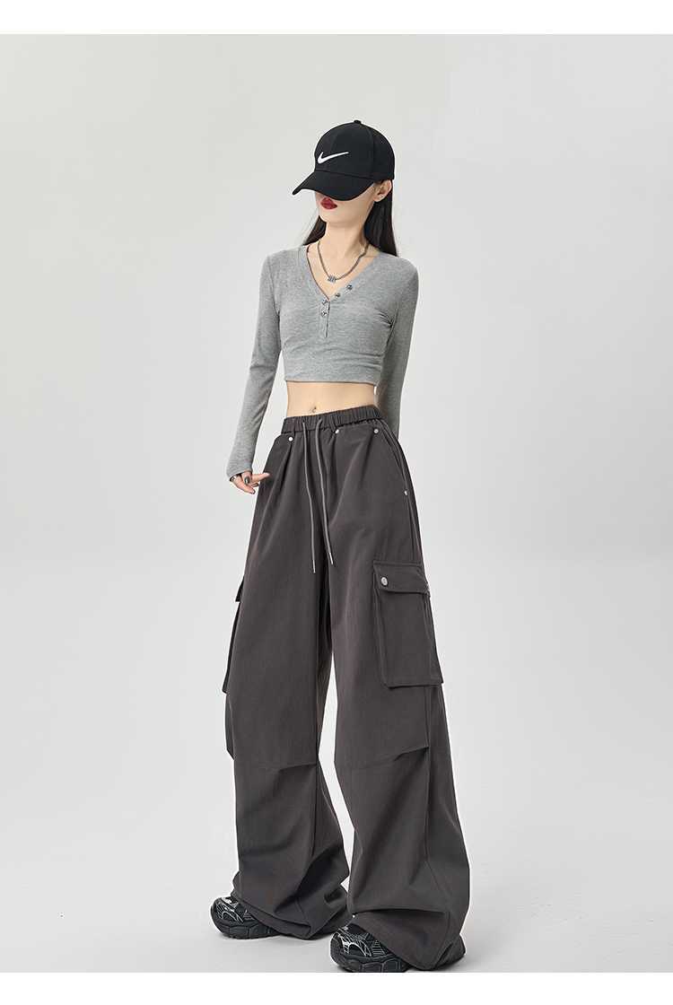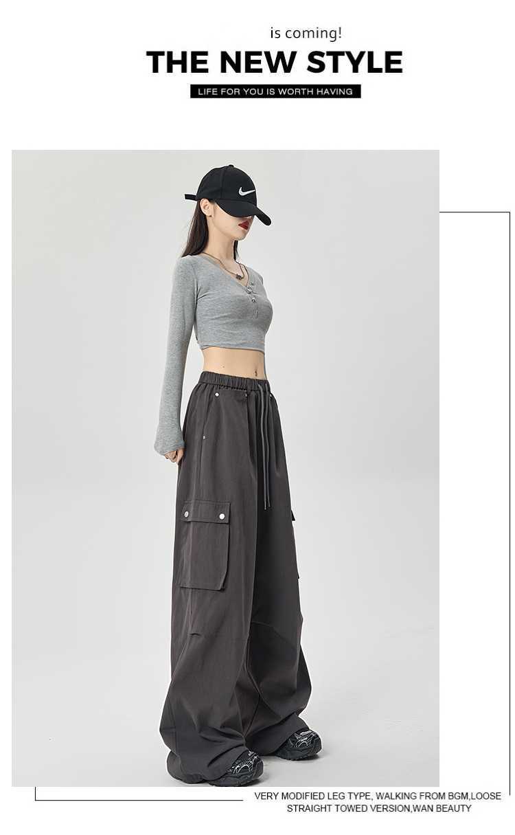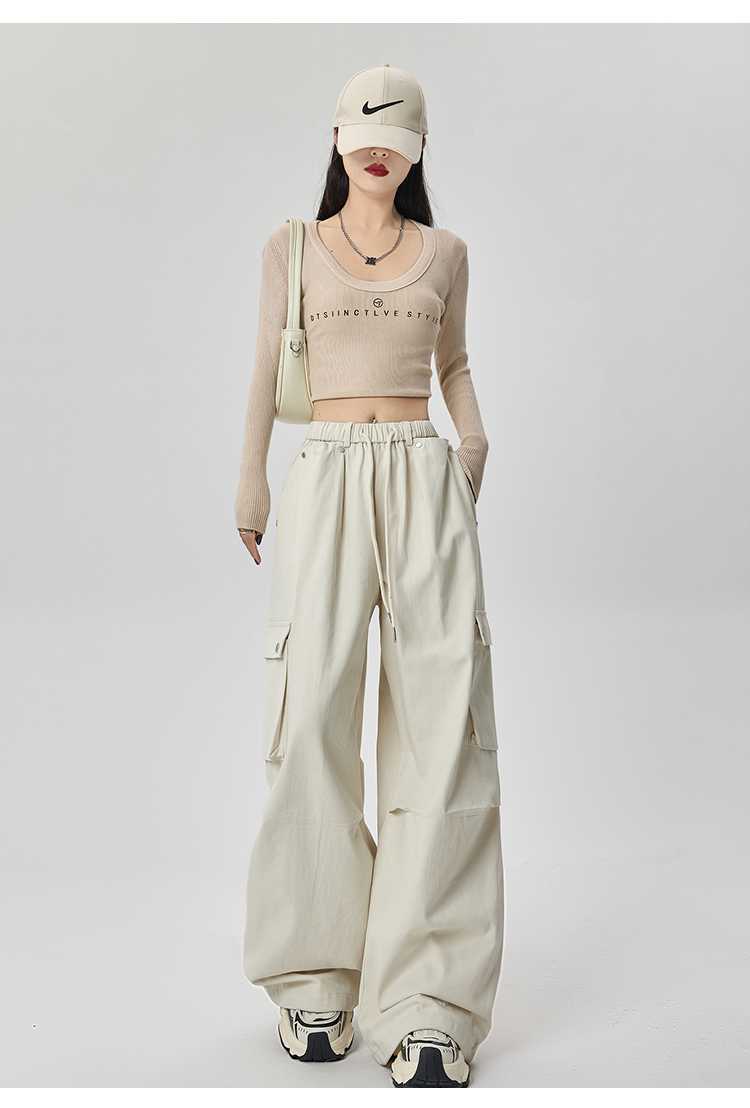 아메리칸 스타일 클라이밍 오버볼 여성용 새로운 느슨한 캐주얼 와이드 레그 팬츠 야외 워시 코튼 기능성 스타일 스포츠 바지스토어 가기