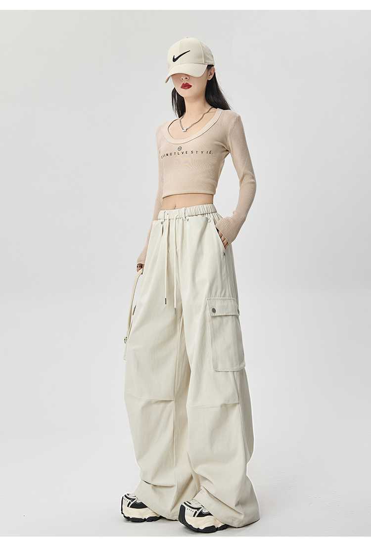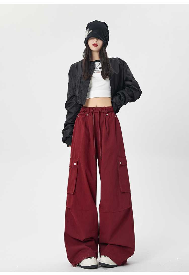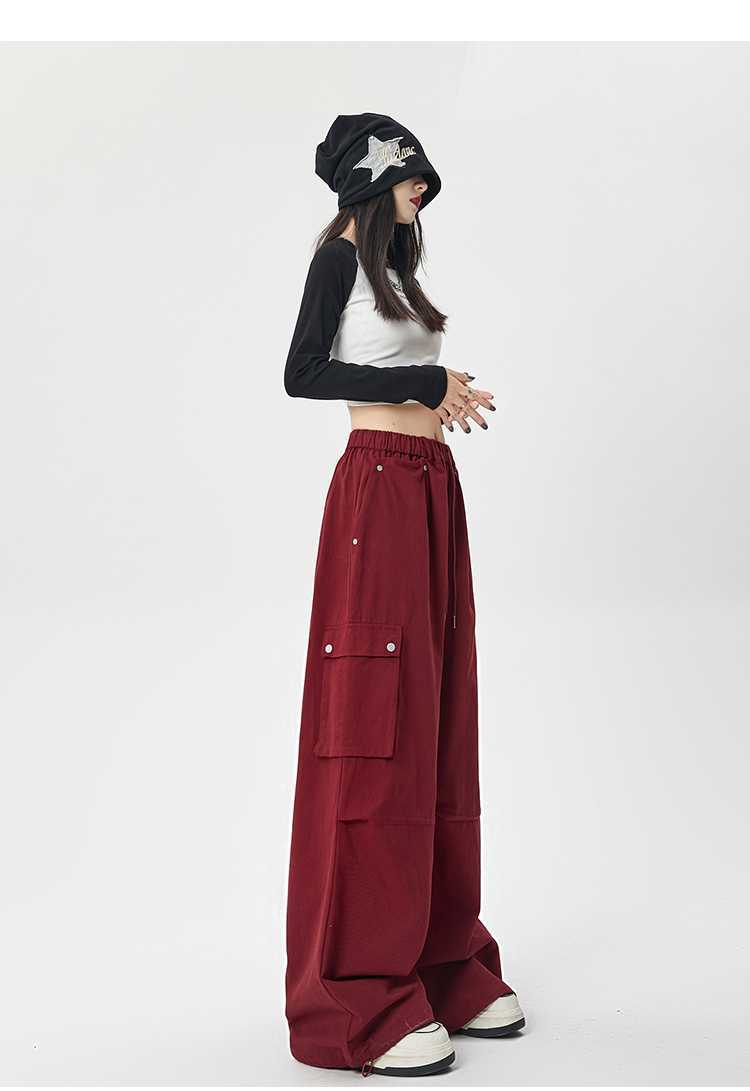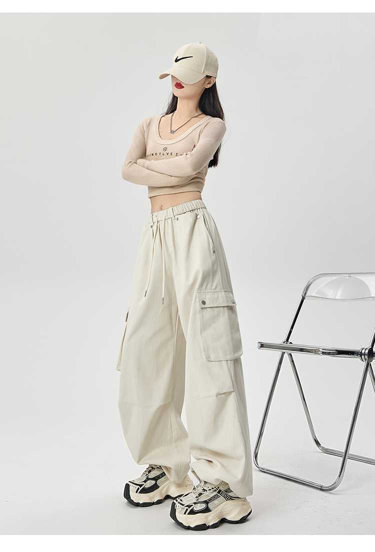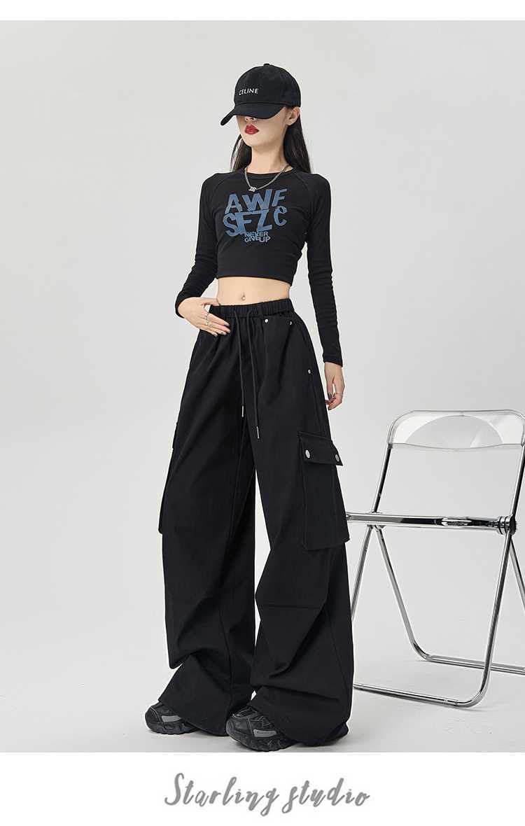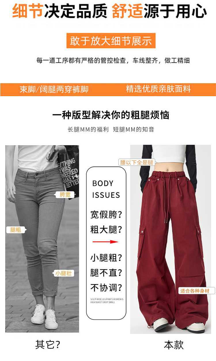 아메리칸 스타일 클라이밍 오버볼 여성용 새로운 느슨한 캐주얼 와이드 레그 팬츠 야외 워시 코튼 기능성 스타일 스포츠 바지스토어 가기