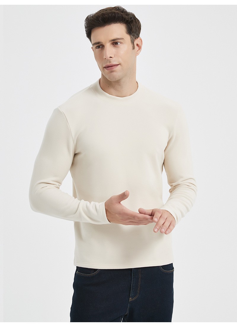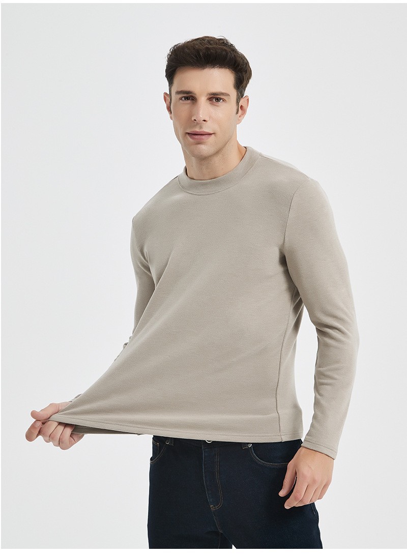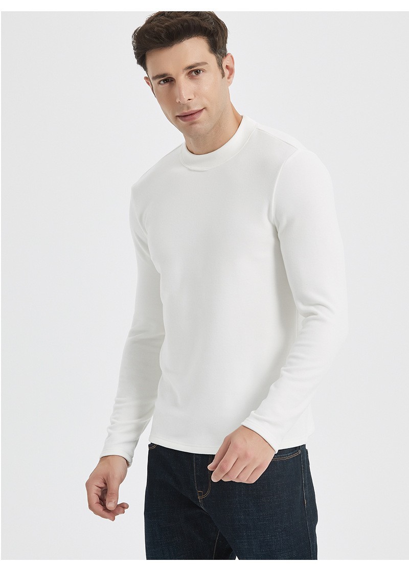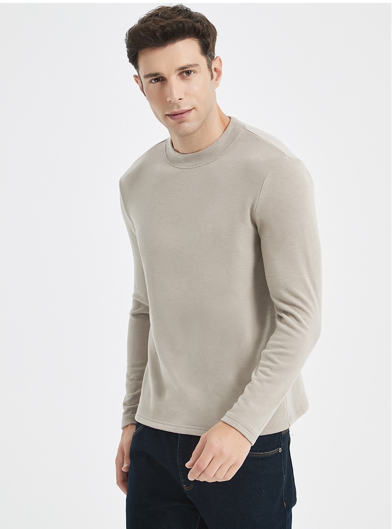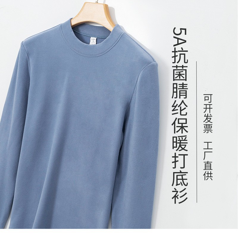 하이 엔드 이펑 실크베이스 셔츠 남자의 가을과 겨울 새로운 반 높이 목 둥근 목 따뜻한 항균 아크릴 양털 티셔츠 긴 소매