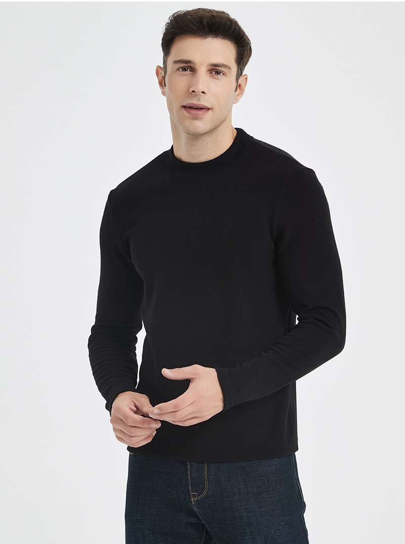 奢感羊毛衫打底衫男士精纺毛衣圆领长袖羊毛工厂保暖t恤男长袖