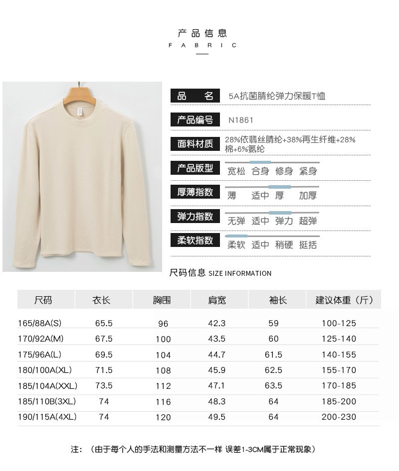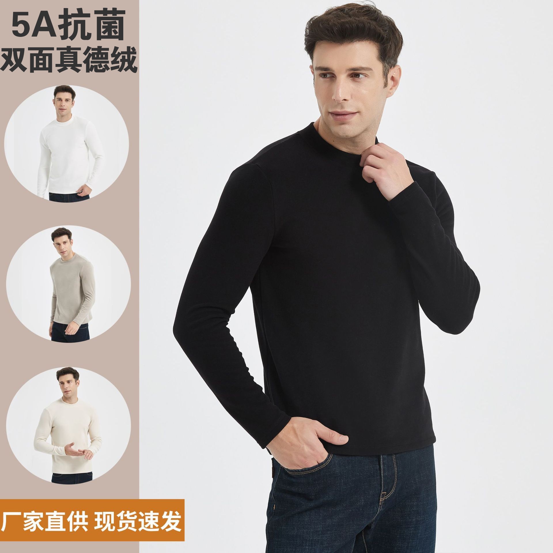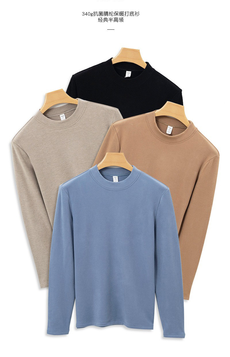 하이 엔드 이펑 실크베이스 셔츠 남자의 가을과 겨울 새로운 반 높이 목 둥근 목 따뜻한 항균 아크릴 양털 티셔츠 긴 소매스토어 가기