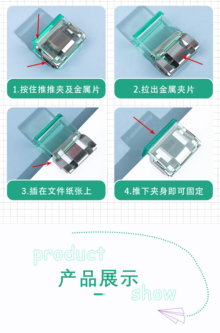 금속 푸시 클립 파일 클립 슬라이드 클립 바지 클립 책 클립 방지 롤링 고정기 투명 푸시 클립 책 클립