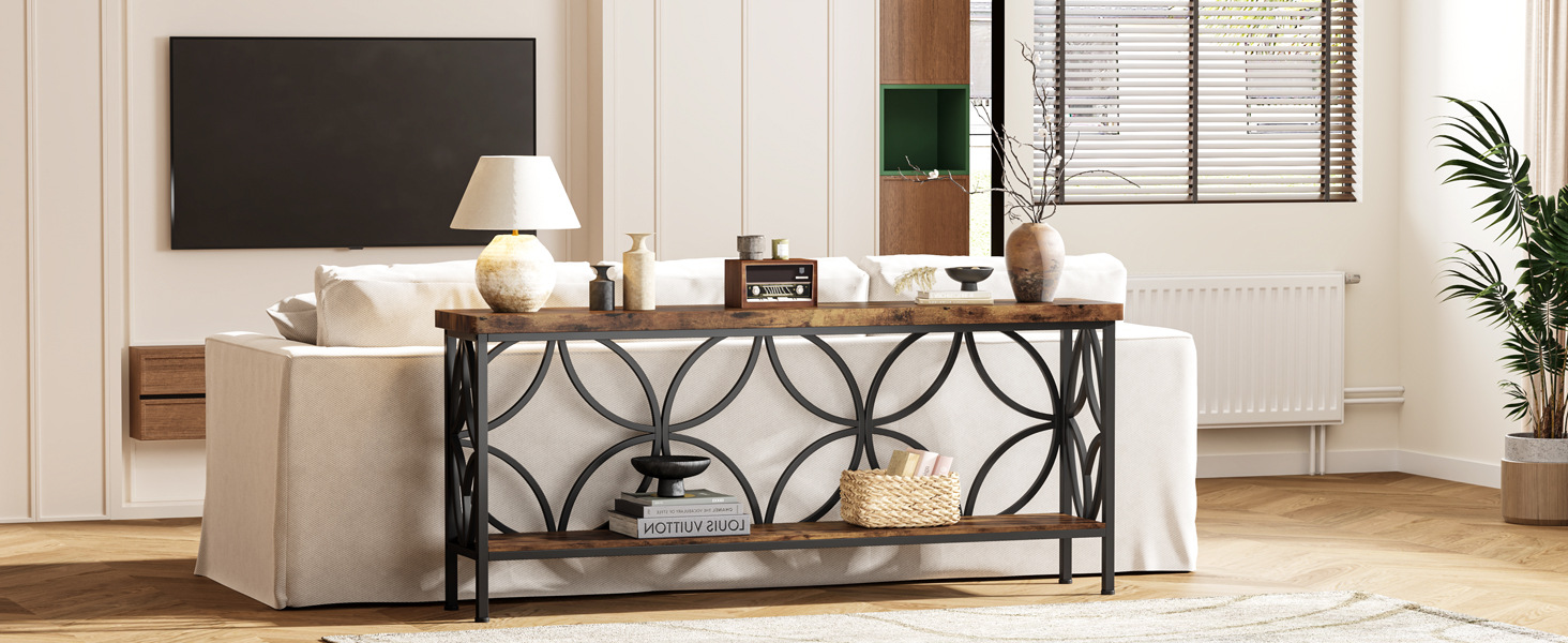 콘솔 테이블, 미국 복고풍 통나무 스타일 복도 스트립 테이블, 거실 입구, 비단목 테이블, 콘솔스토어 가기