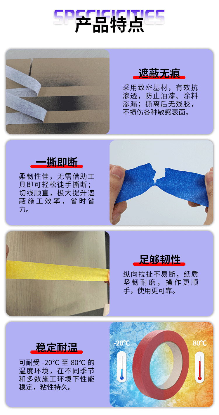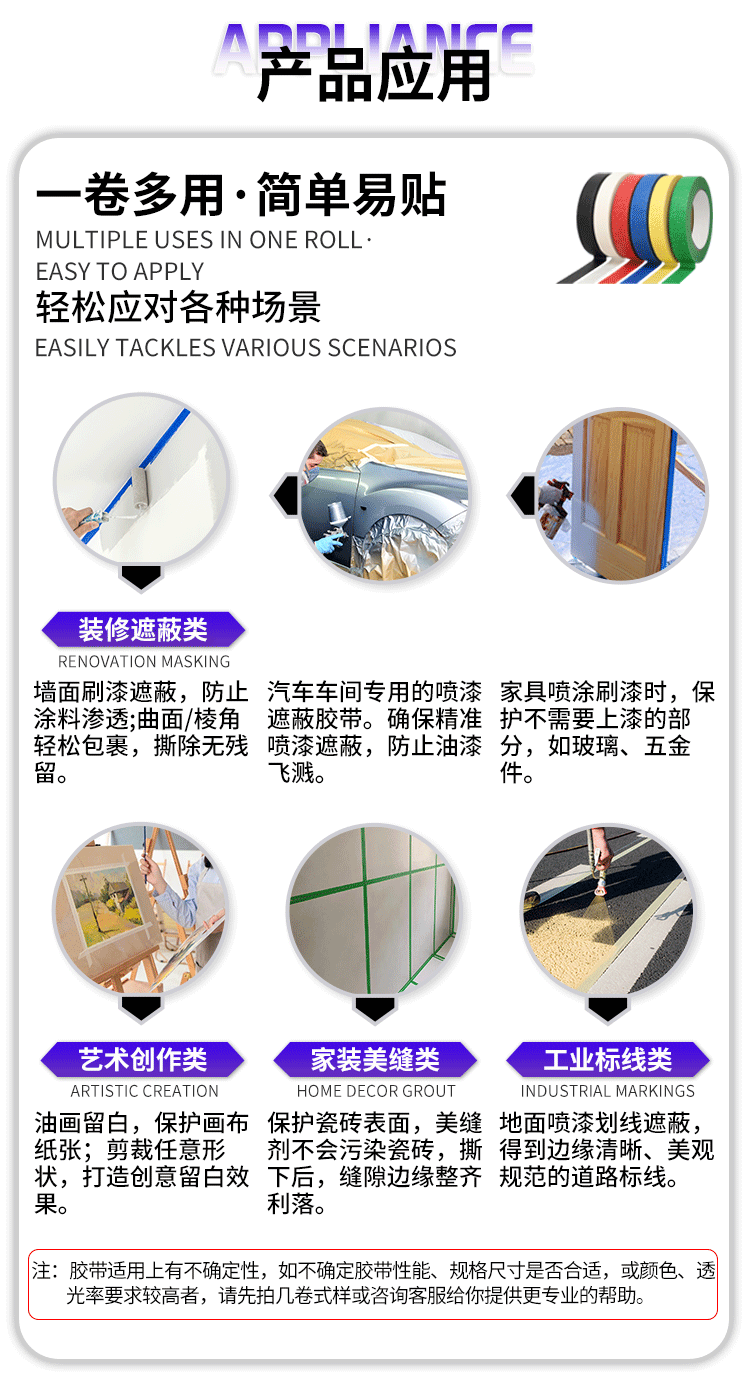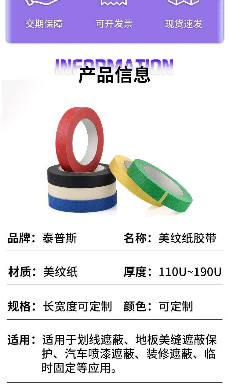 마스킹 테이프, 강한 접착력, 흰색 장식, 솔기 스프레이 페인트, 색 분리지, 프라이머 손상 없음, 잔류 접착제 없음, 마스킹 테이프스토어 가기