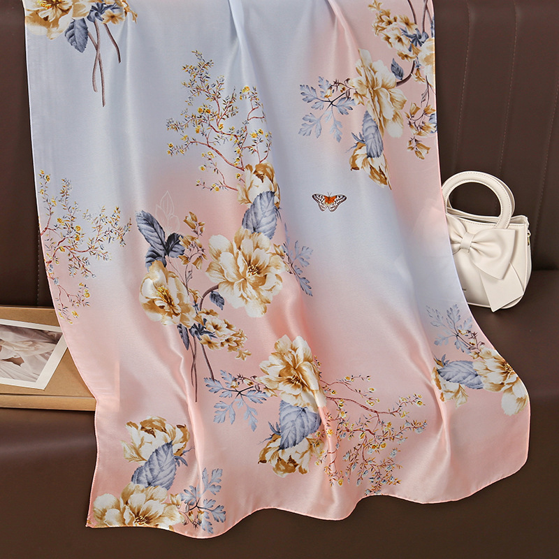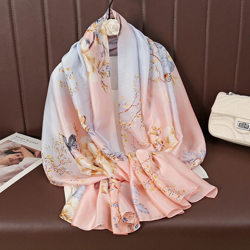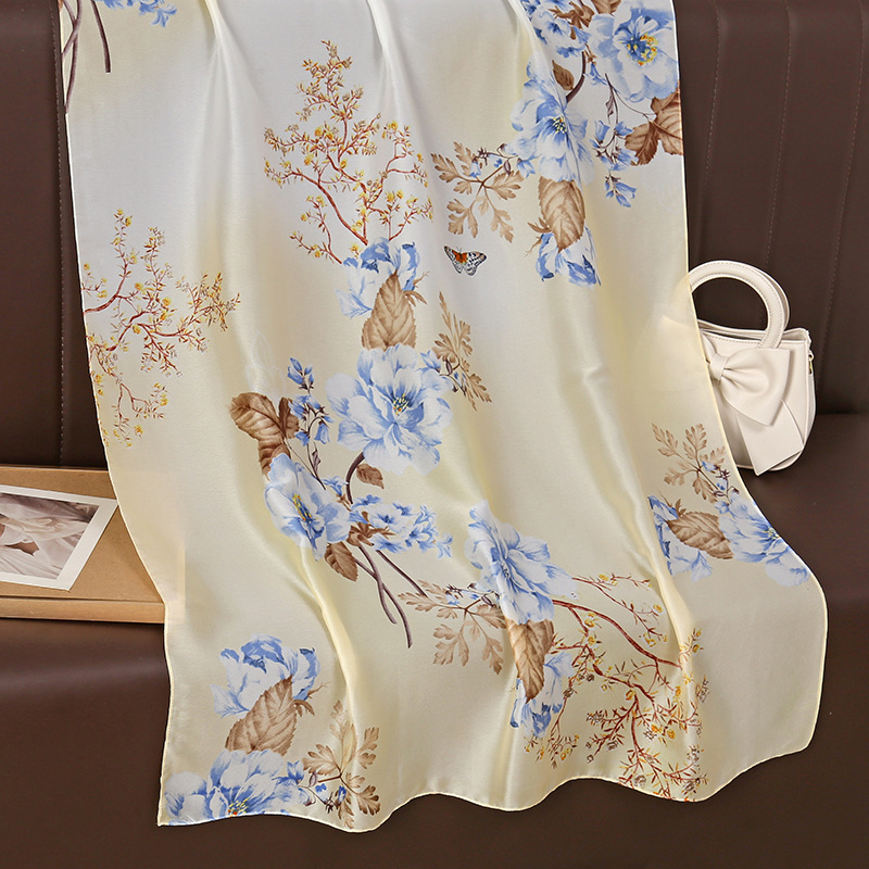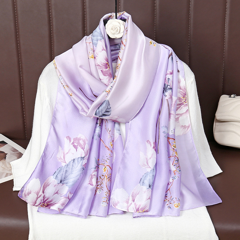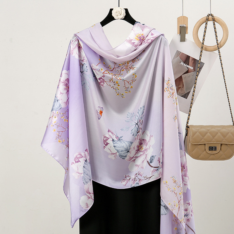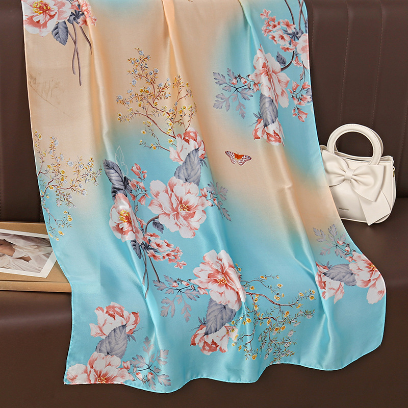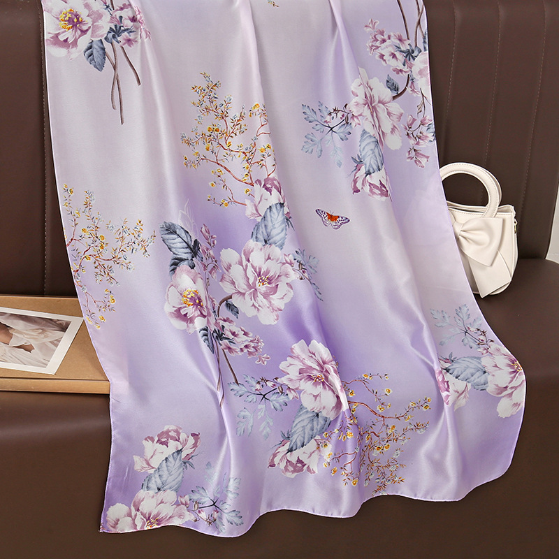 모리 스타일 신선한 식물 나비 꽃 모방 실크 긴 실크 스카프 일반 우아한 우아한 여성의 선 스크린 목도리
