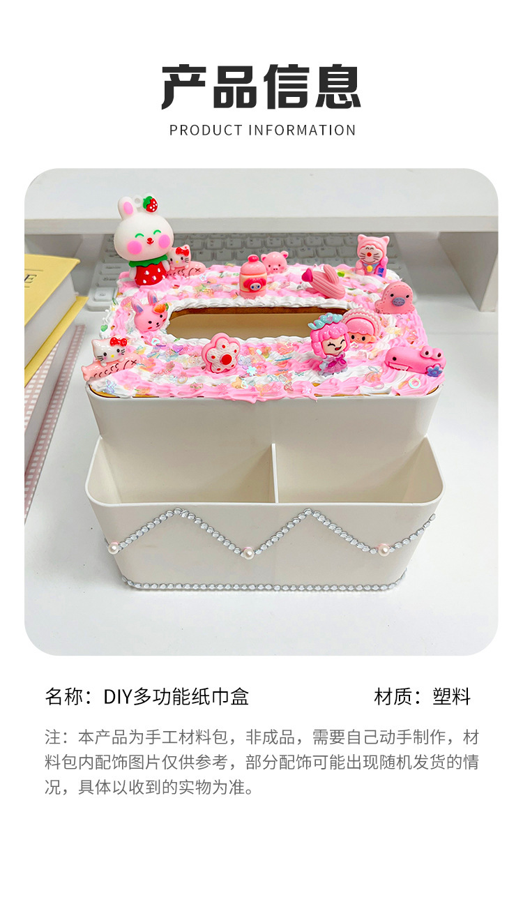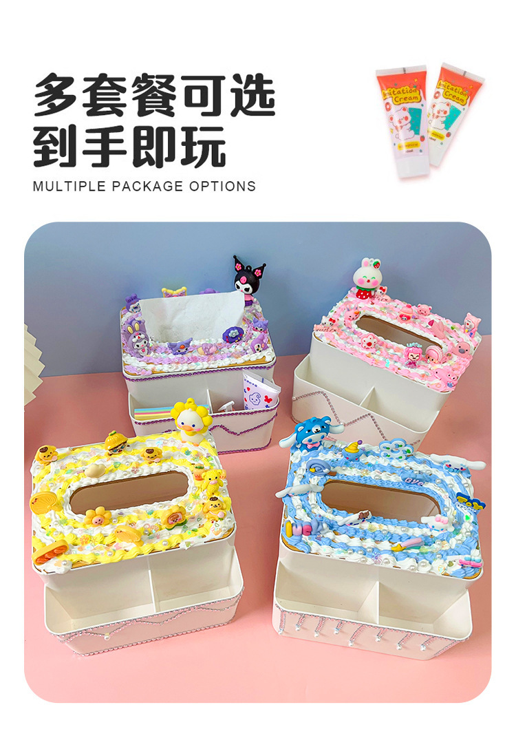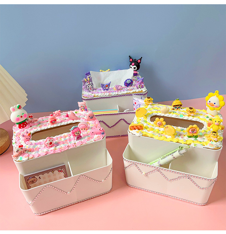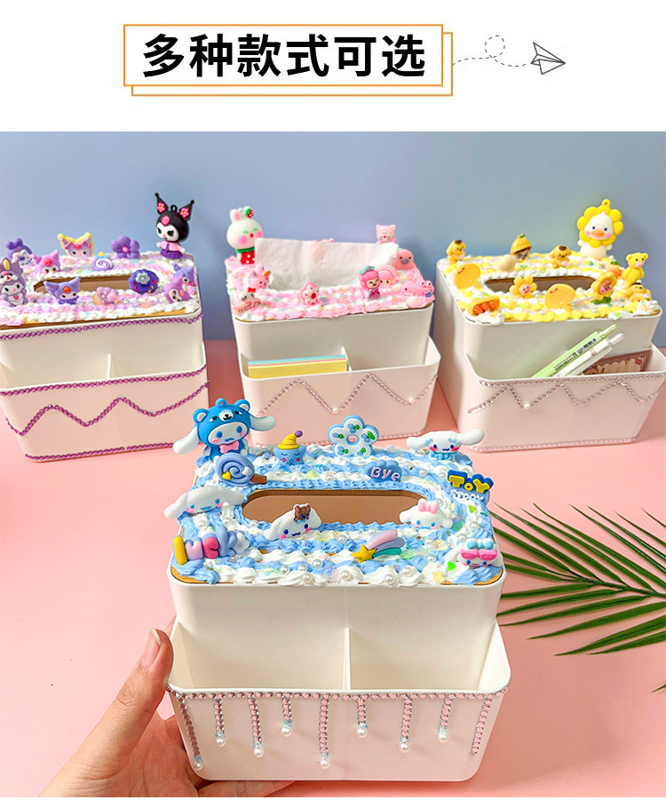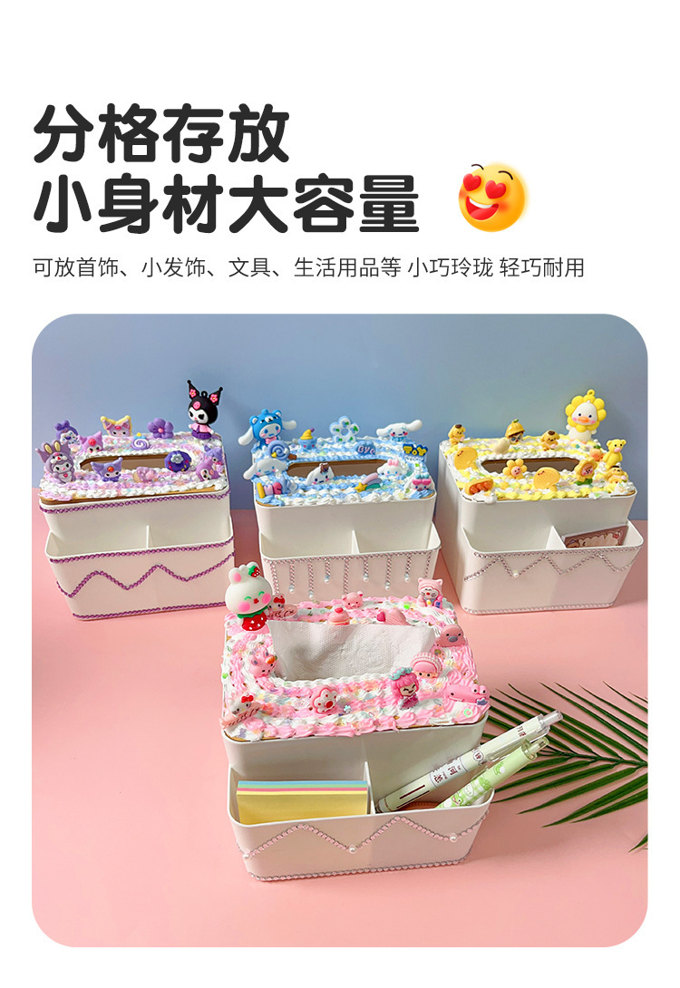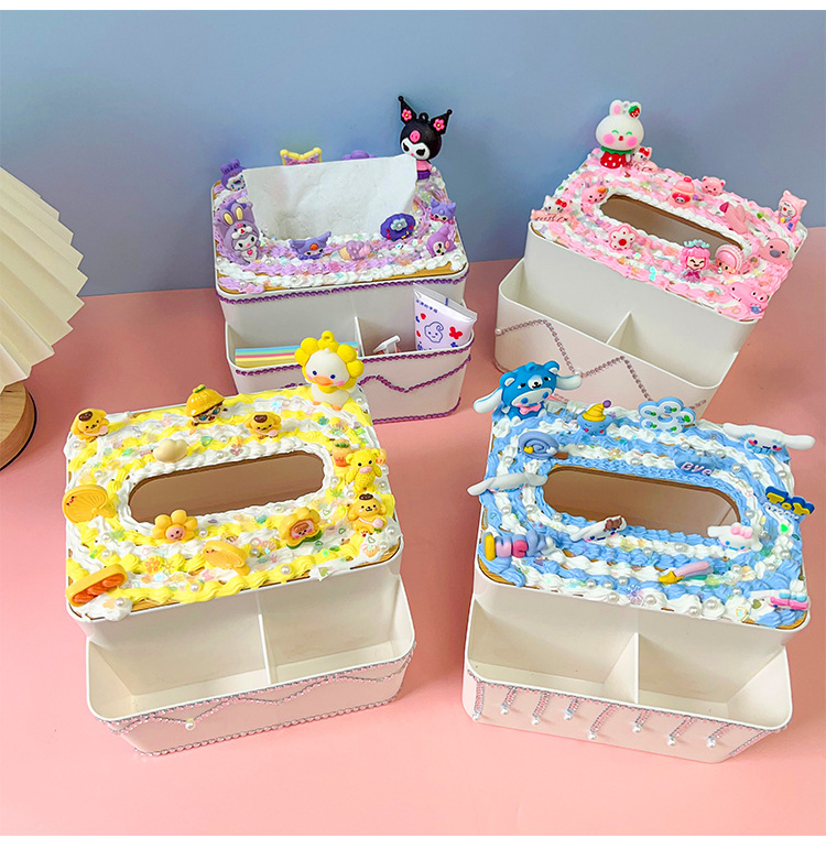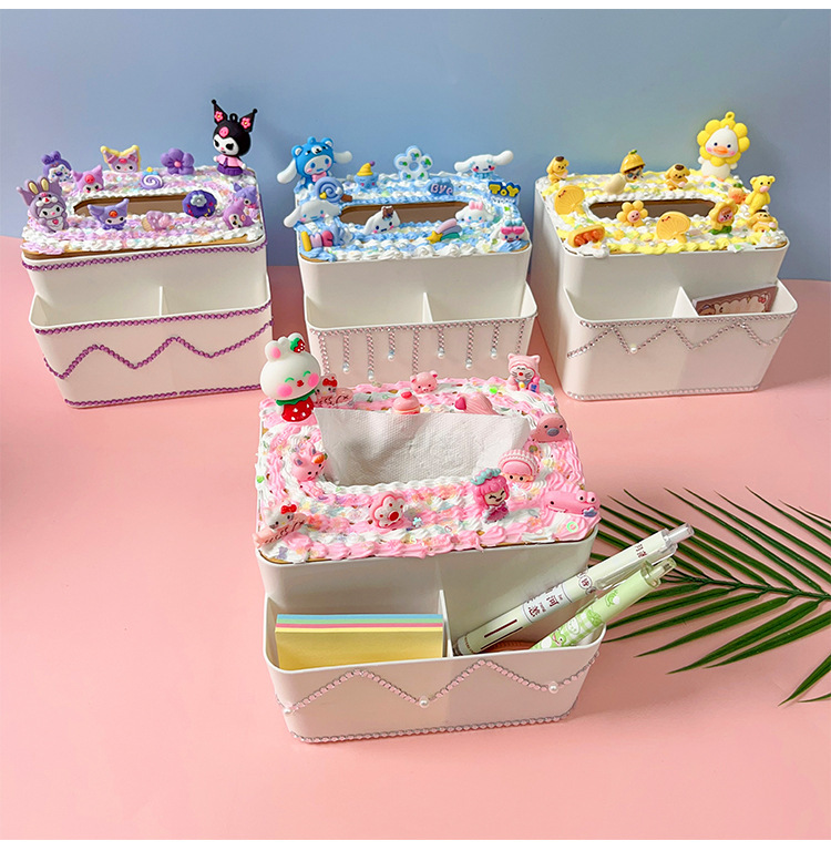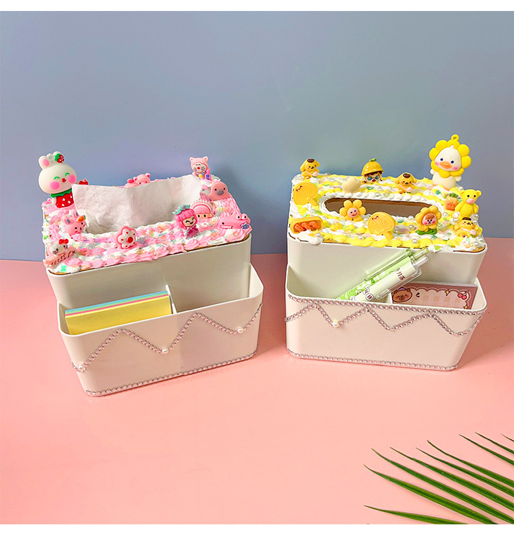 조직 상자 수제 DIY 크림 접착제 소재 다기능 저장 상자 창조적 인 귀여운 가정 편리한 조직 상자 배치