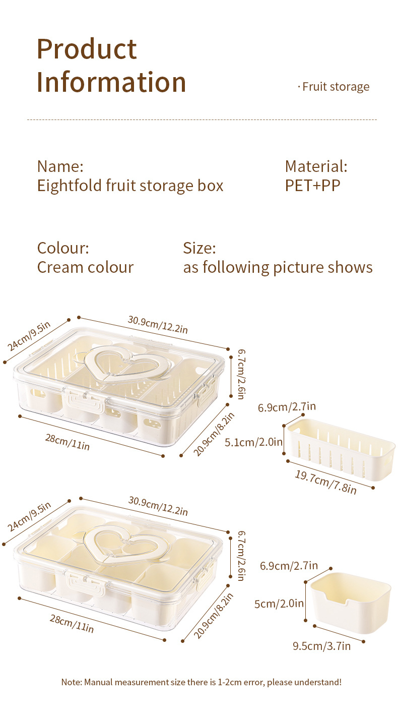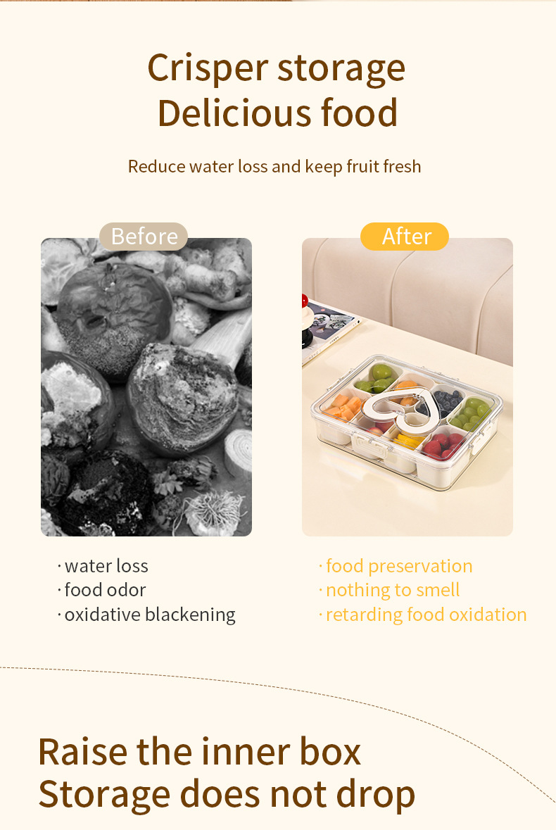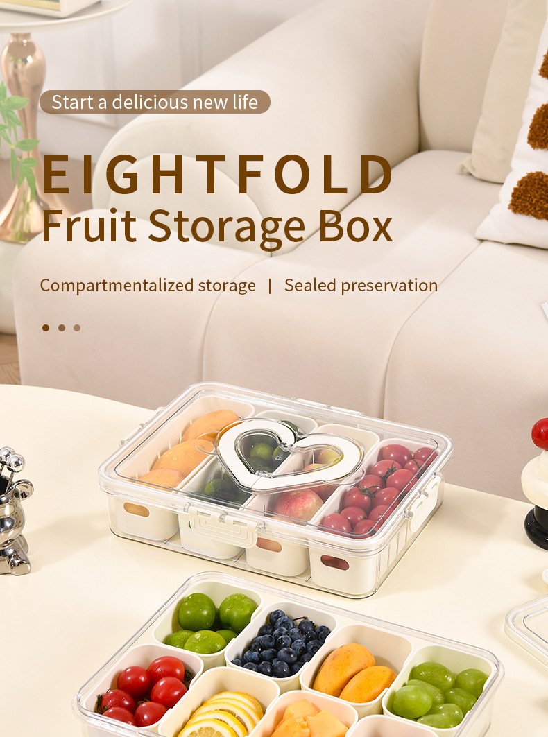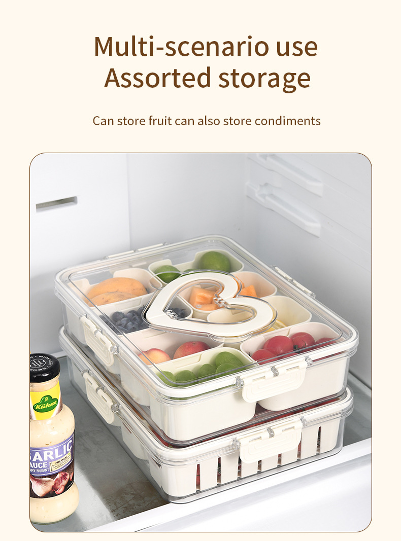 사랑 냉장고 샐러드 과일 보존 상자 가정용 향신료 주방 보관 상자 8 칸 밀폐 된 향신료 상자