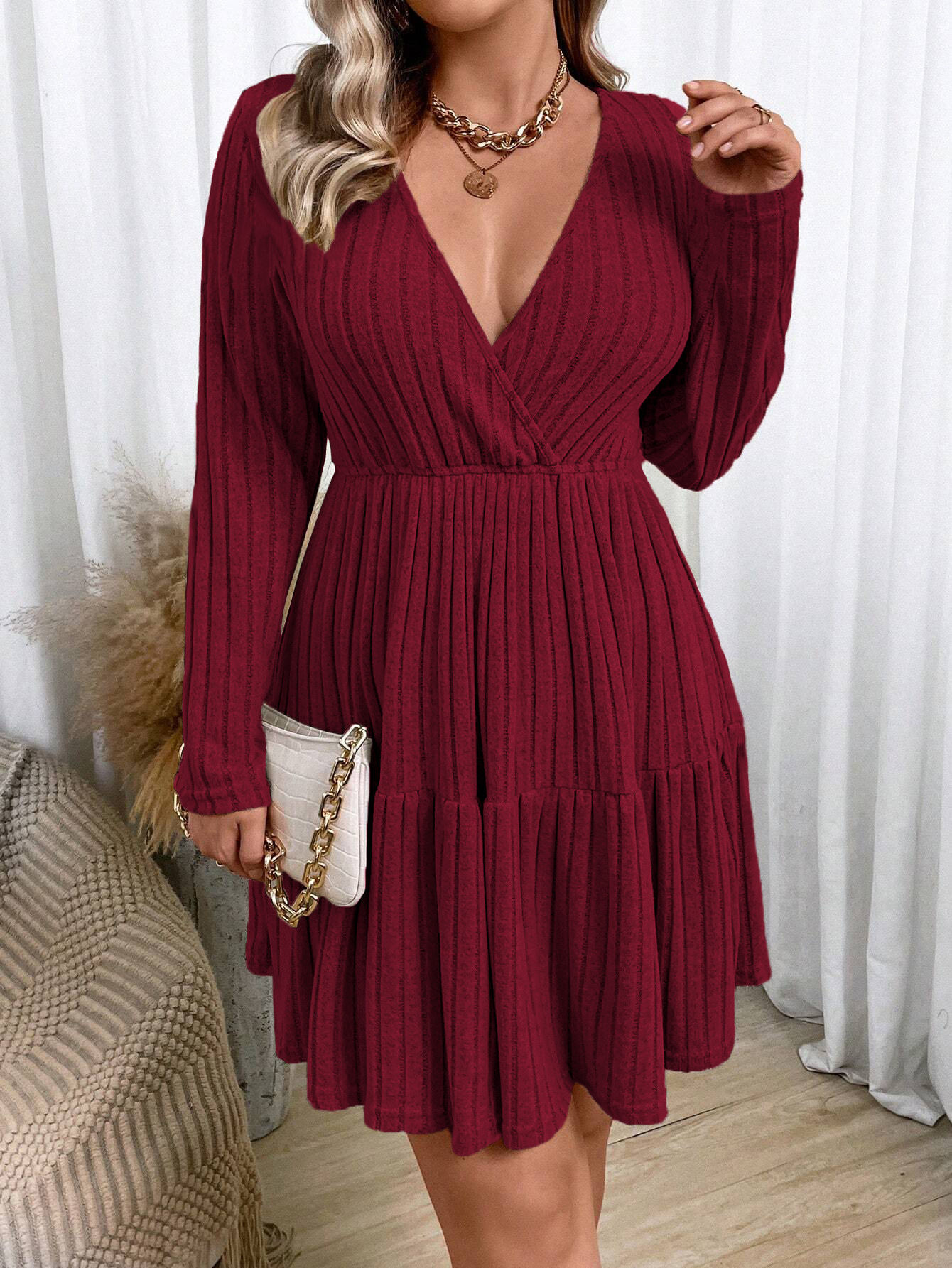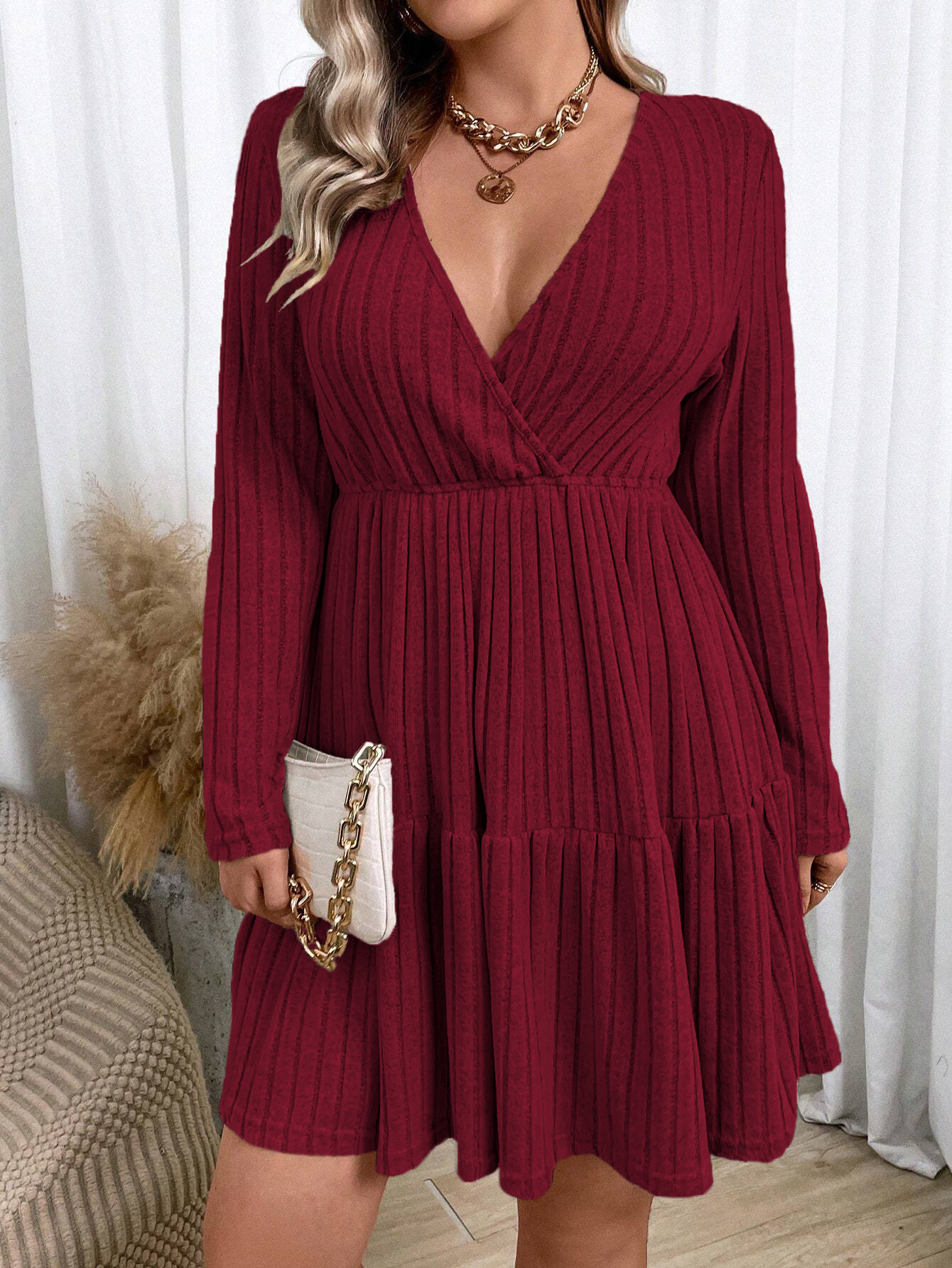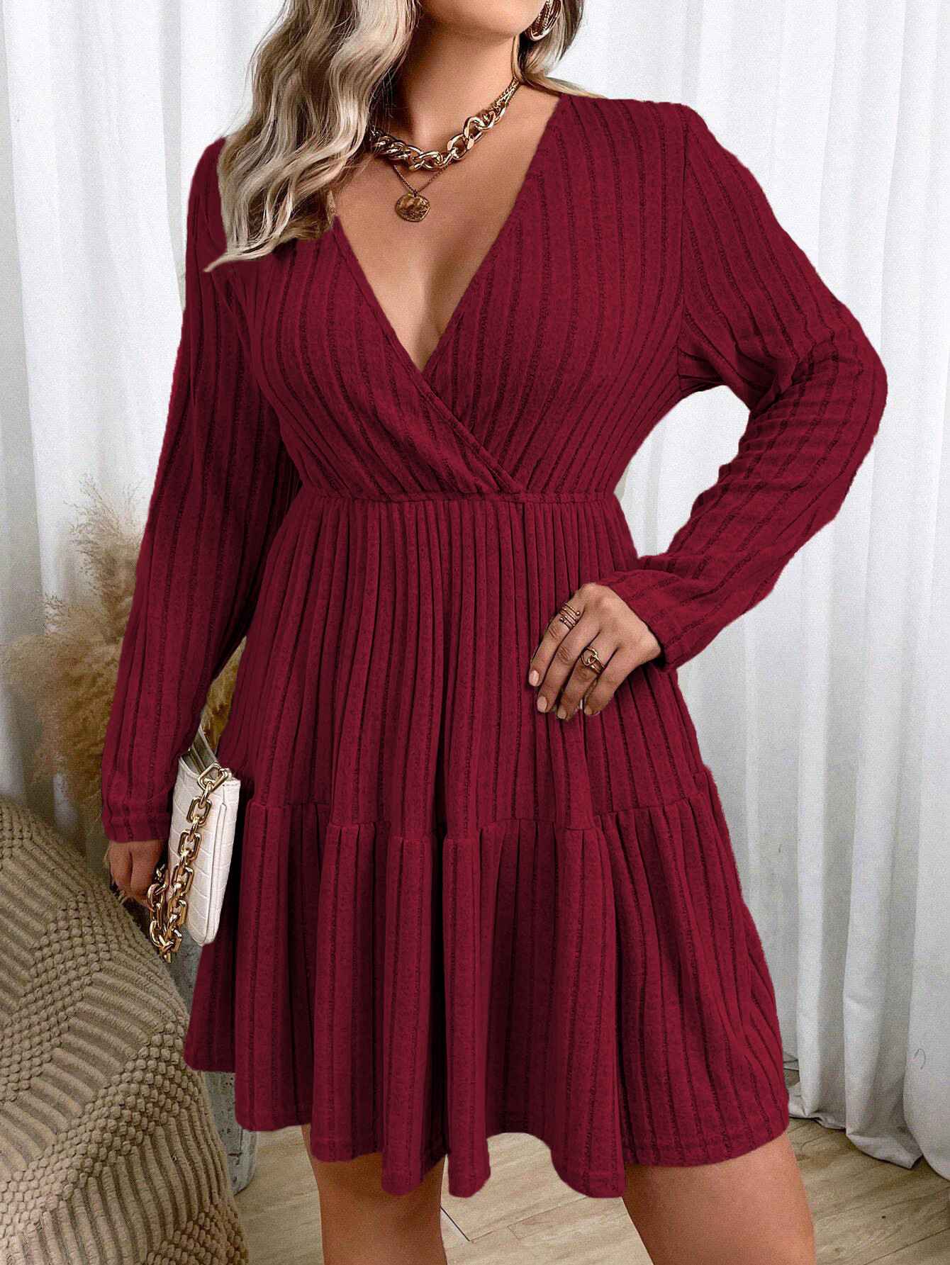 아마존 국경 간 플러스 사이즈 여성 패션 통근 원피스 가을 및 겨울 하이 엔드 연령 감소 버건디 미디 원피스