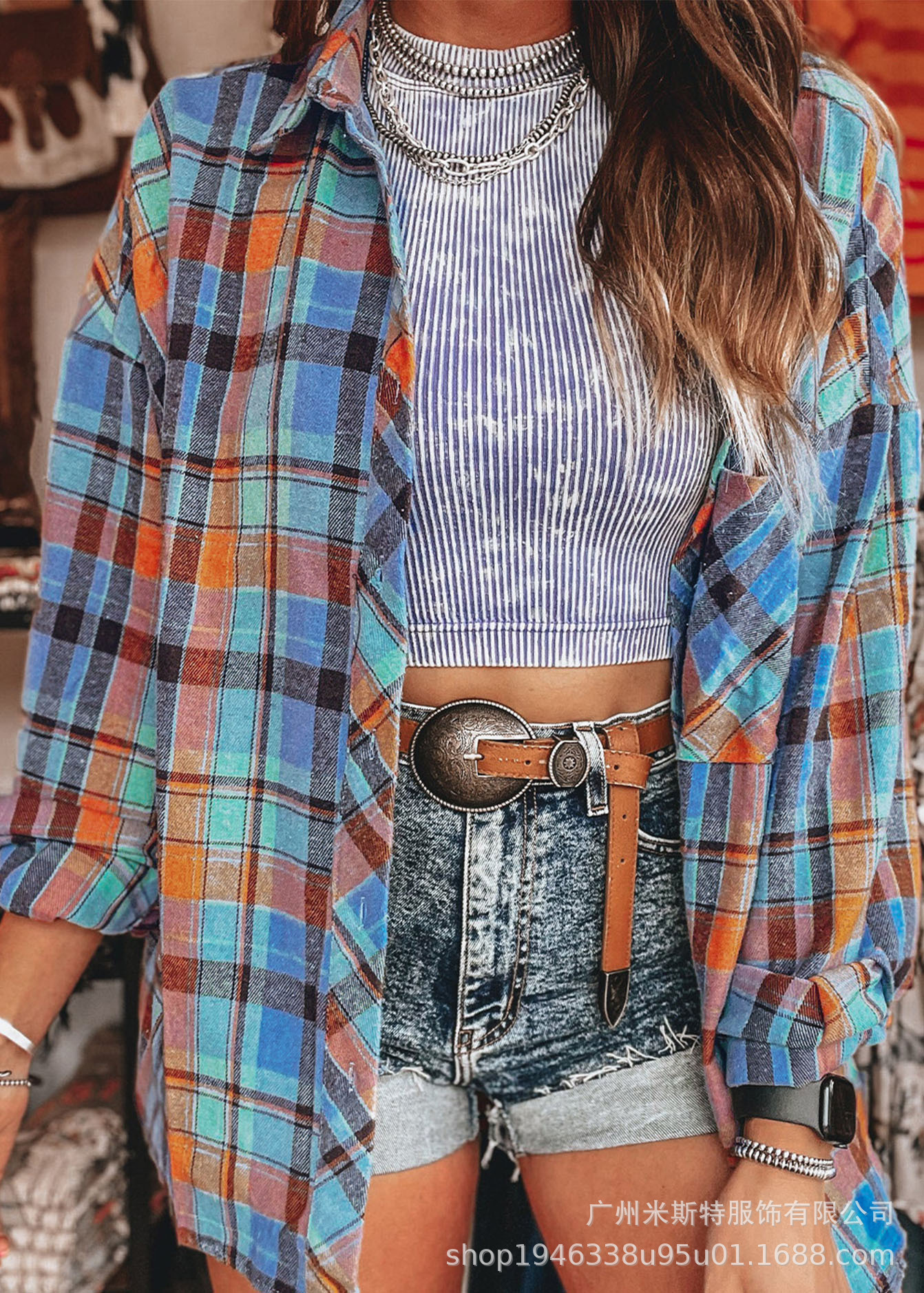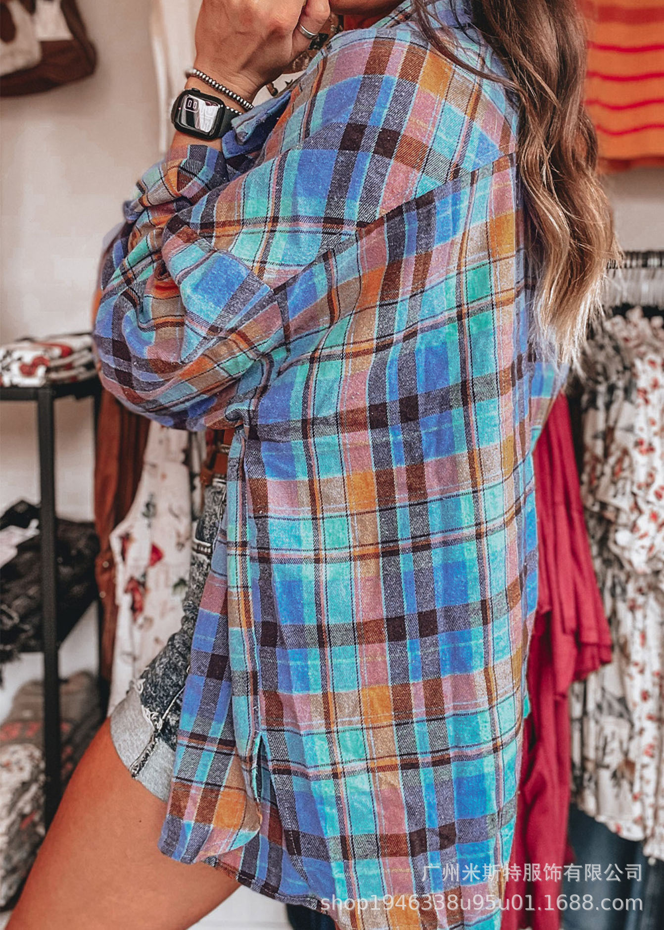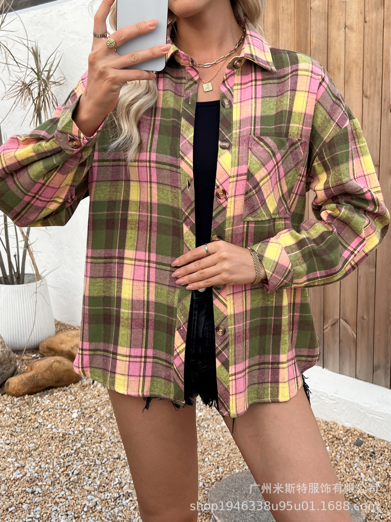 유럽과 미국의 심플한 캐주얼 탑 체크 무늬 프린트 루즈하고 다재다능한 싱글 행 멀티 버튼 긴팔 셔츠스토어 가기