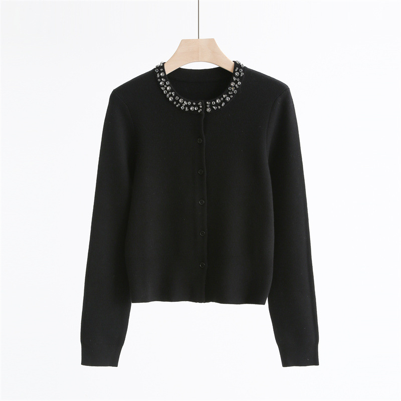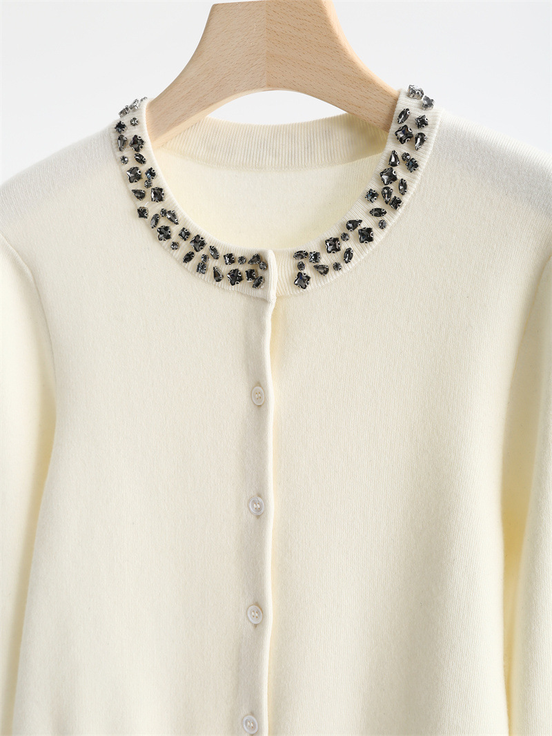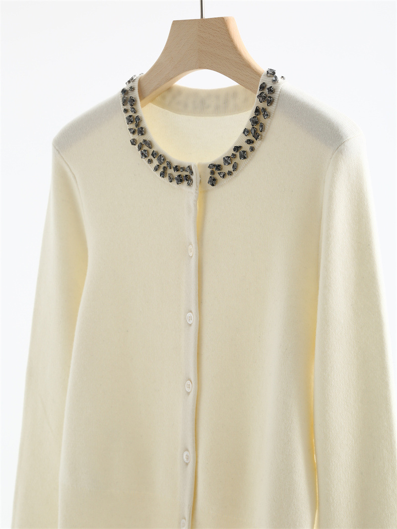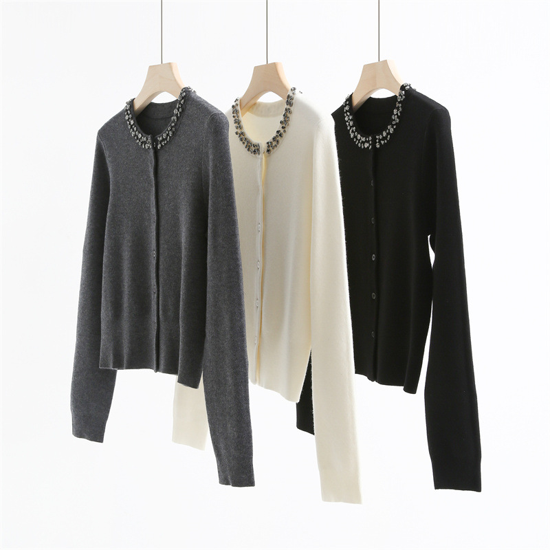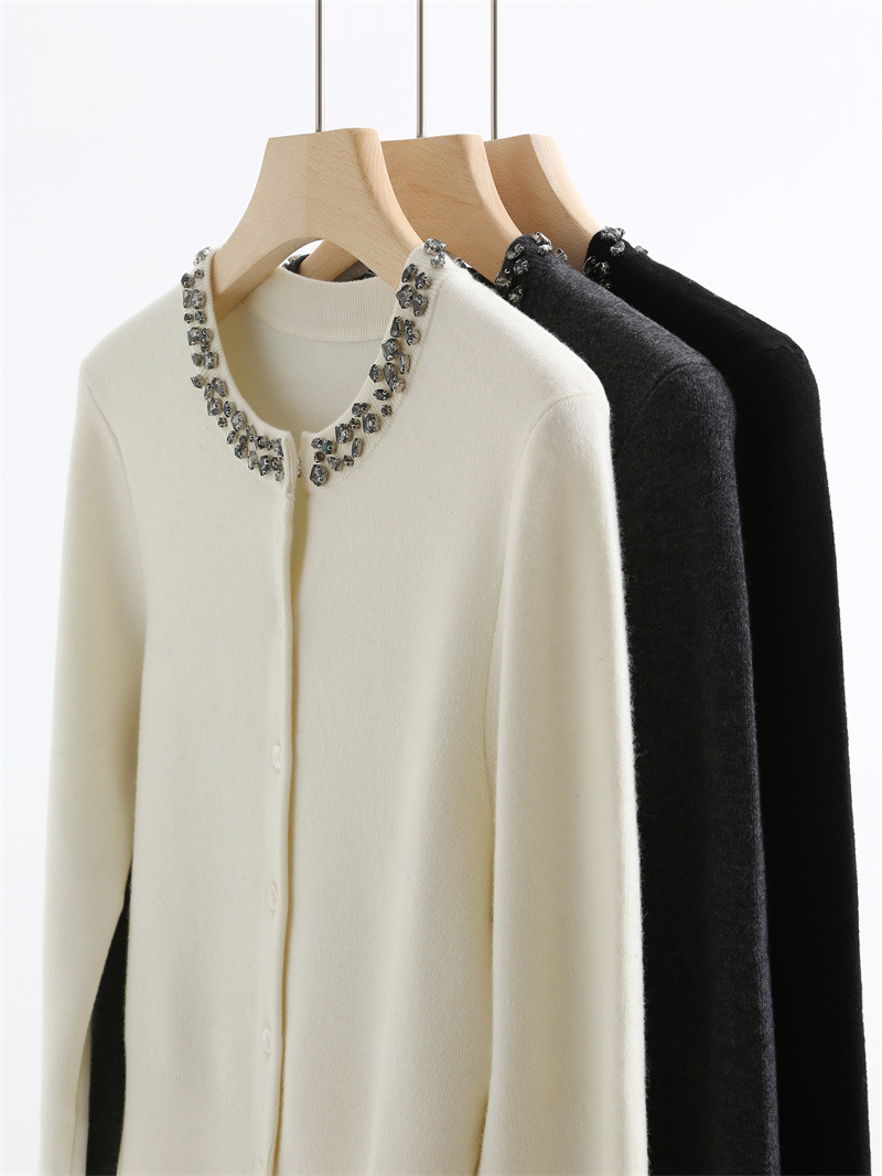 款号:QT2-A6650#领口订钻羊毛开衫