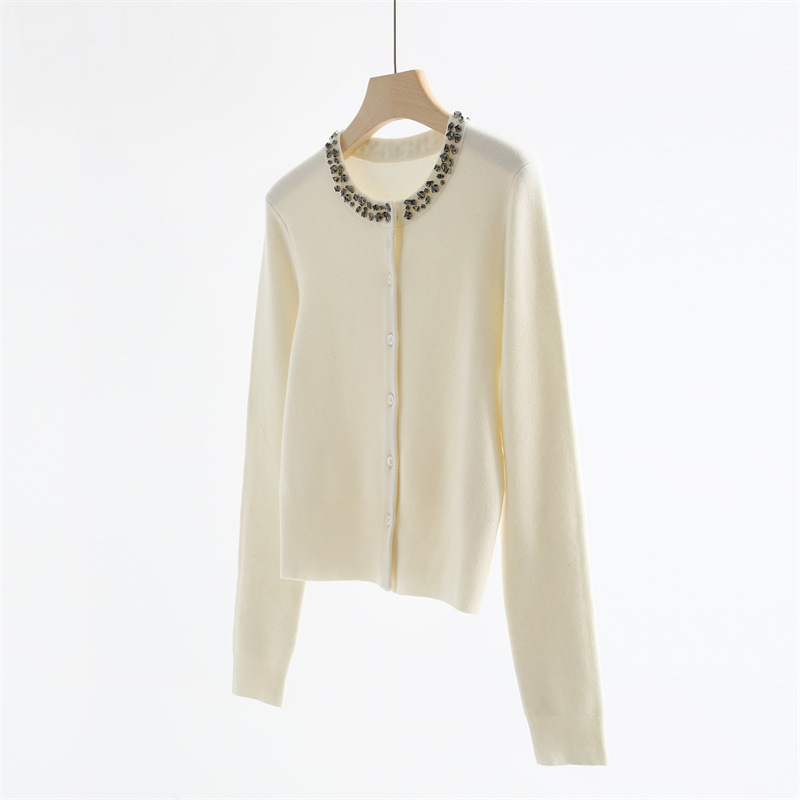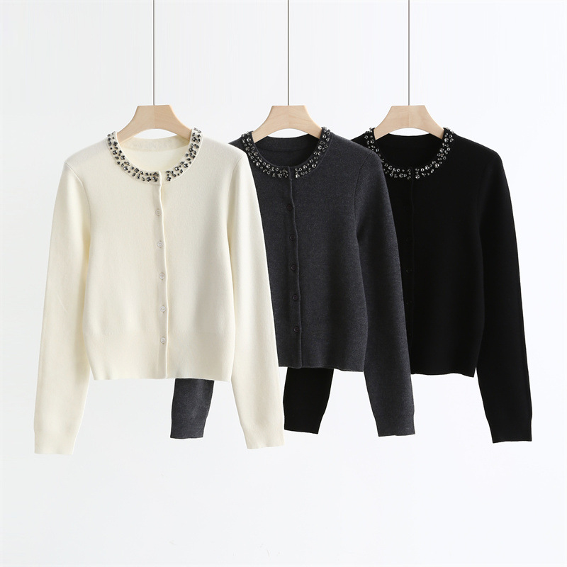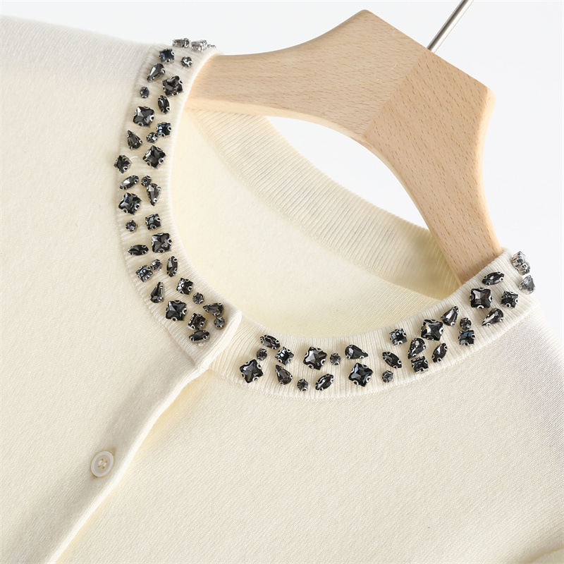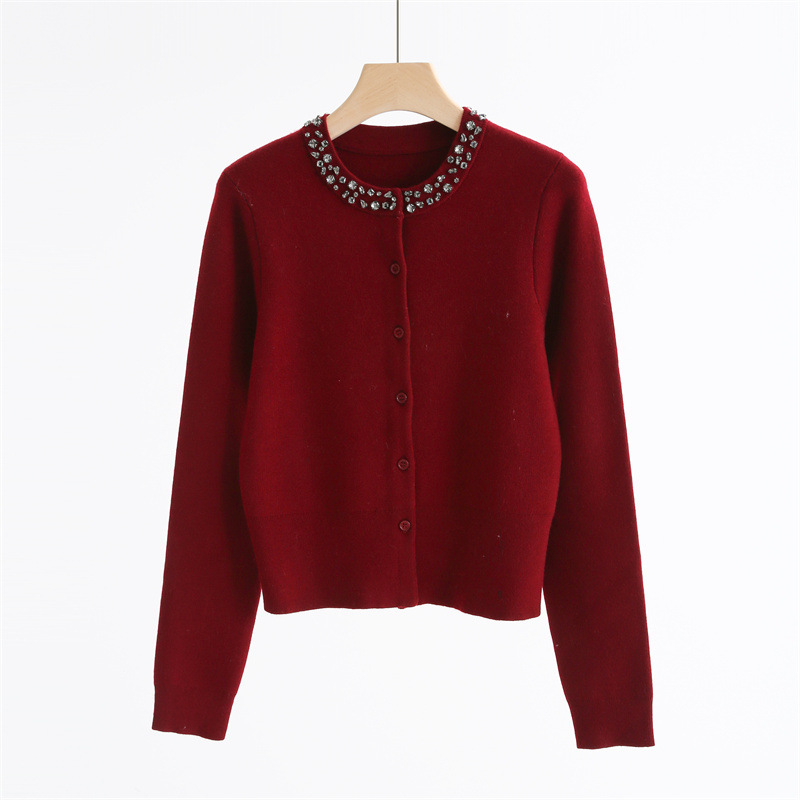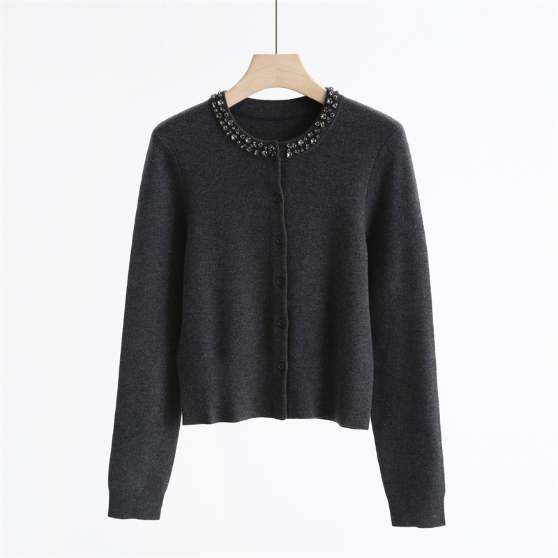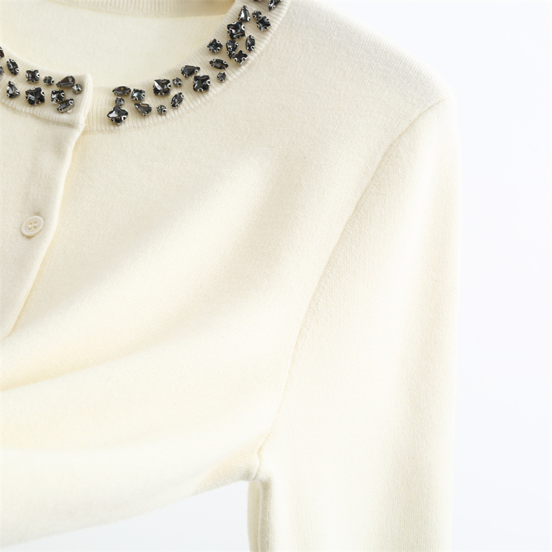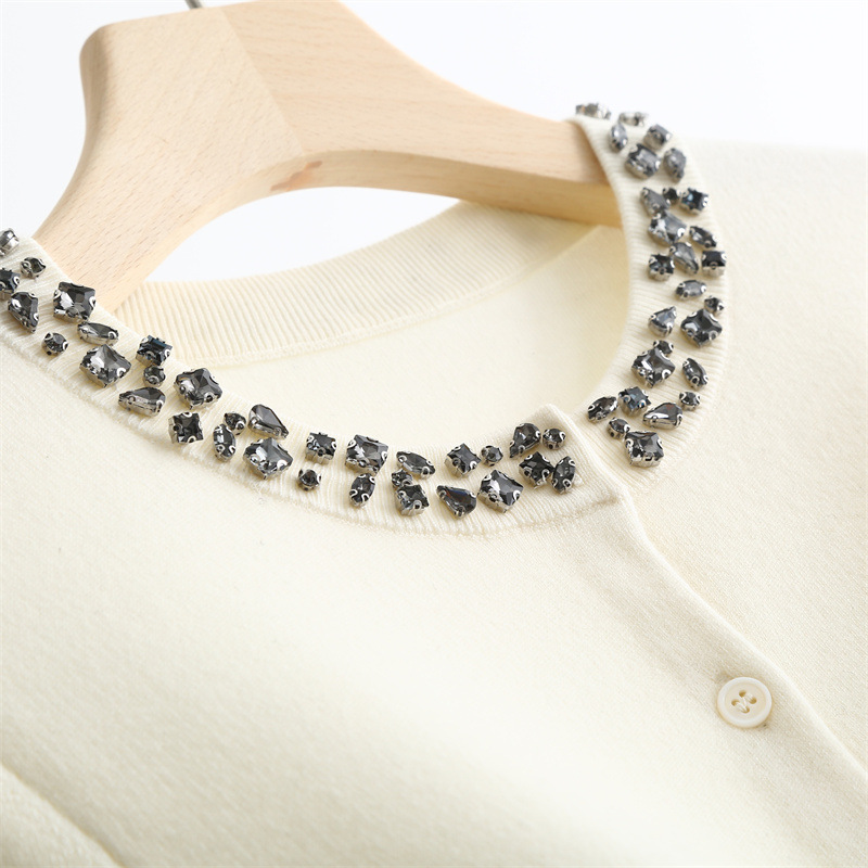款号:QT2-A6650#领口订钻羊毛开衫