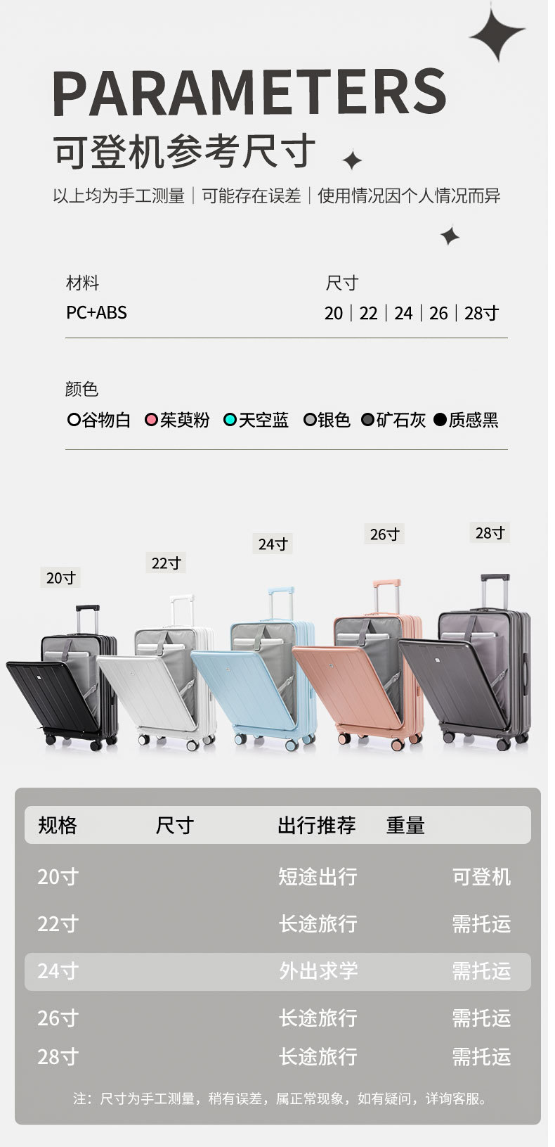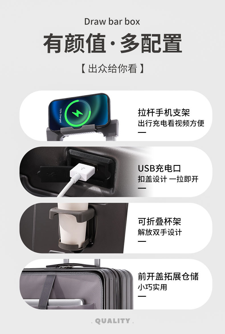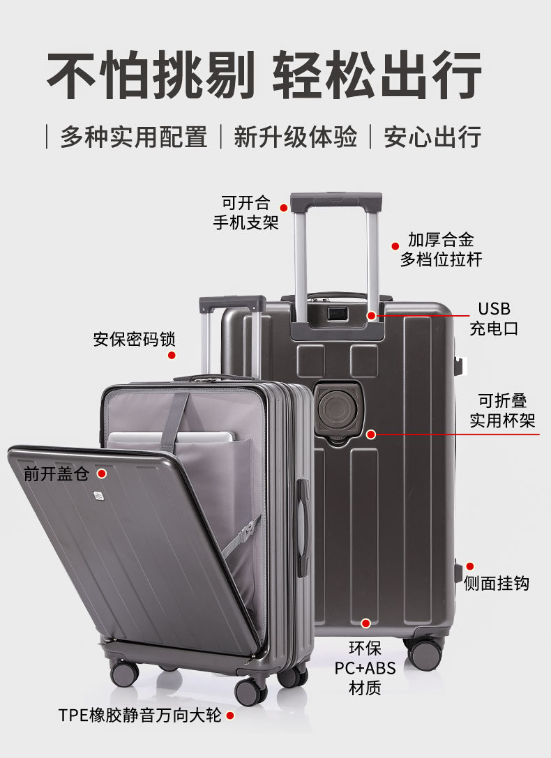 20inch 여행가방 여학생 전면 개방형 휴대용 트롤리 여행가방 무소음 회전 바퀴 비밀번호 여행가방