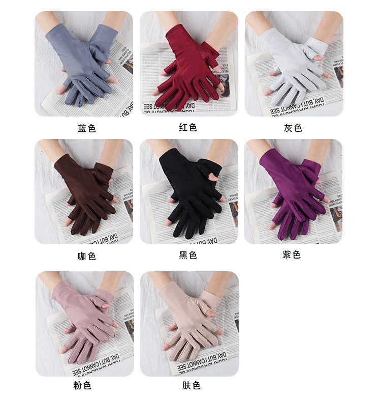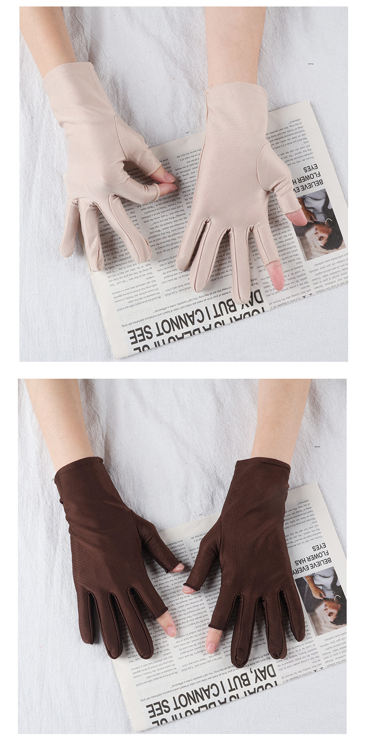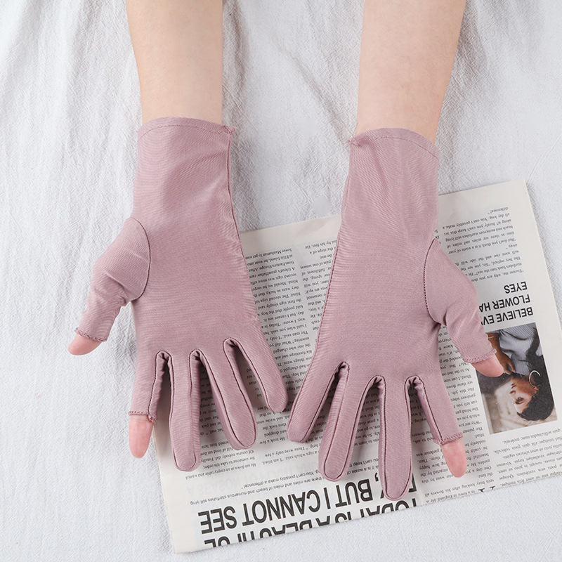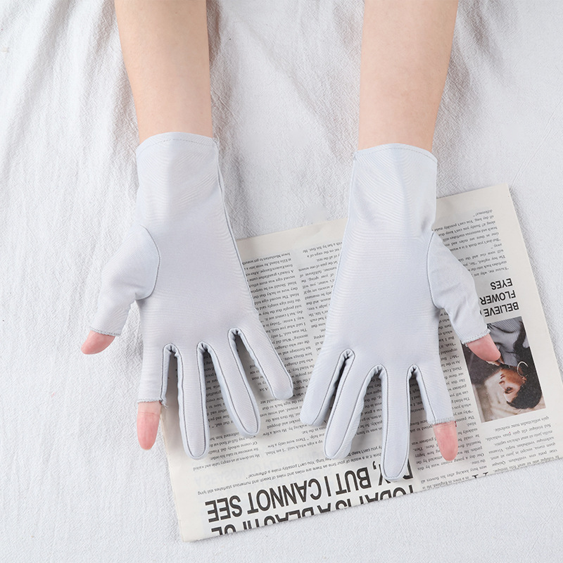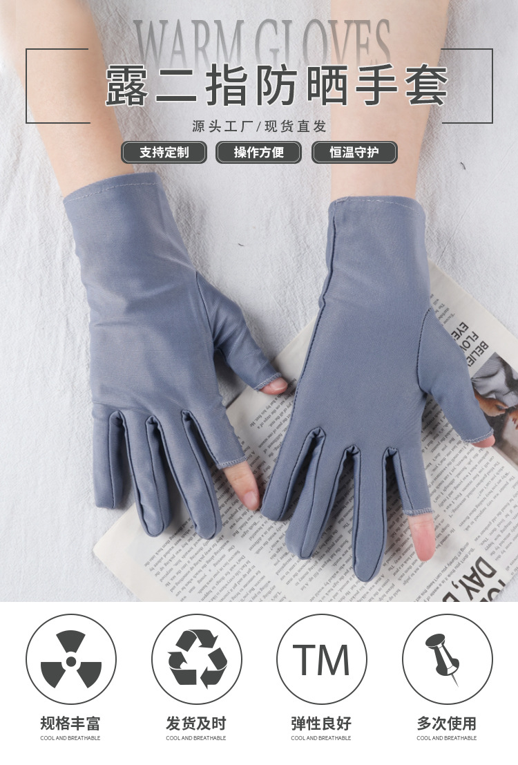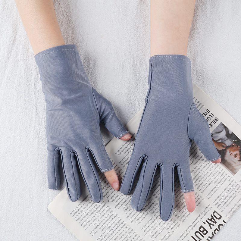 아이스 실크 자외선 차단 장갑, 봄 여름용 여성용 두 손가락 노출형 얇은 터치스크린 장갑, 차 따기, 광장 댄스, 자전거 타기용
