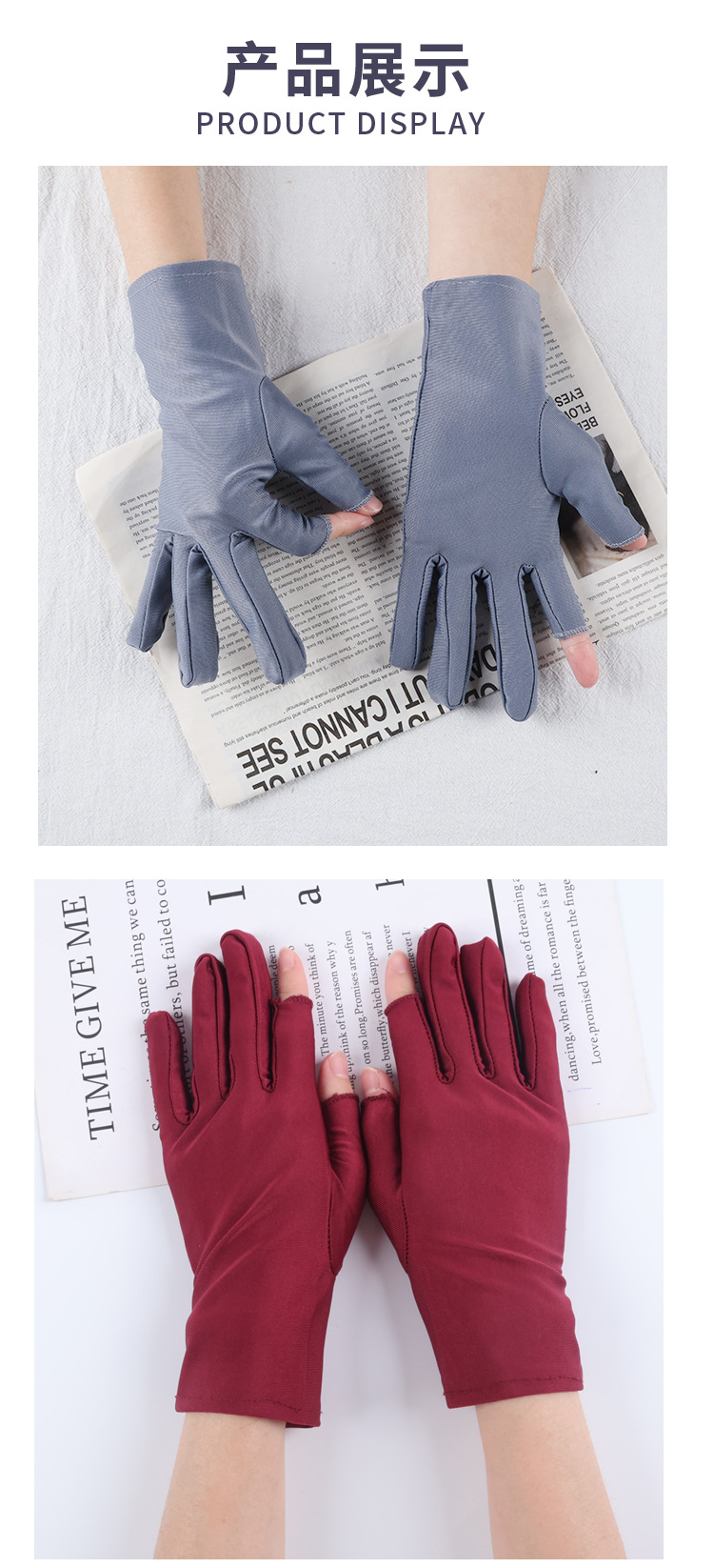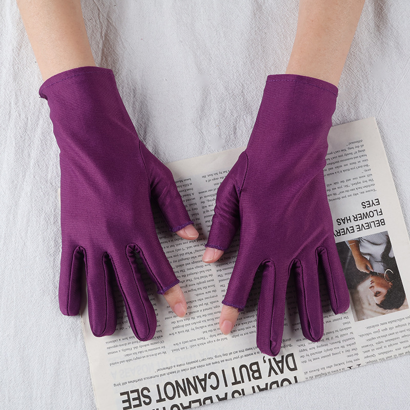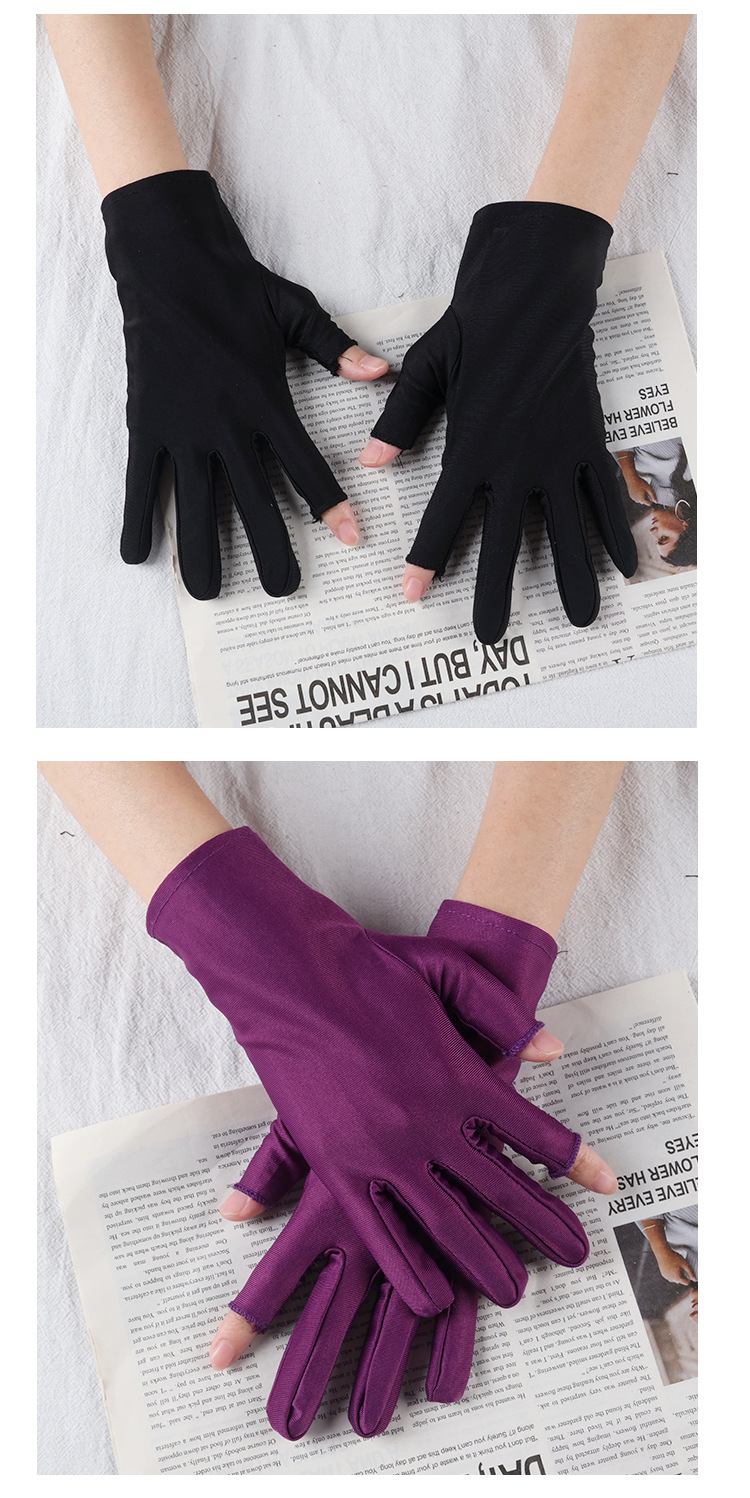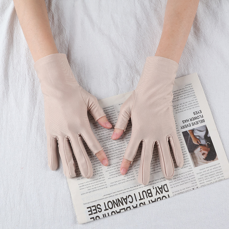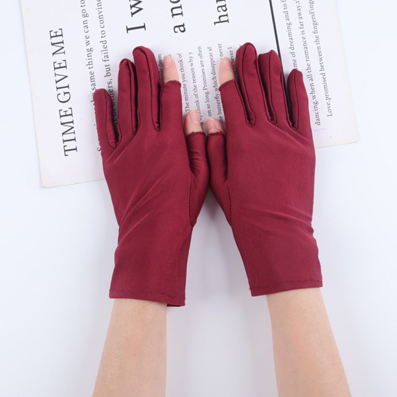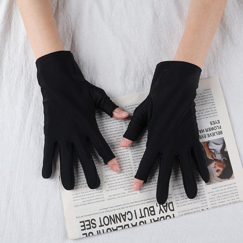 아이스 실크 자외선 차단 장갑, 봄 여름용 여성용 두 손가락 노출형 얇은 터치스크린 장갑, 차 따기, 광장 댄스, 자전거 타기용