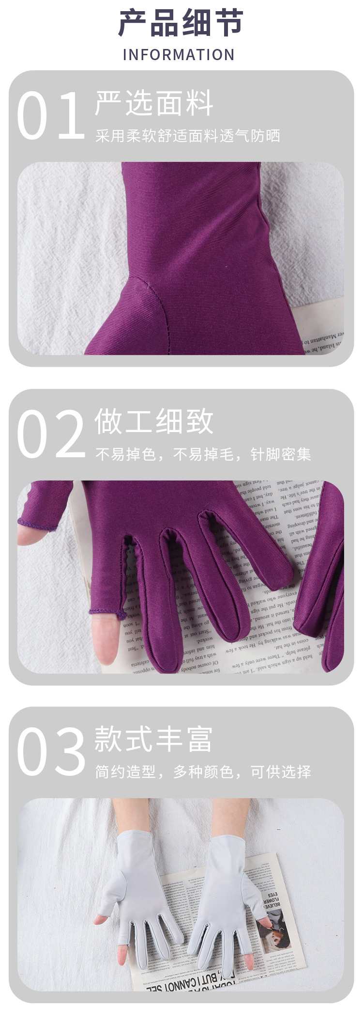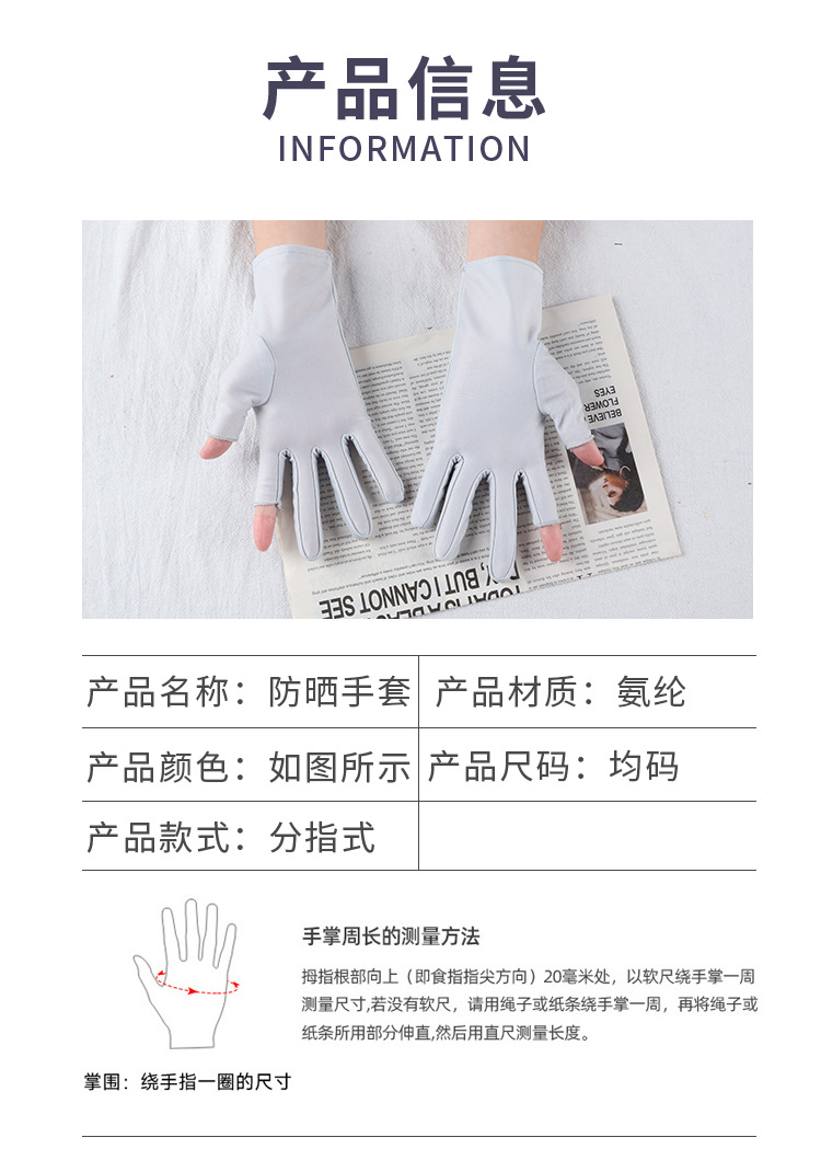 아이스 실크 자외선 차단 장갑, 봄 여름용 여성용 두 손가락 노출형 얇은 터치스크린 장갑, 차 따기, 광장 댄스, 자전거 타기용스토어 가기