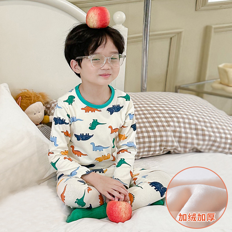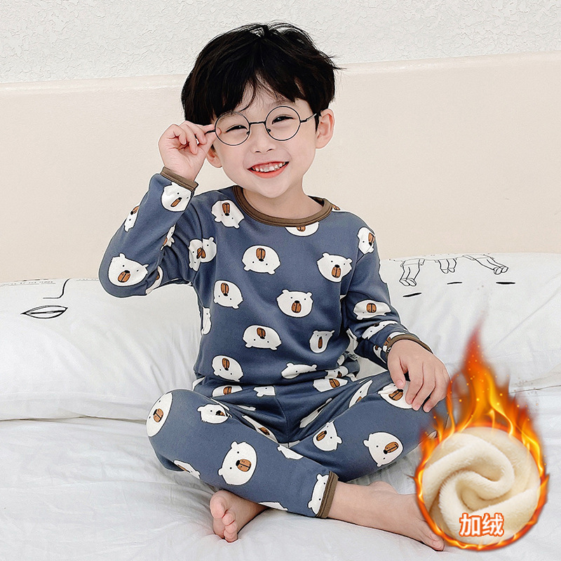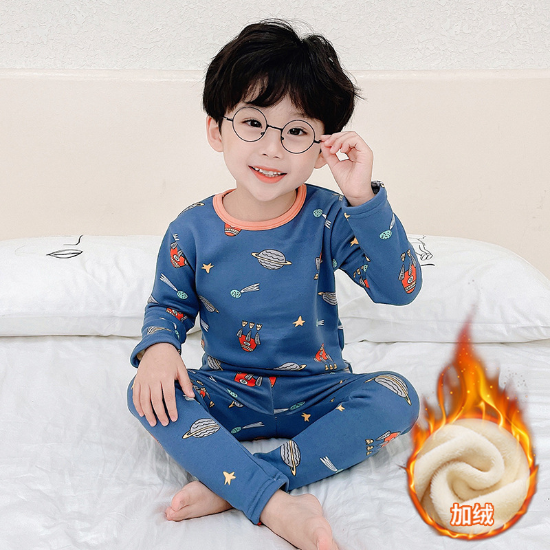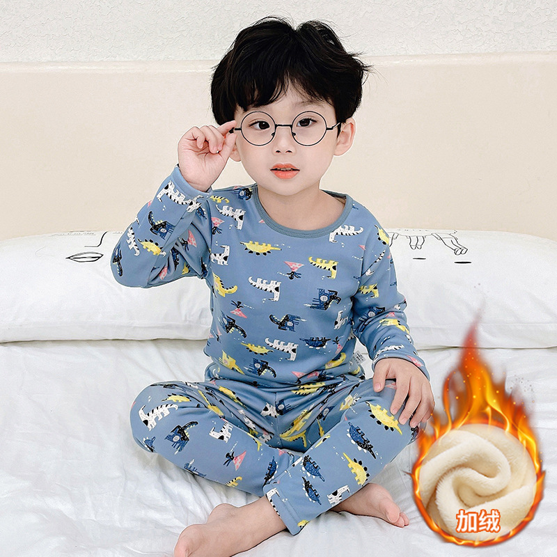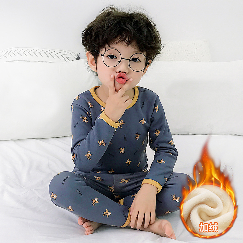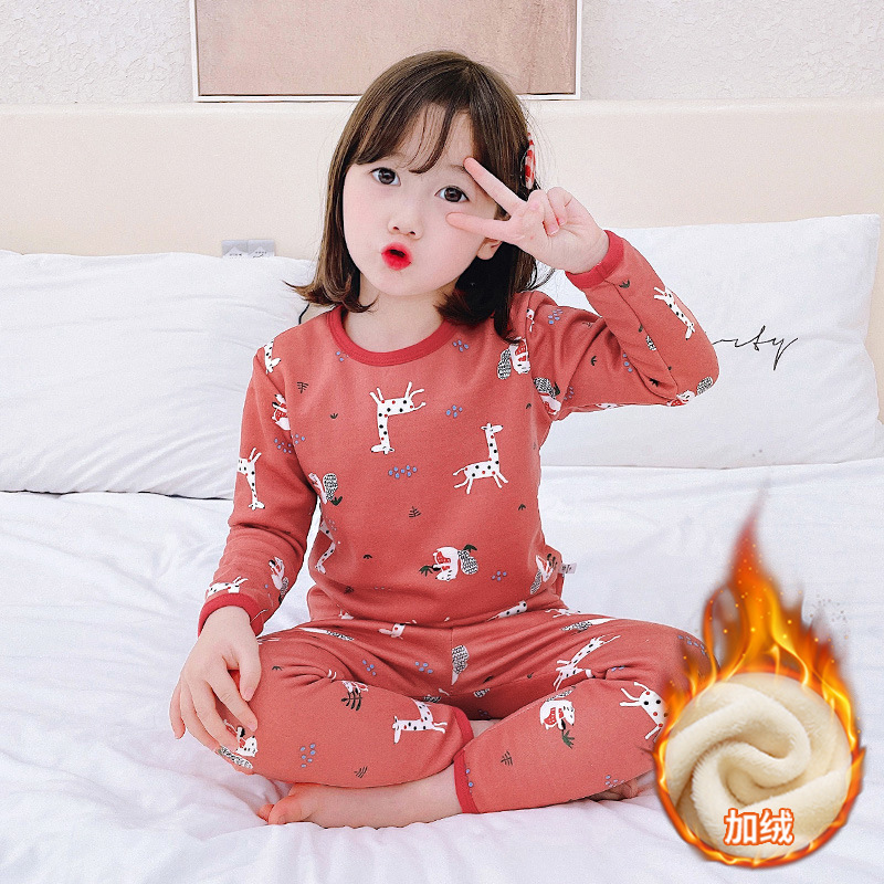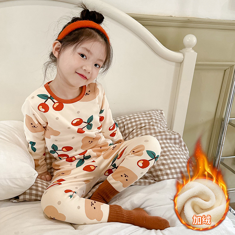 양털 안감 소녀의 열 속옷 세트 플러스 양털 안감 두꺼운 가을, 겨울 어린이 열 속옷 소년의 잠옷 세트