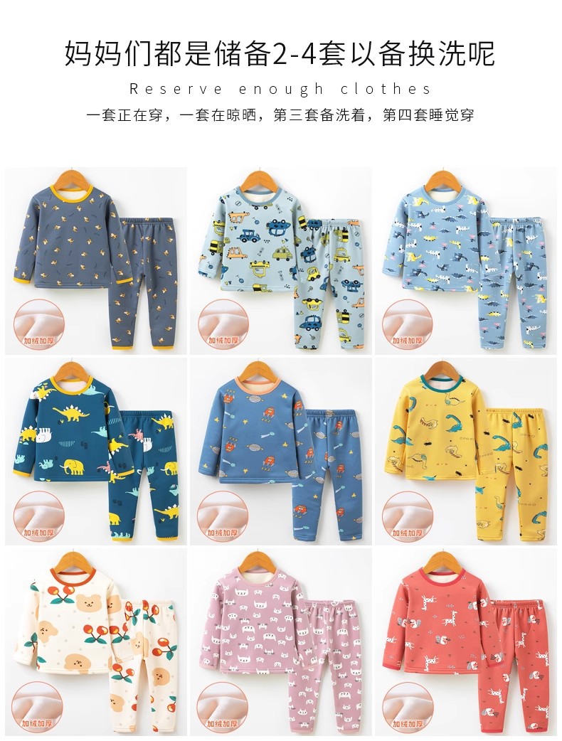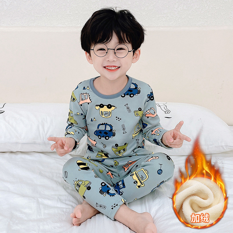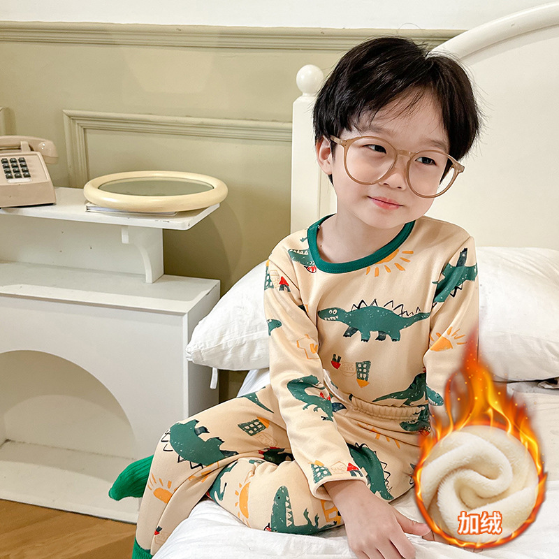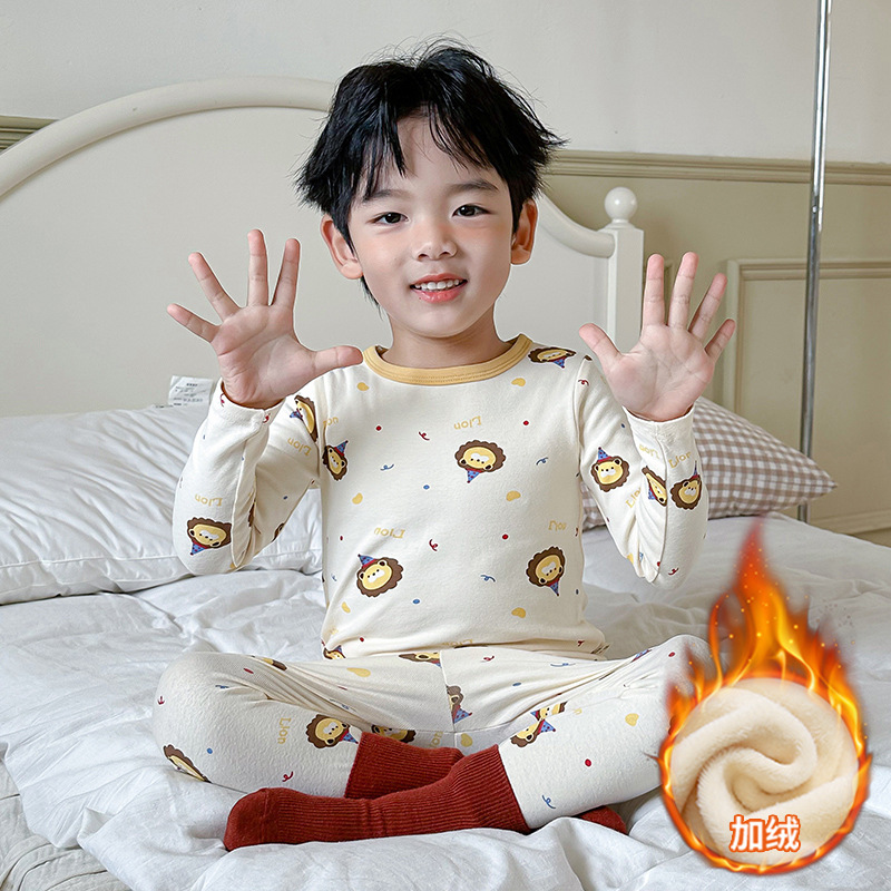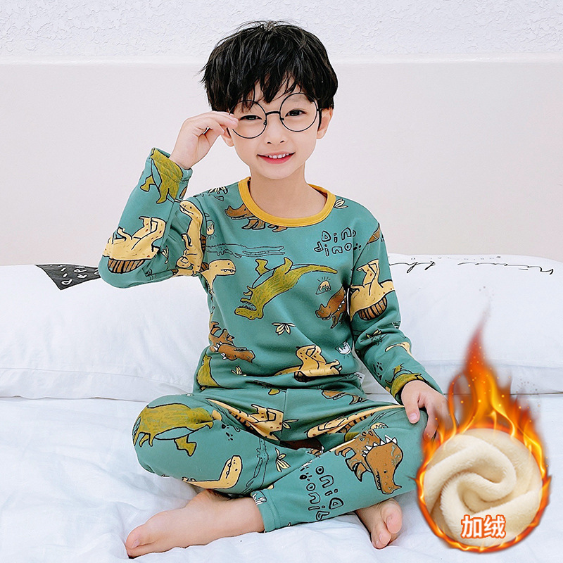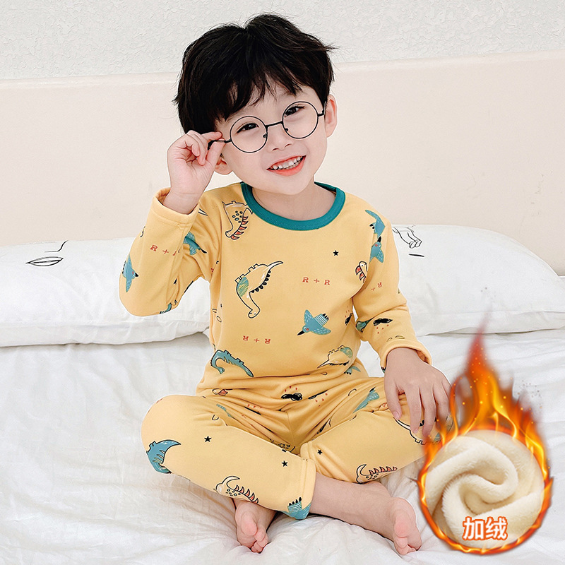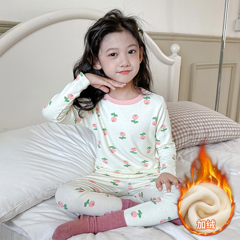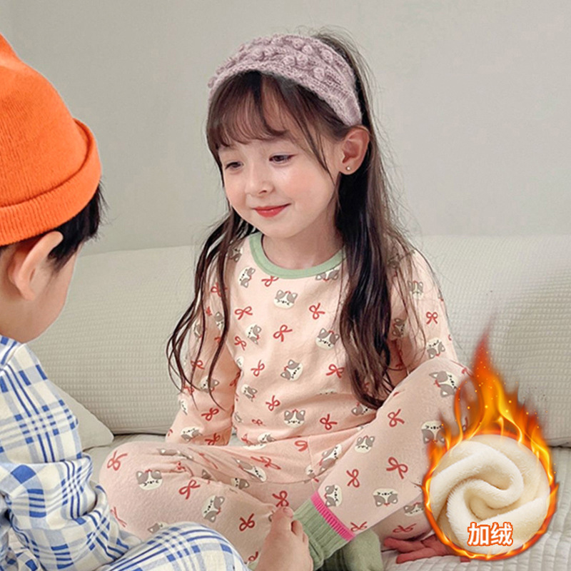 양털 안감 소녀의 열 속옷 세트 플러스 양털 안감 두꺼운 가을, 겨울 어린이 열 속옷 소년의 잠옷 세트