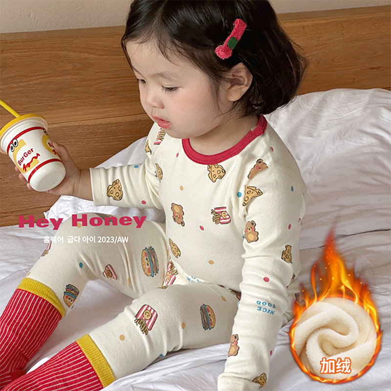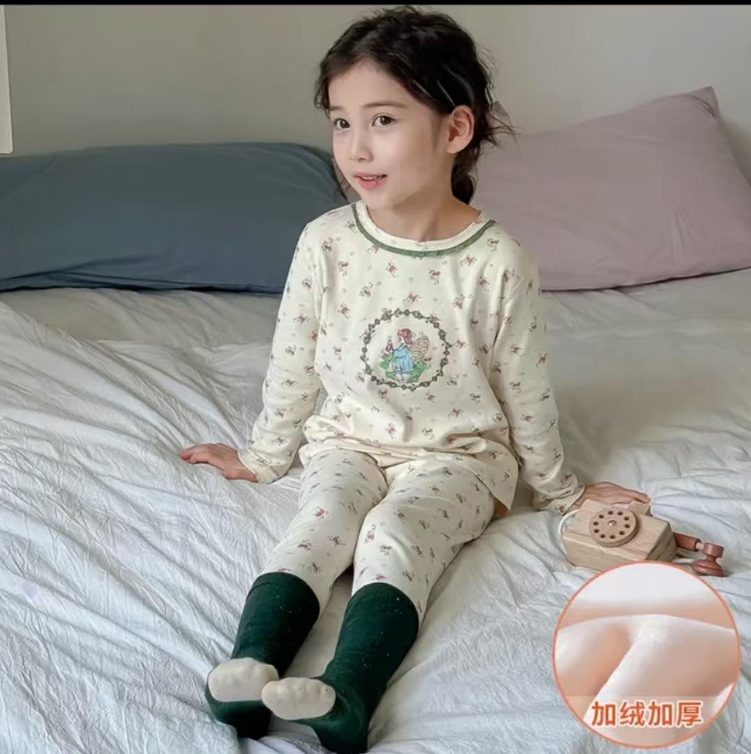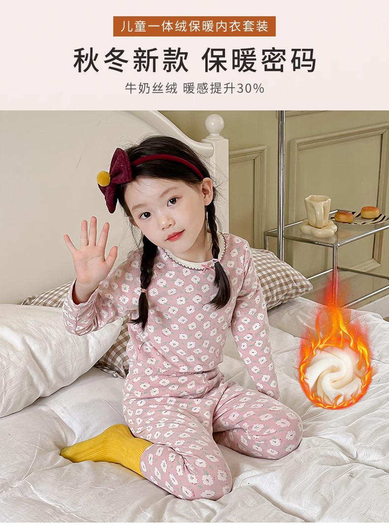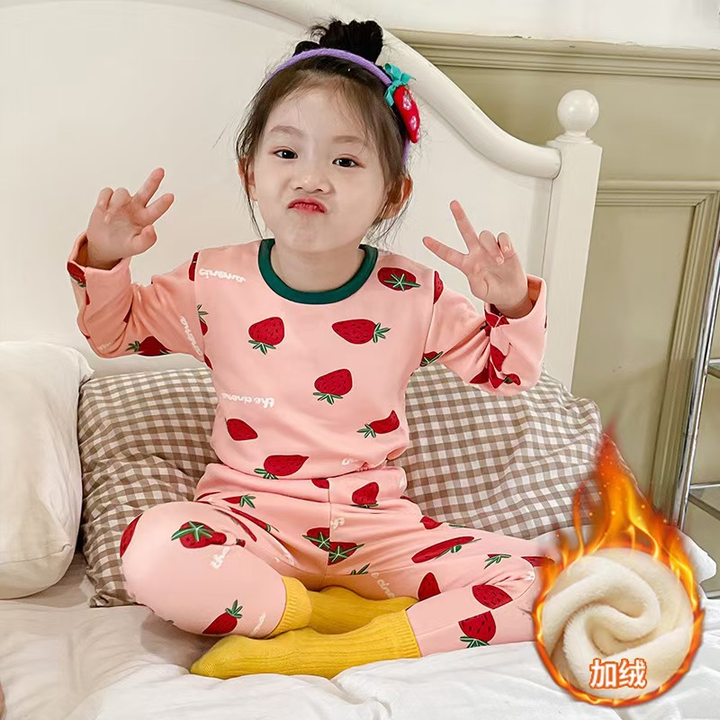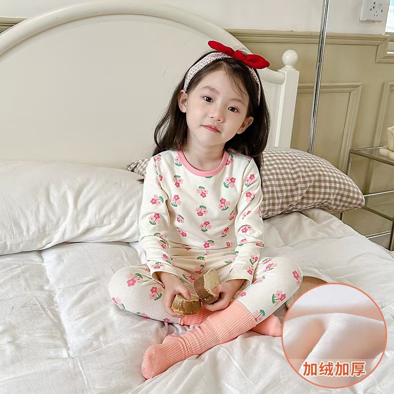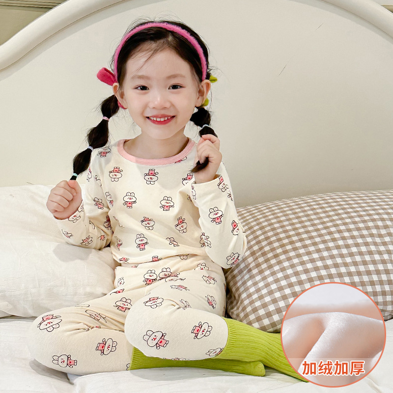 양털 안감 소녀의 열 속옷 세트 플러스 양털 안감 두꺼운 가을, 겨울 어린이 열 속옷 소년의 잠옷 세트