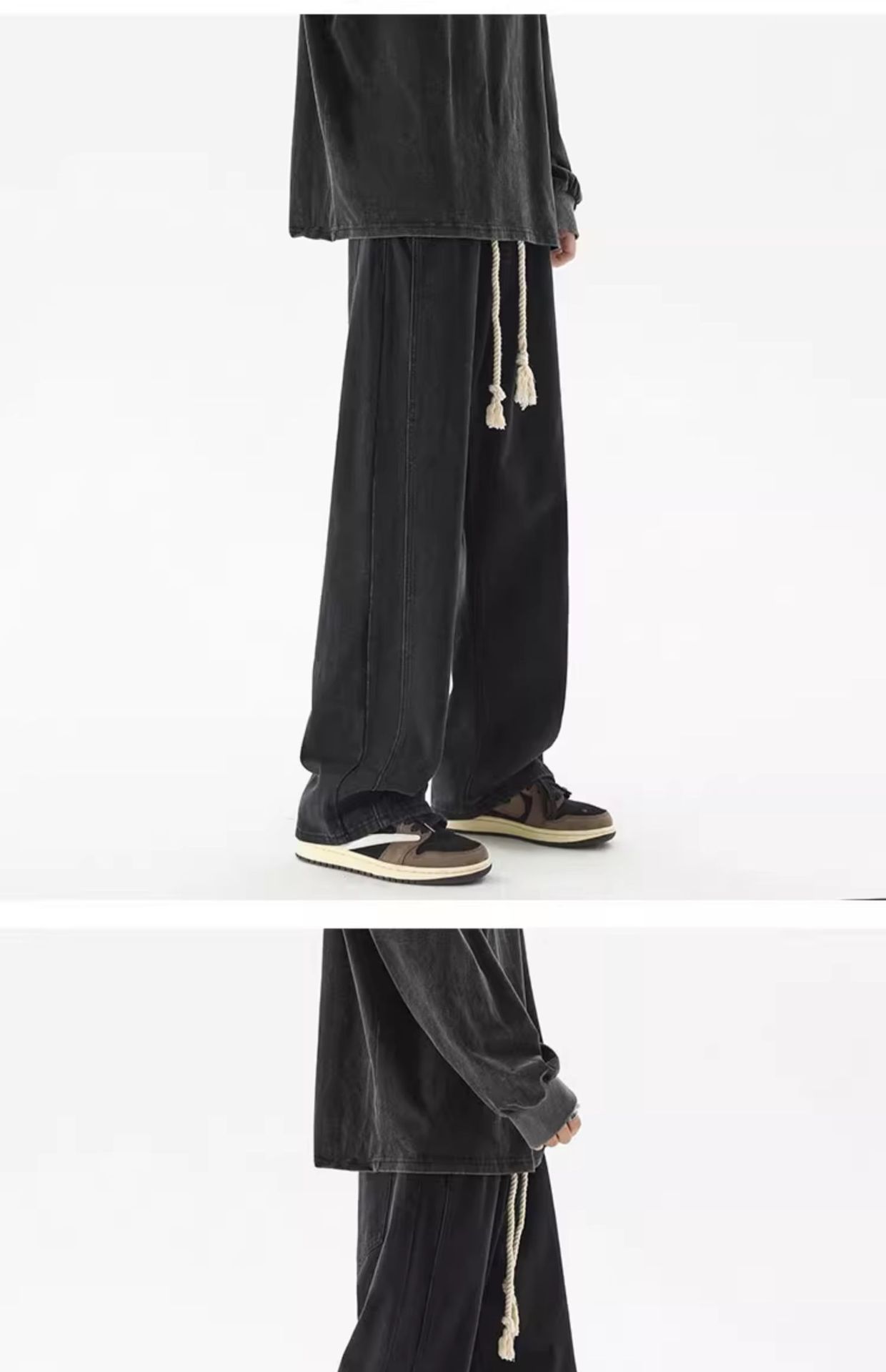블랙 청바지 남성용 아메리칸 스타일 하이 스트리트 트렌디 브랜드 루즈 와이드 레그 팬츠 여름 올 매치 스트레이트 레트로 헤비 팬츠스토어 가기