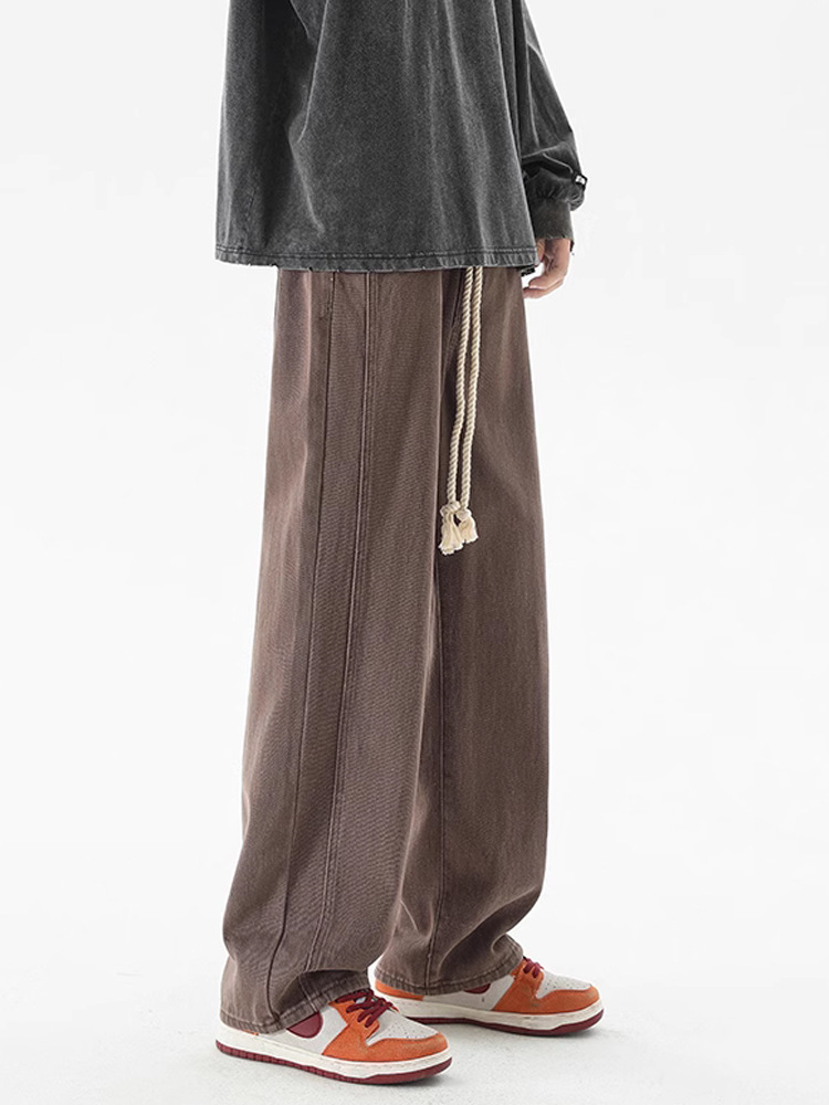 블랙 청바지 남성용 아메리칸 스타일 하이 스트리트 트렌디 브랜드 루즈 와이드 레그 팬츠 여름 올 매치 스트레이트 레트로 헤비 팬츠
